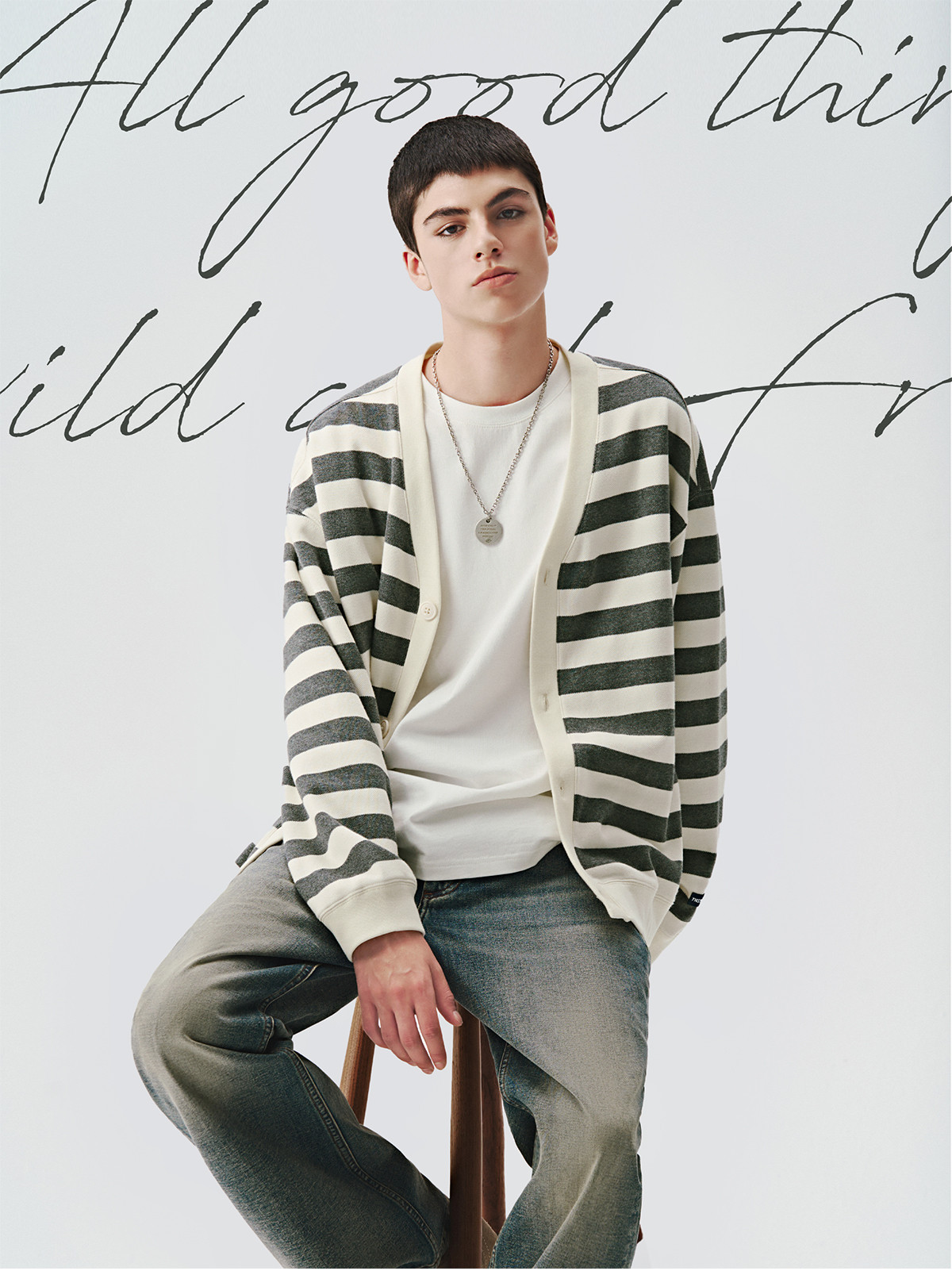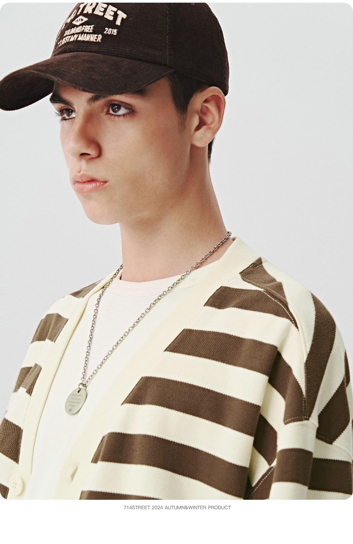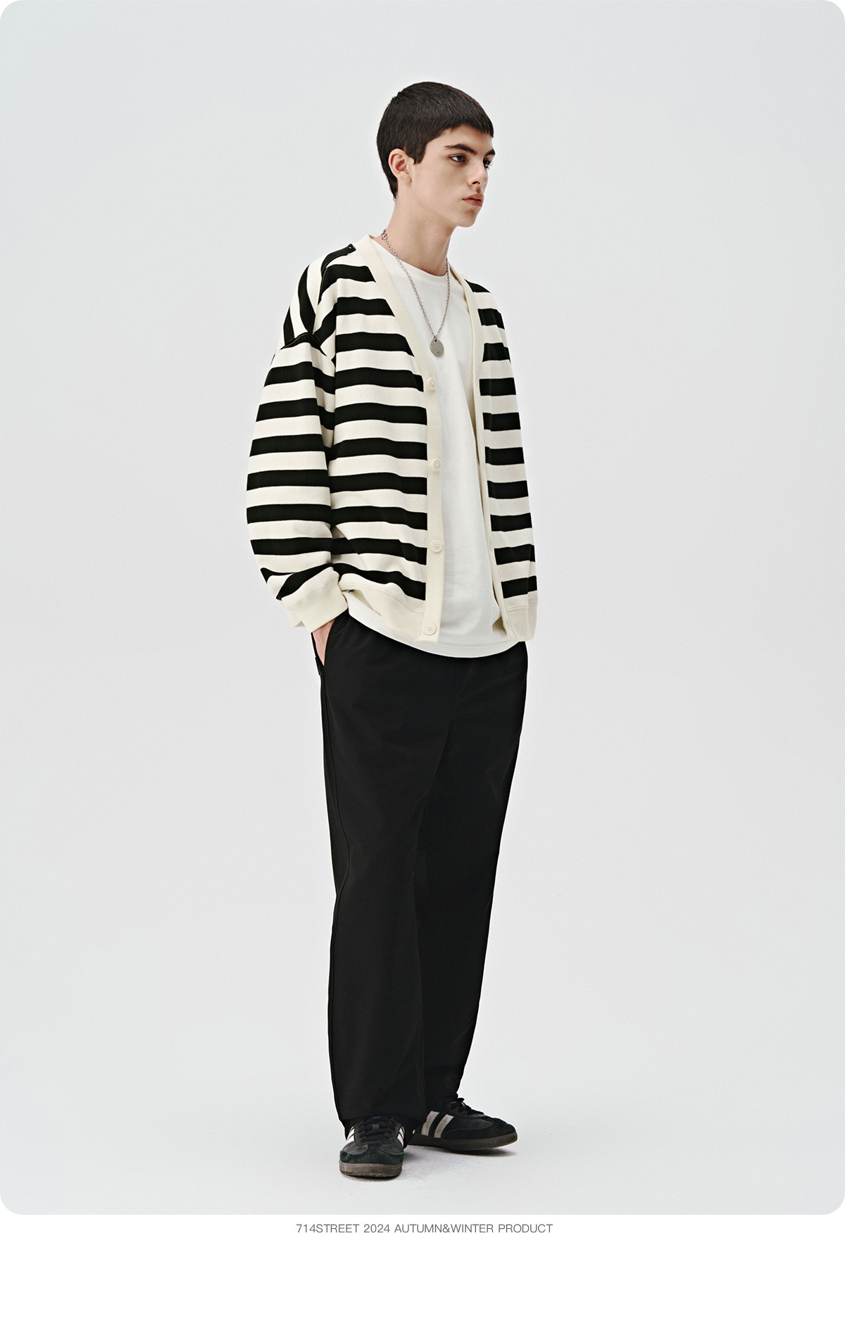 714street条纹V领针织开衫男2024秋冬季新款宽松外套休闲长袖上衣