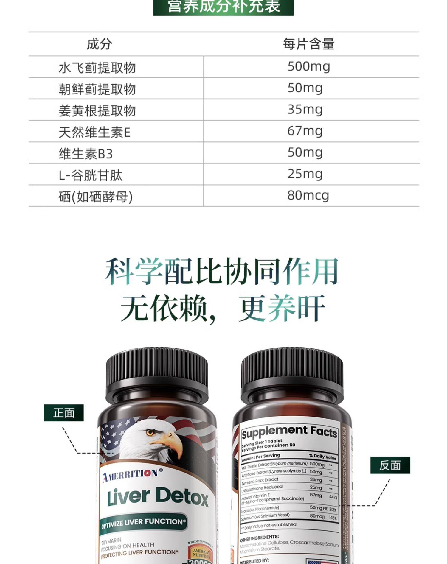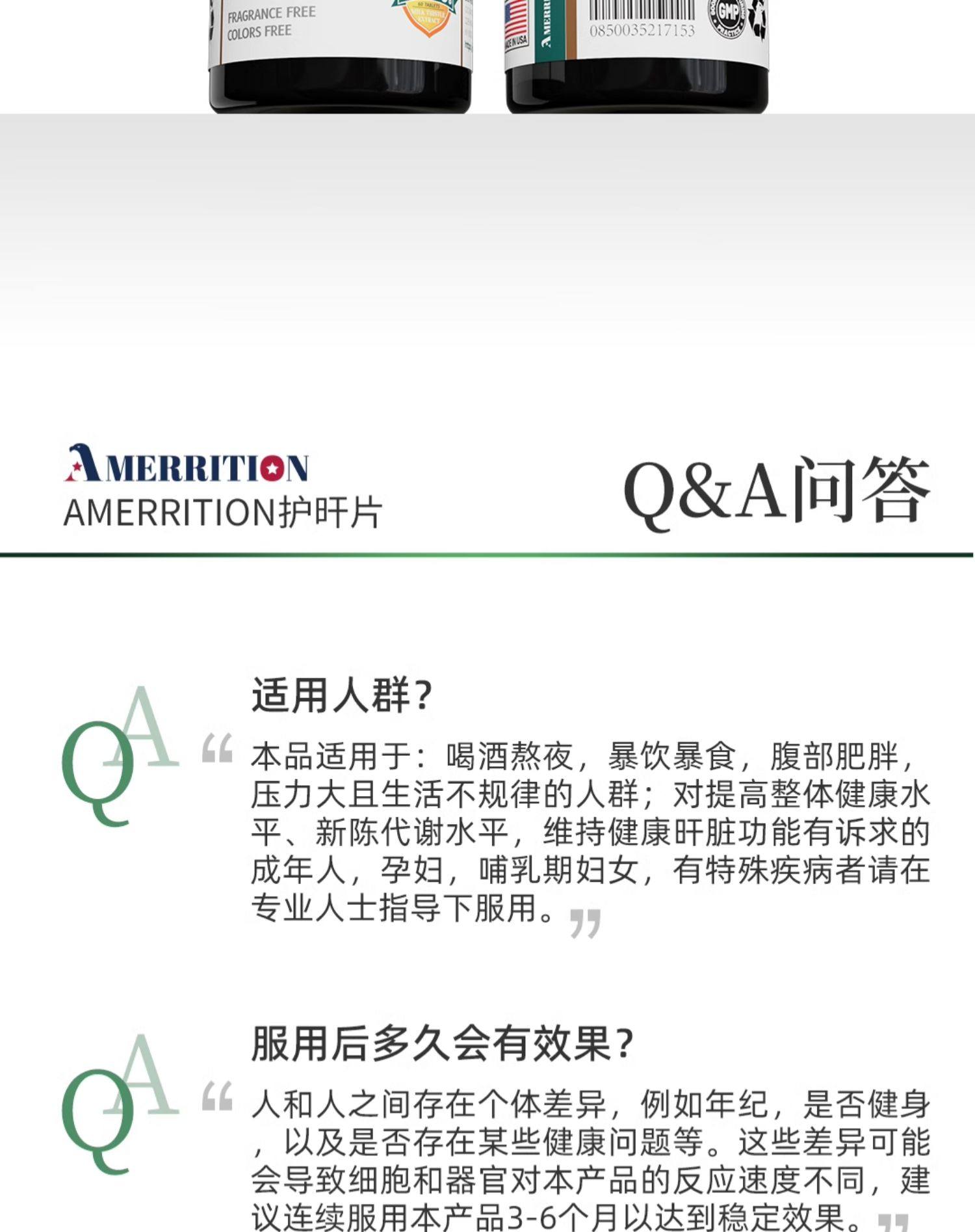 [3瓶]美国麦瑞绅坤AMERRITION护肝片水飞蓟养旰解酒保健官方正品