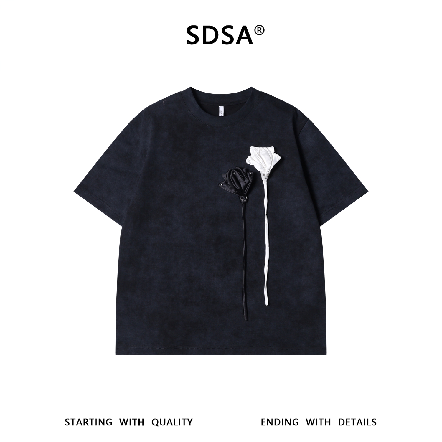 SDSA男装2026新款高贵轻奢潮牌扎染立体玫瑰装饰圆领短袖T恤百搭