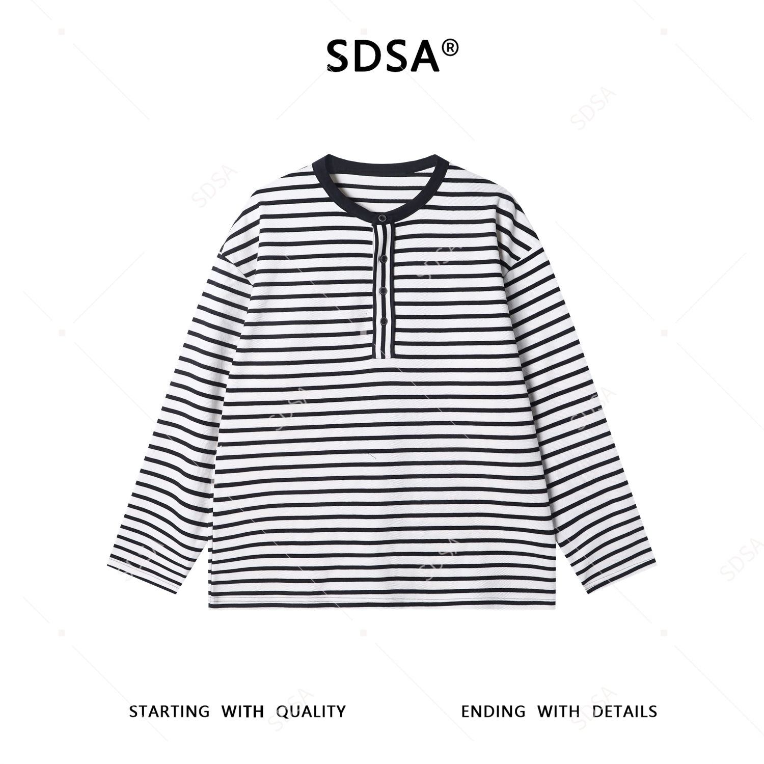 31091SDSA男士秋冬新款痞帅男装简约撞色条纹半纽扣圆领长袖T恤百搭潮