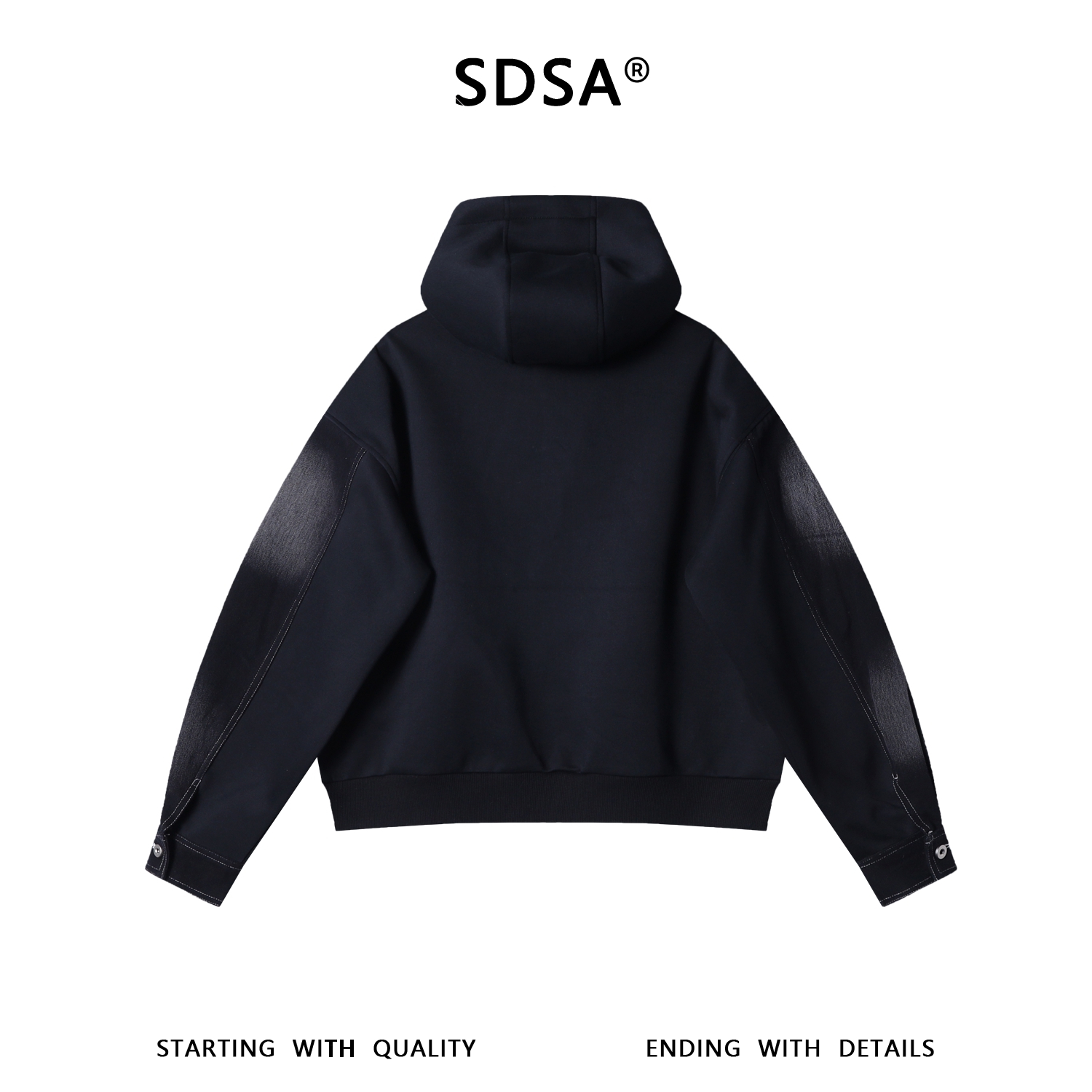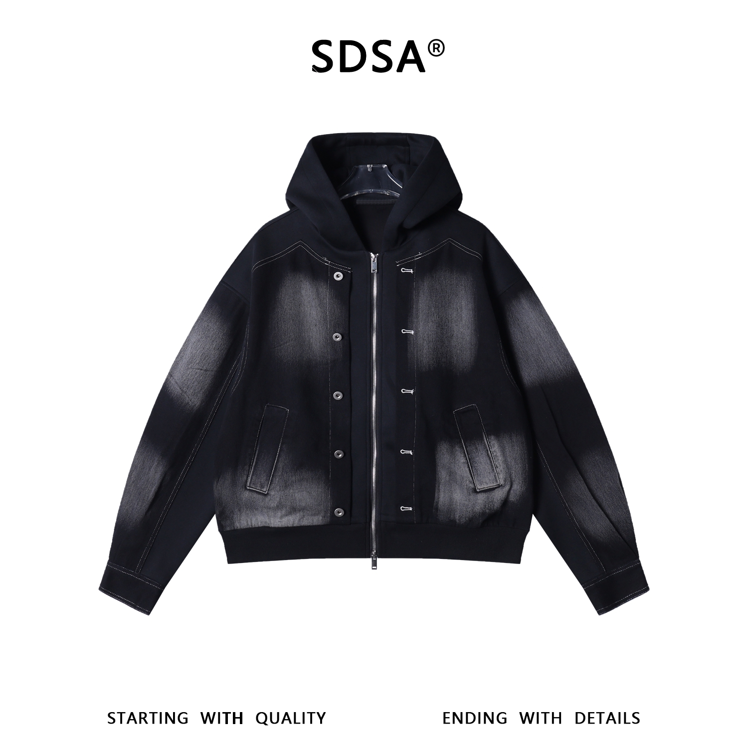 56017SDSA春夏新款痞帅男装韩版潮牌磨白拼接拉链连帽夹克外套百搭时尚