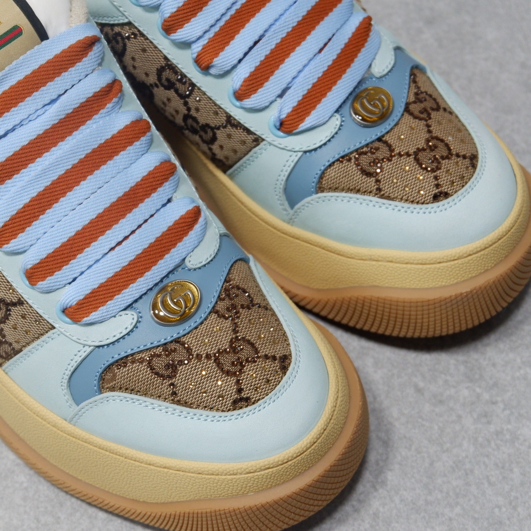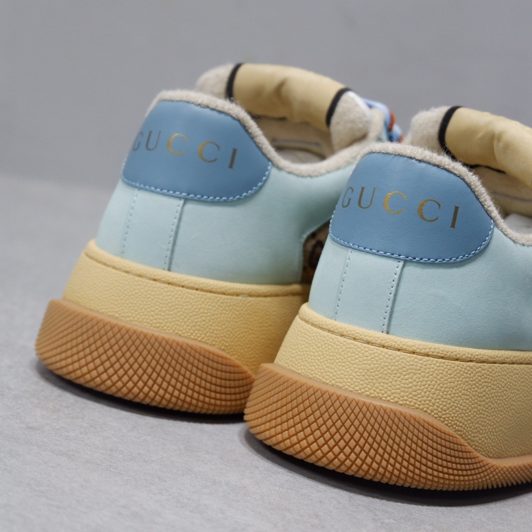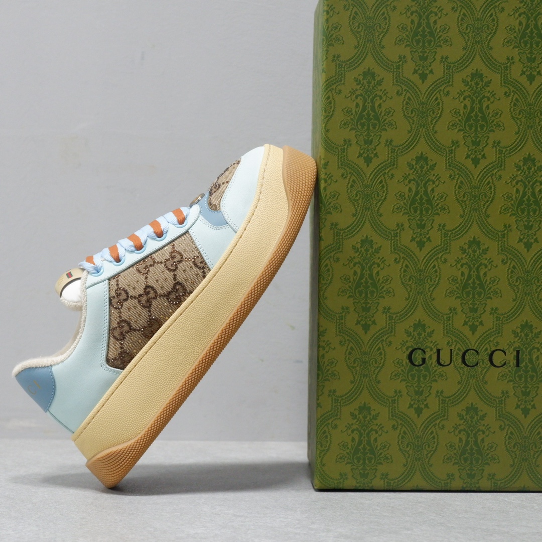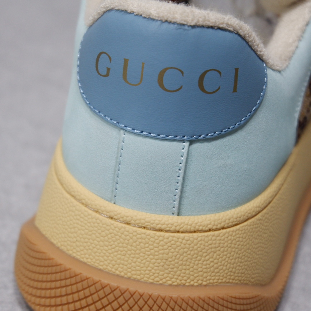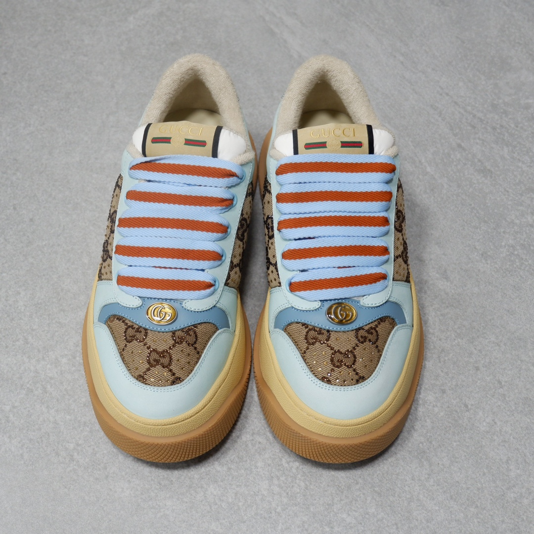 古驰最新款胖嘟嘟厚底脏脏鞋~~情侣款休闲鞋 鞋面擦色牛皮拼接经典双G布面料,毛巾布里细腻吸汗透气,垫脚乳胶注塑一体,私模6cm厚TPU双色底