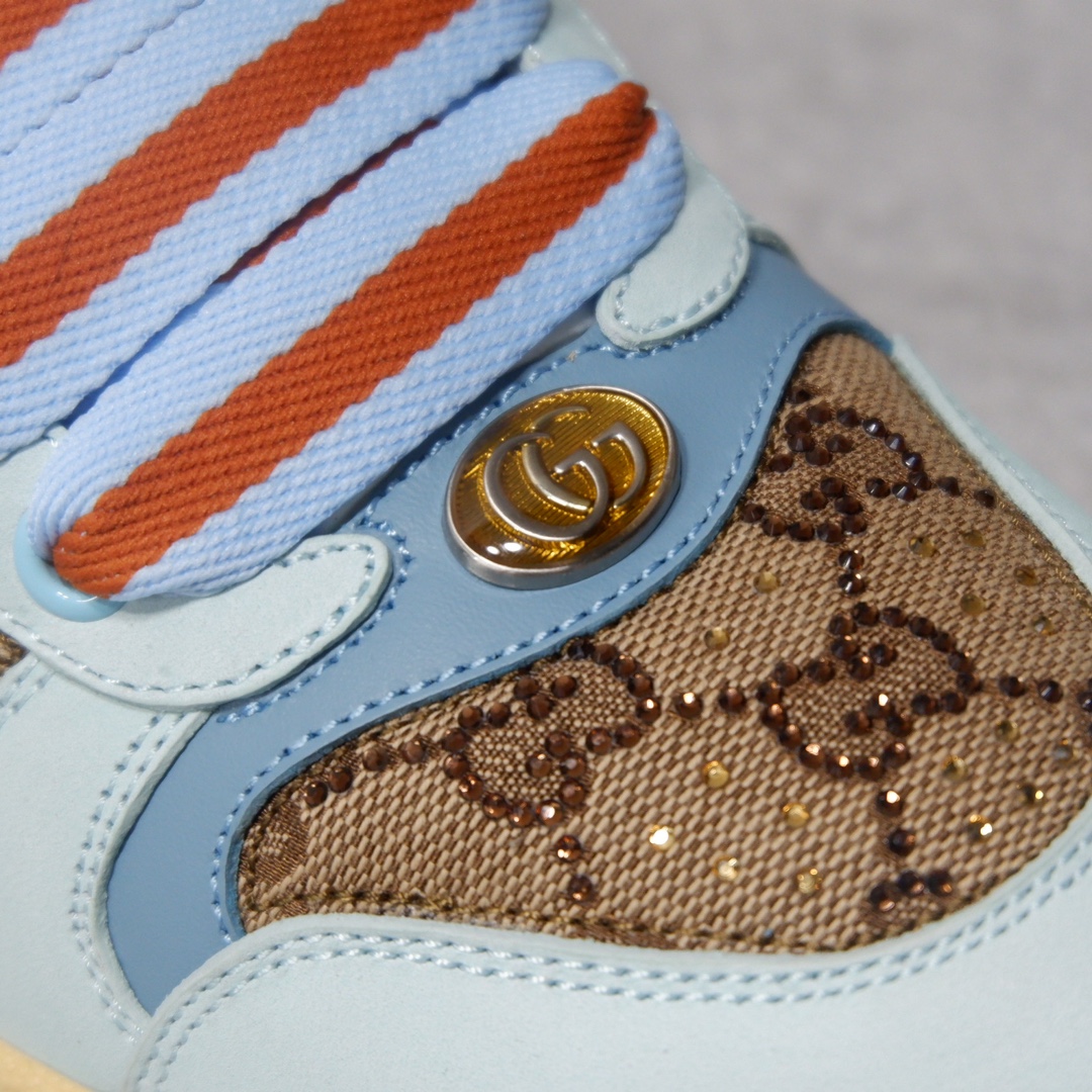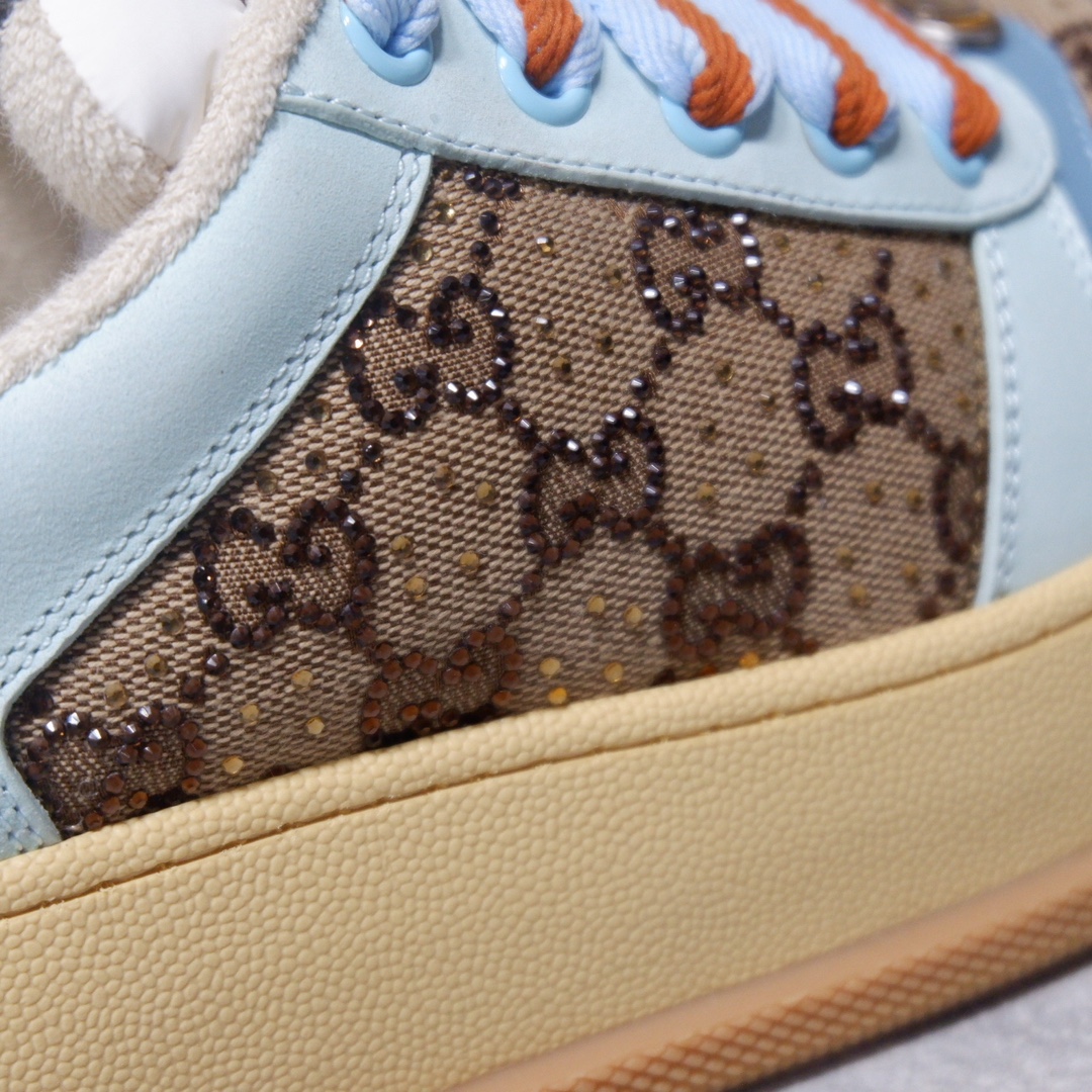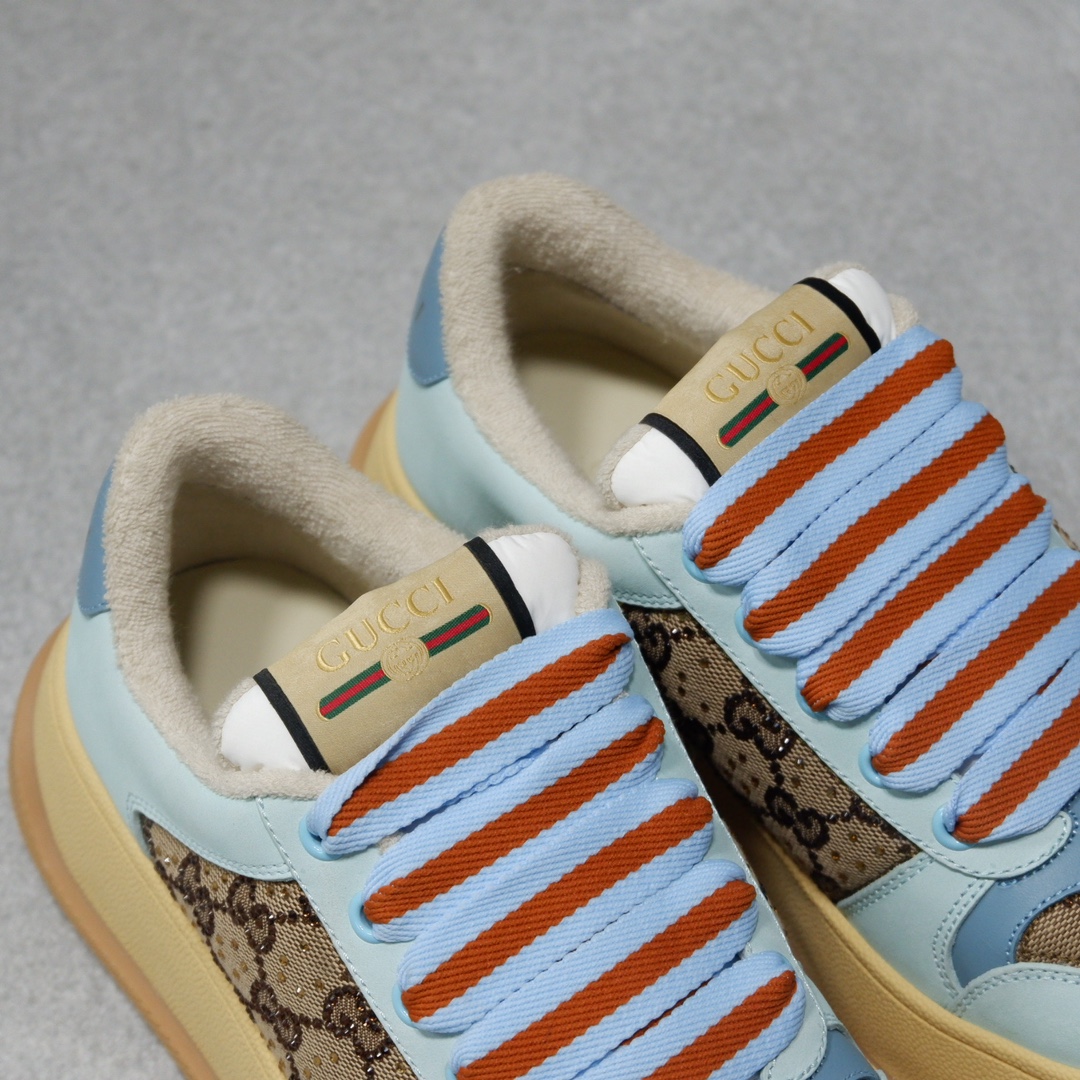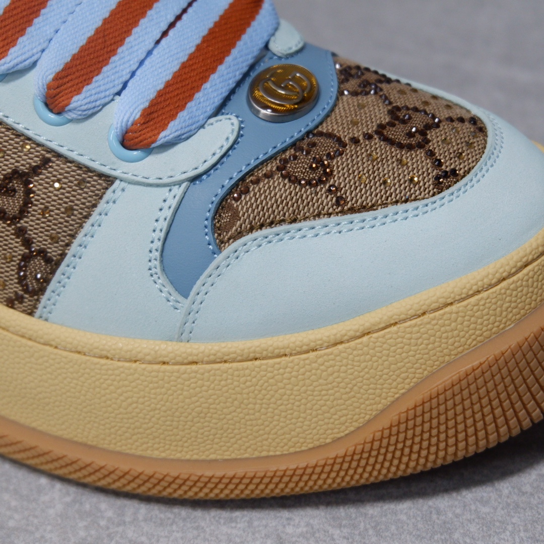 古驰最新款胖嘟嘟厚底脏脏鞋~~情侣款休闲鞋 鞋面擦色牛皮拼接经典双G布面料,毛巾布里细腻吸汗透气,垫脚乳胶注塑一体,私模6cm厚TPU双色底