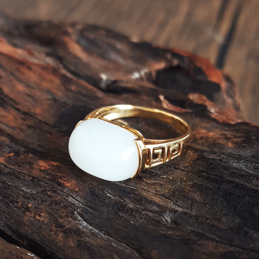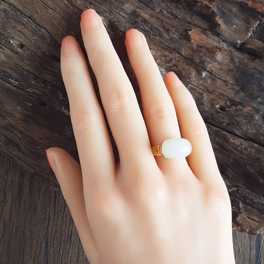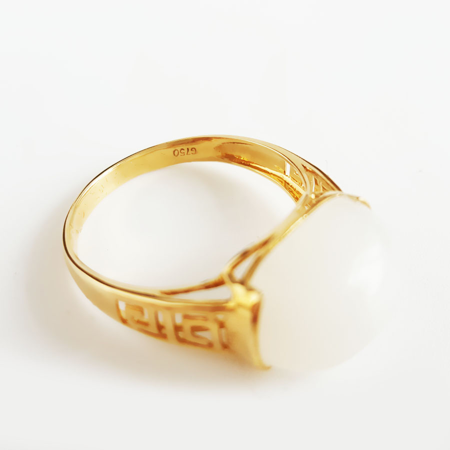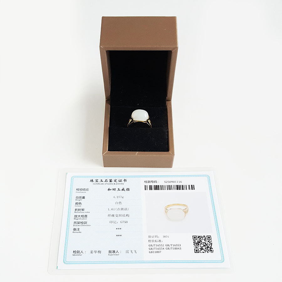 名称 | AU750黄金镶天然籽料细腻油润度佳一级白蛋面和田玉戒指 |