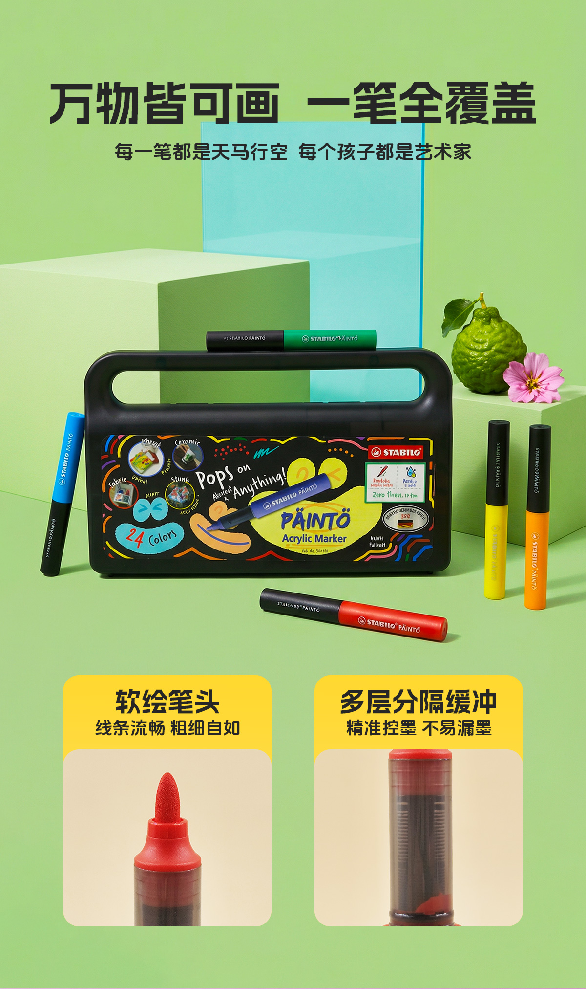 【新品】德国思笔乐直液式丙烯马克笔软头礼盒小学生绘画可叠色