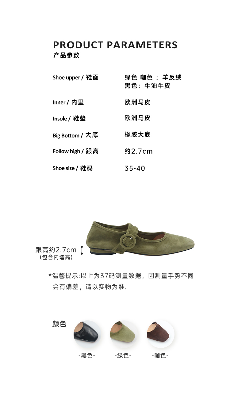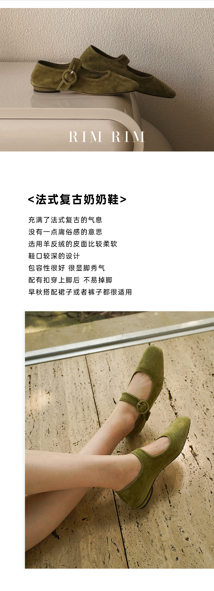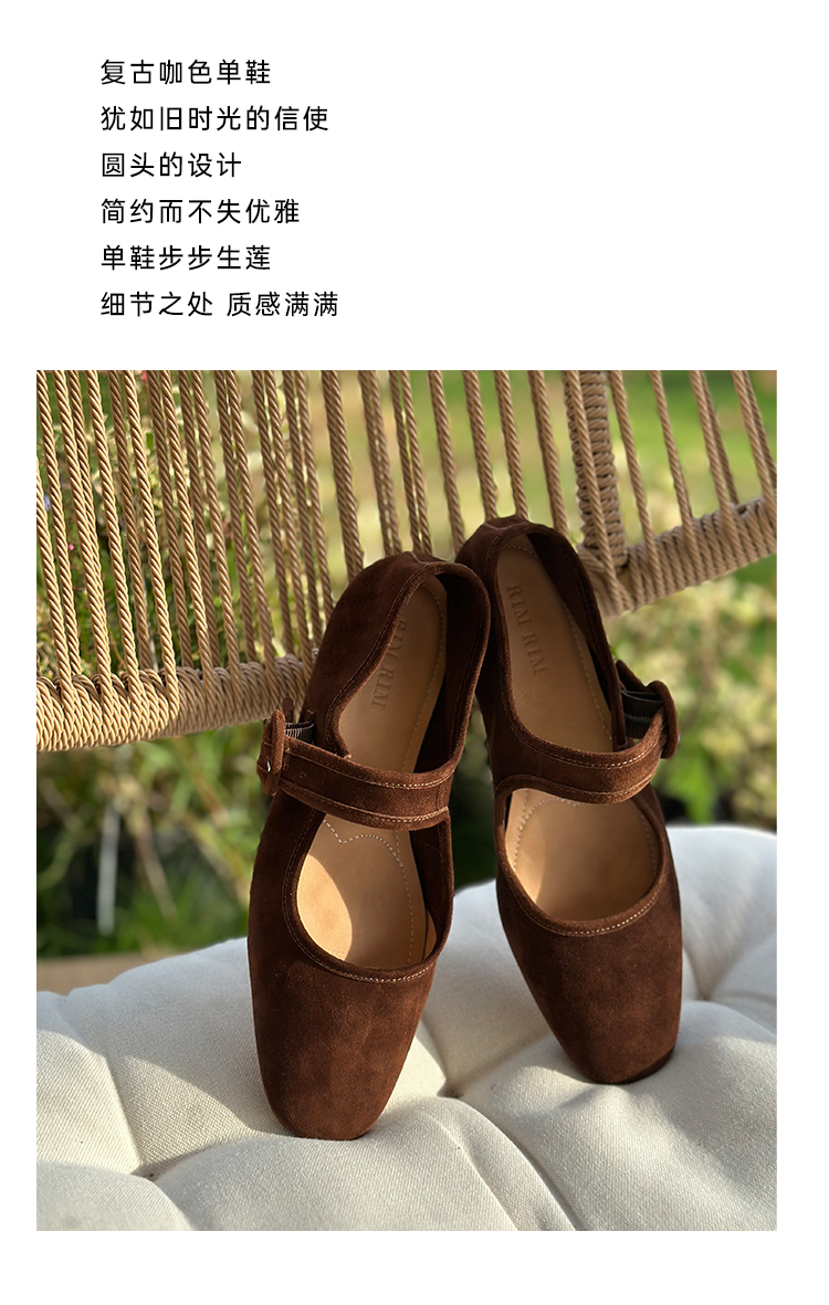 RIMRIM塑型马皮鞋法式复古圆头浅口羊反绒舒适奶奶鞋手工秋季女2430