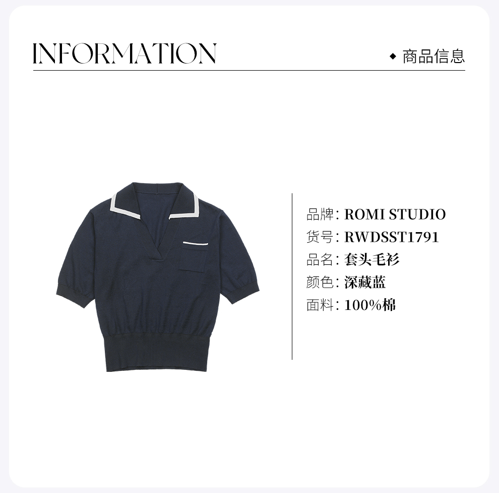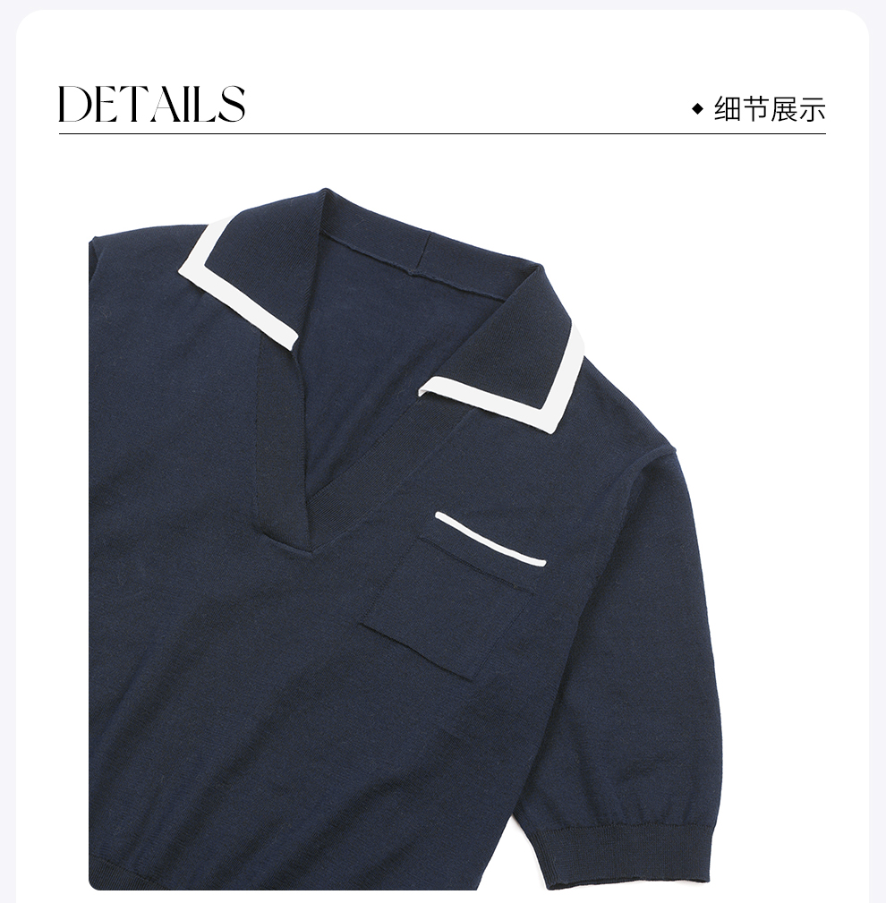 ROMI STUDIO“高智感”棉质撞色翻领修身短袖Polo上衣RWDSST1791