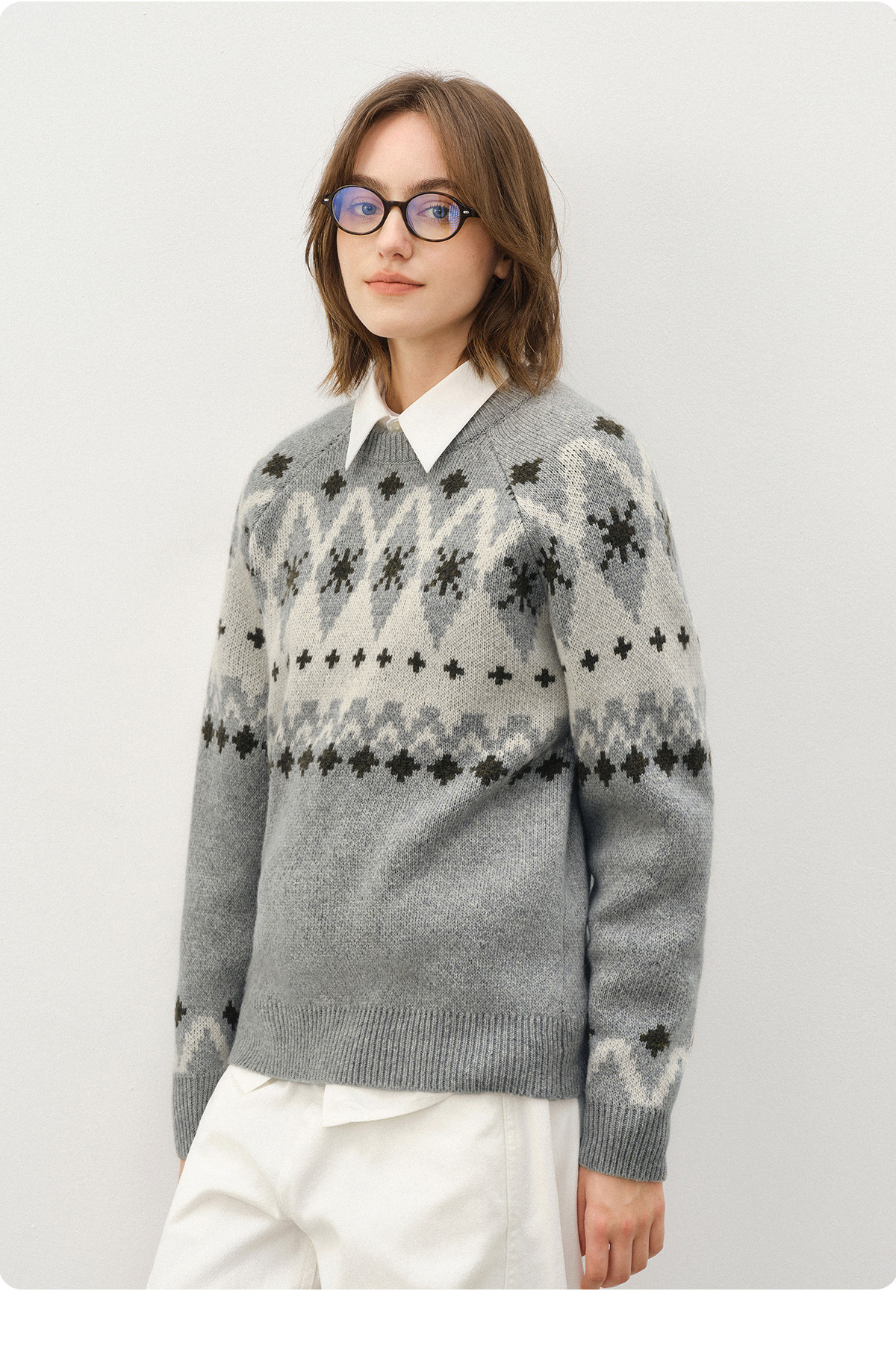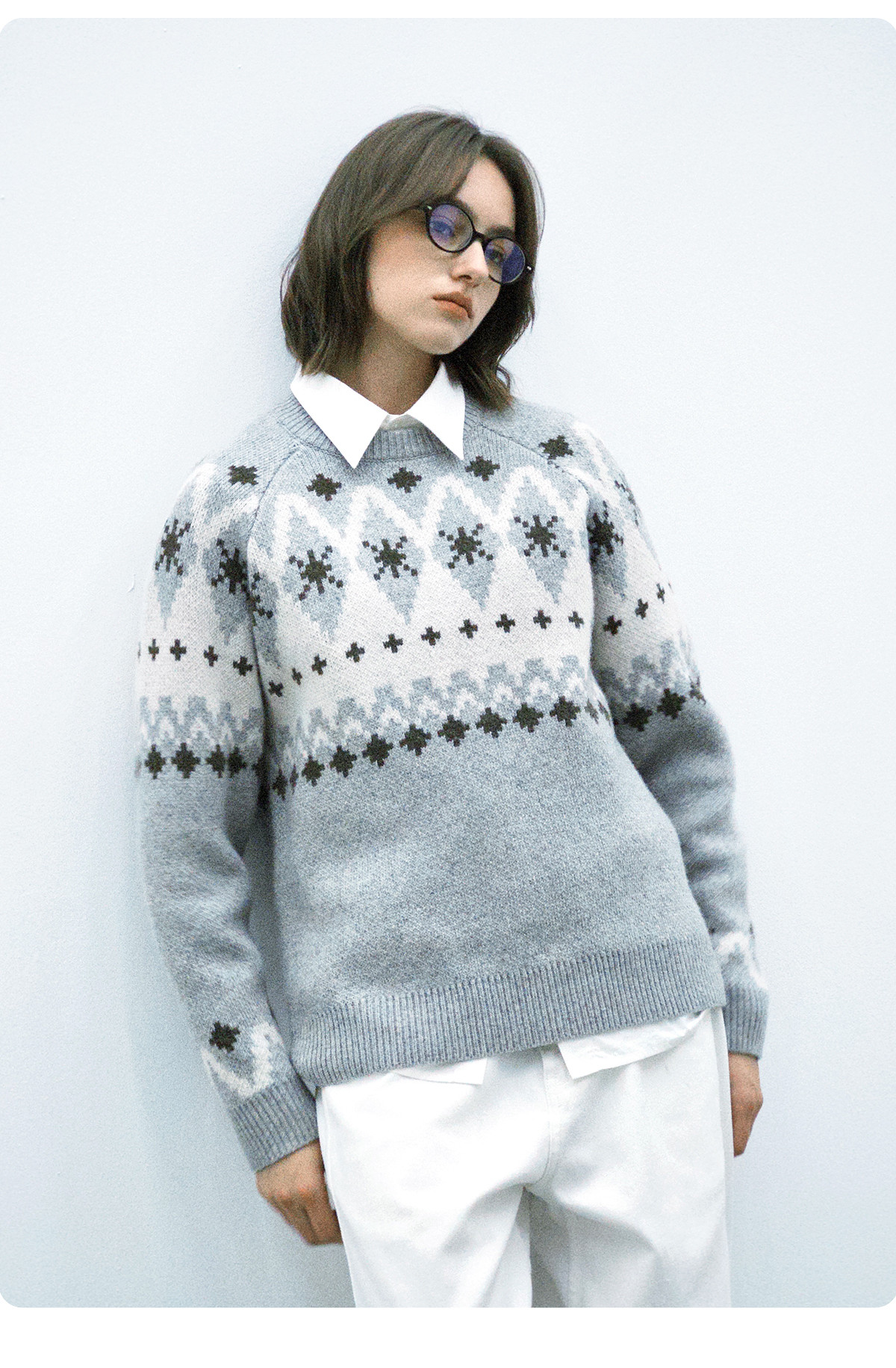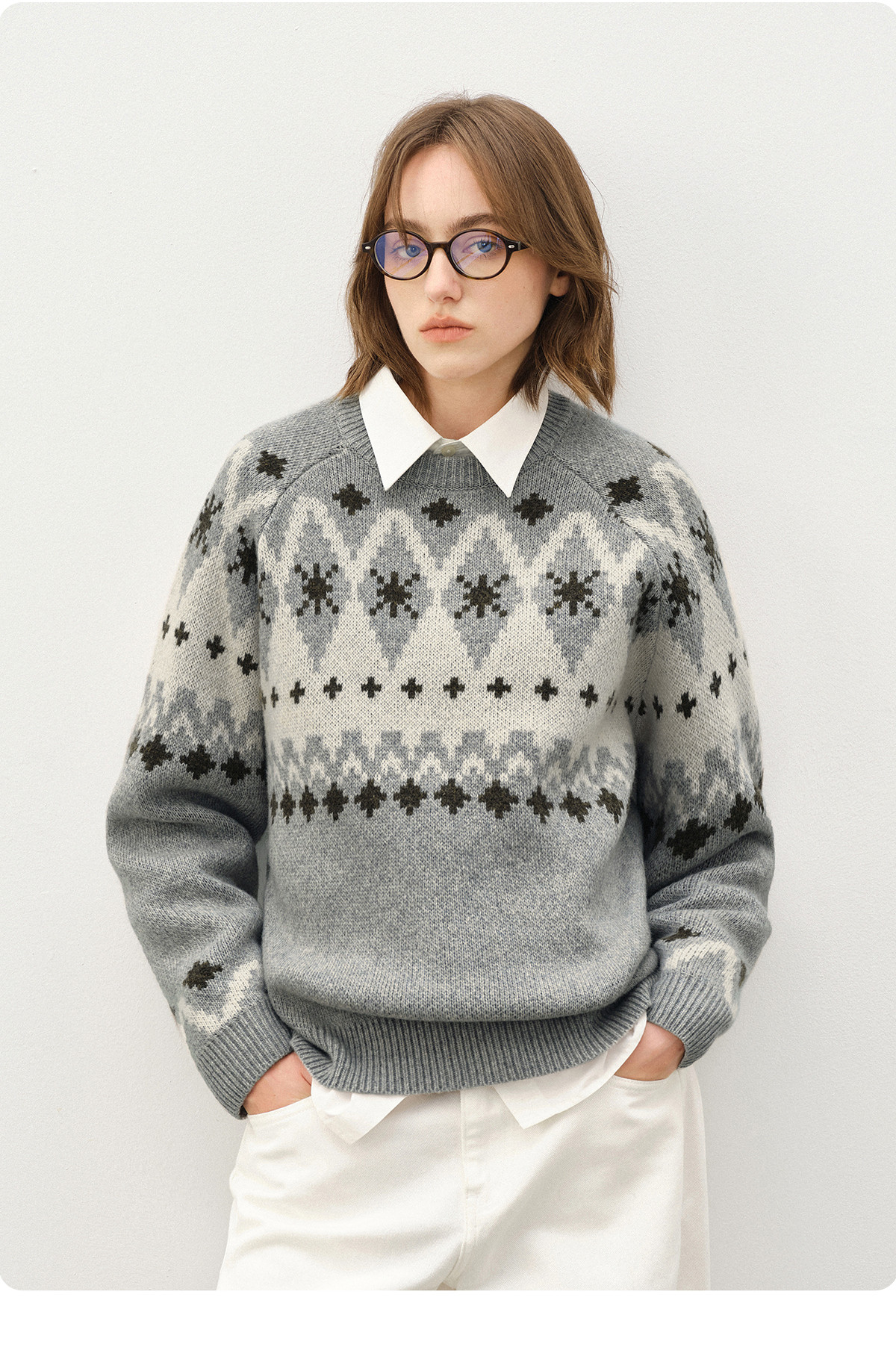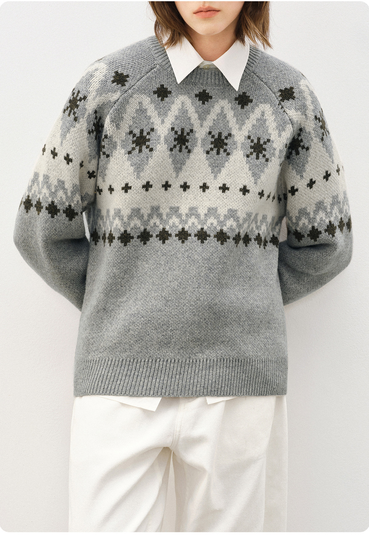 714street羊毛混纺费尔岛毛衣男2025秋冬情侣款落肩宽松针织衫女