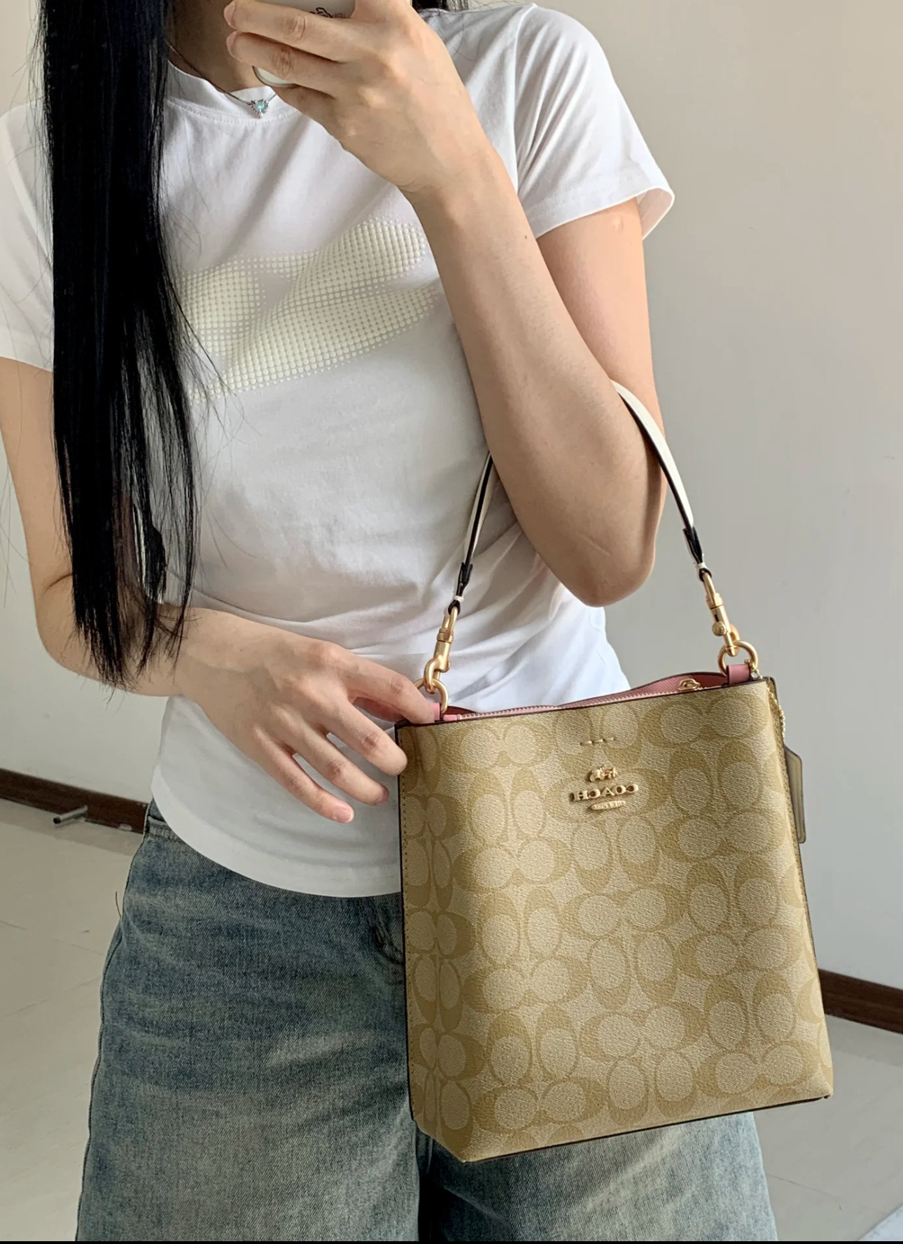 COACH 蔲驰女2025新款 mollie 22 单肩手提斜挎水桶包(SS)