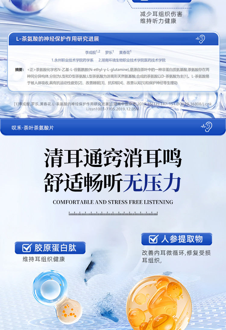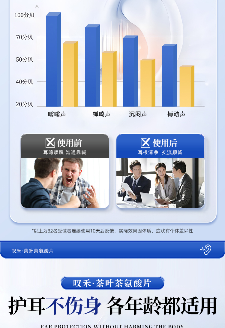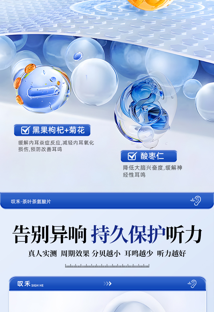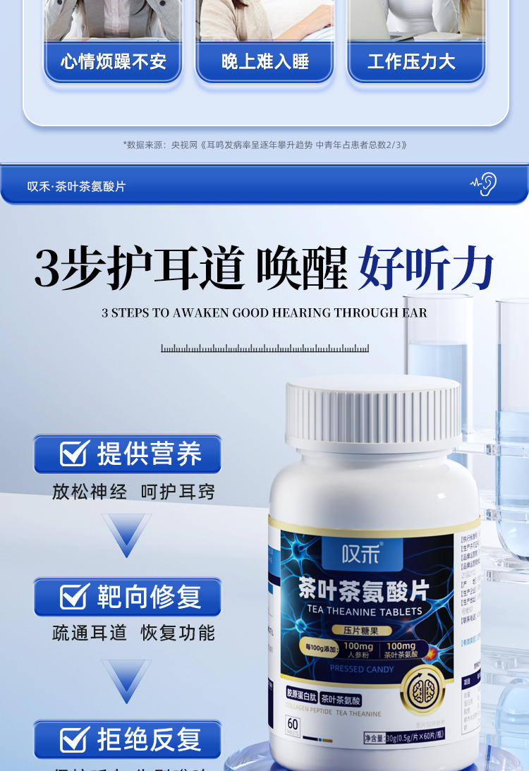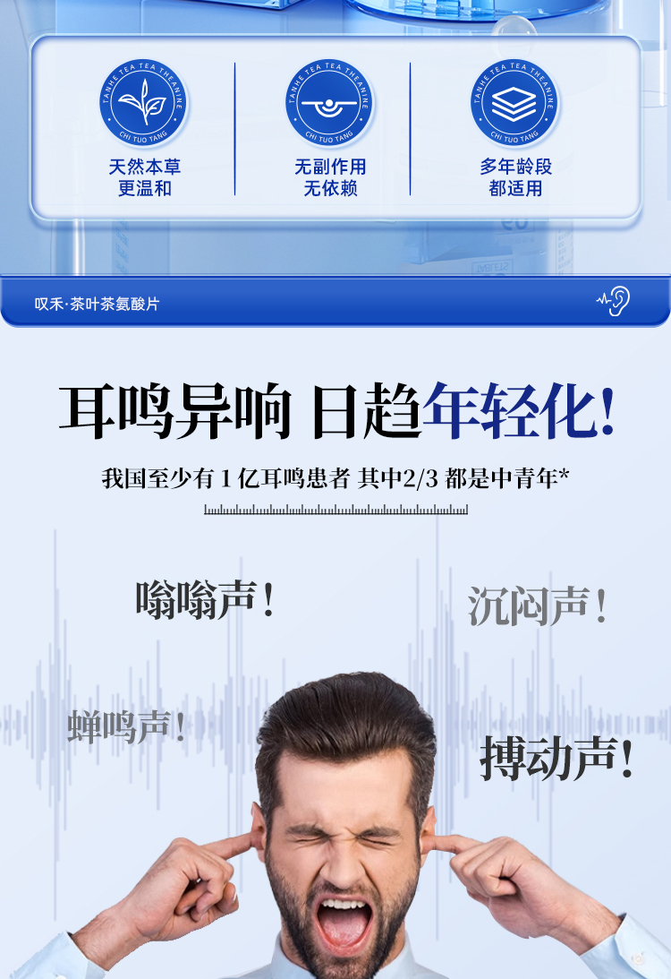叹禾茶酸片耳鸣神经性损伤修复脑嗡嗡响改善耳健康耳背蝉鸣声专用