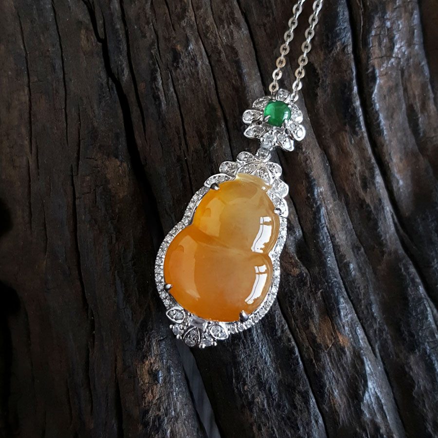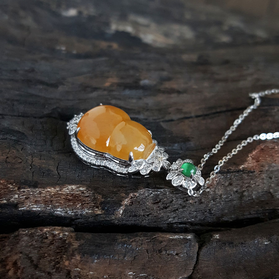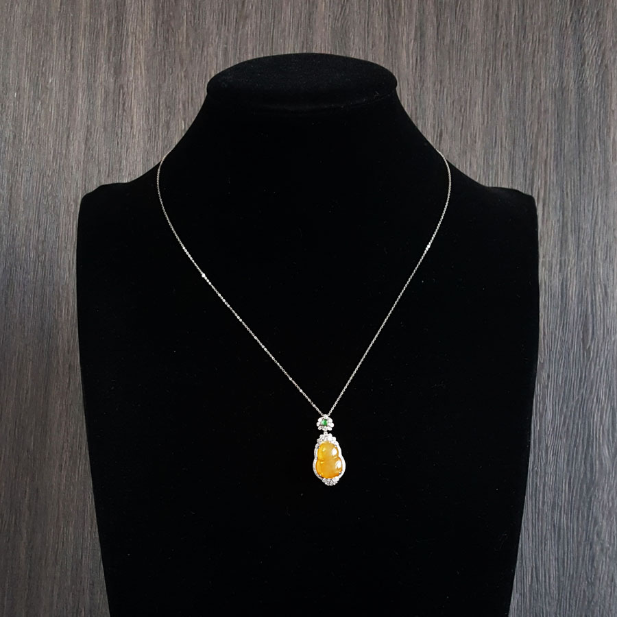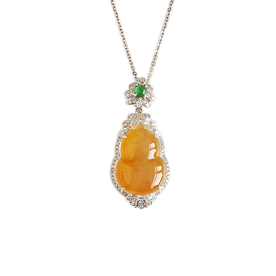 名称 | AU750精品白金镶钻镶天然冰种葫芦造型黄翡翡翠吊坠项链 |