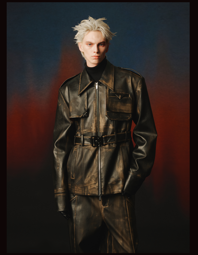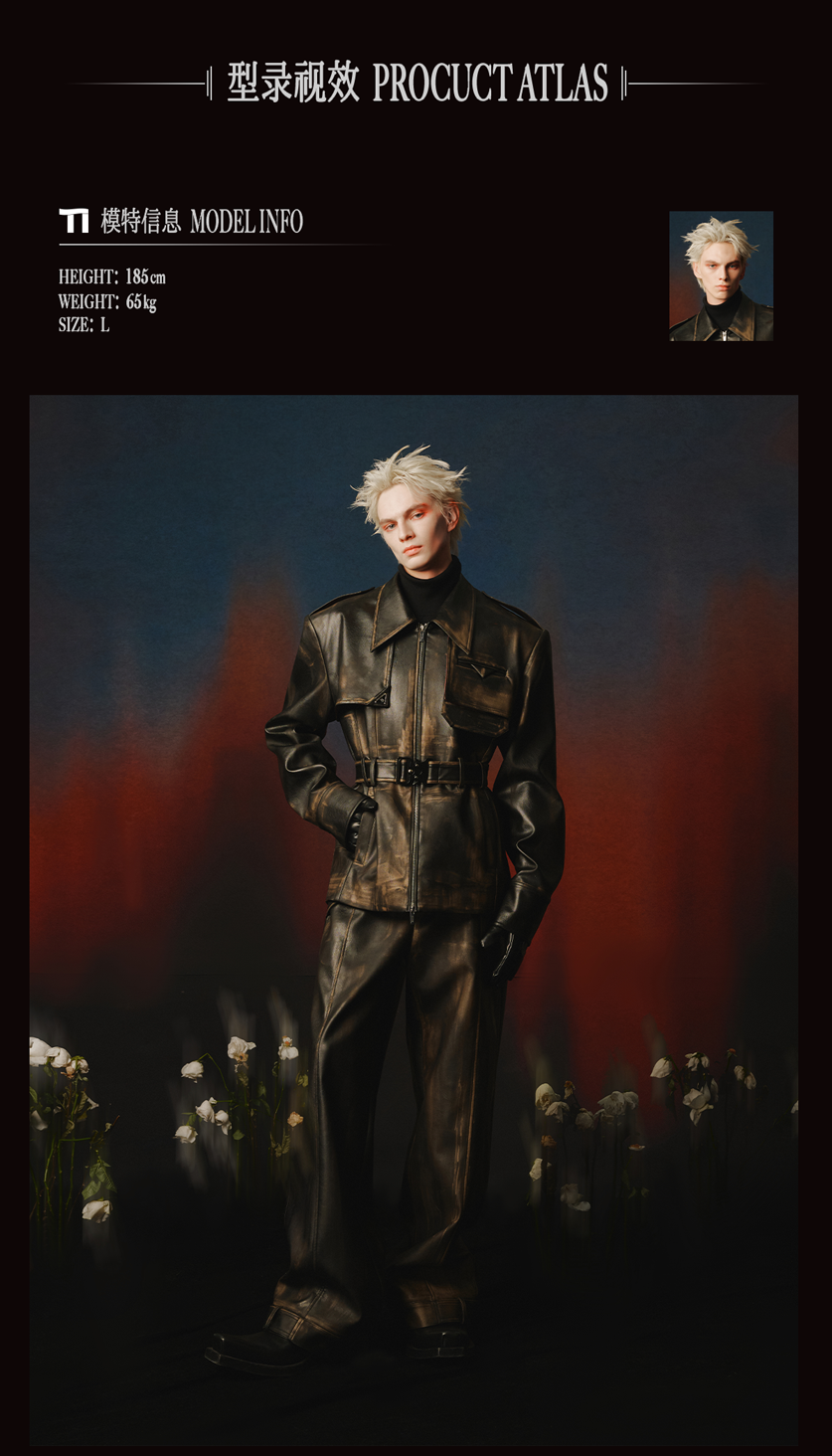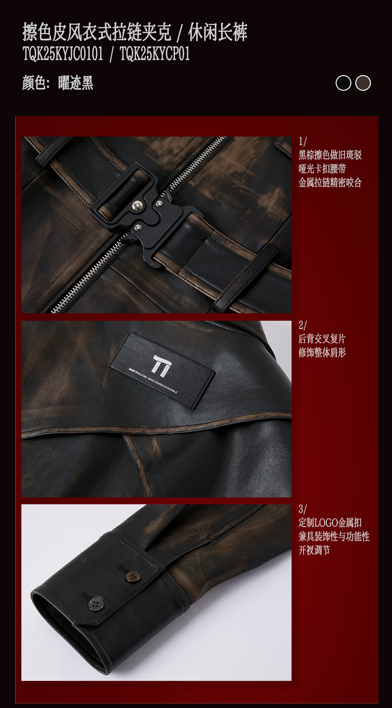 【启世录TIWILLTANG】x《狂野时代》联名系列【黑曜驳迹】旧城廓影界外绅士锋型砺痕拉链夹克