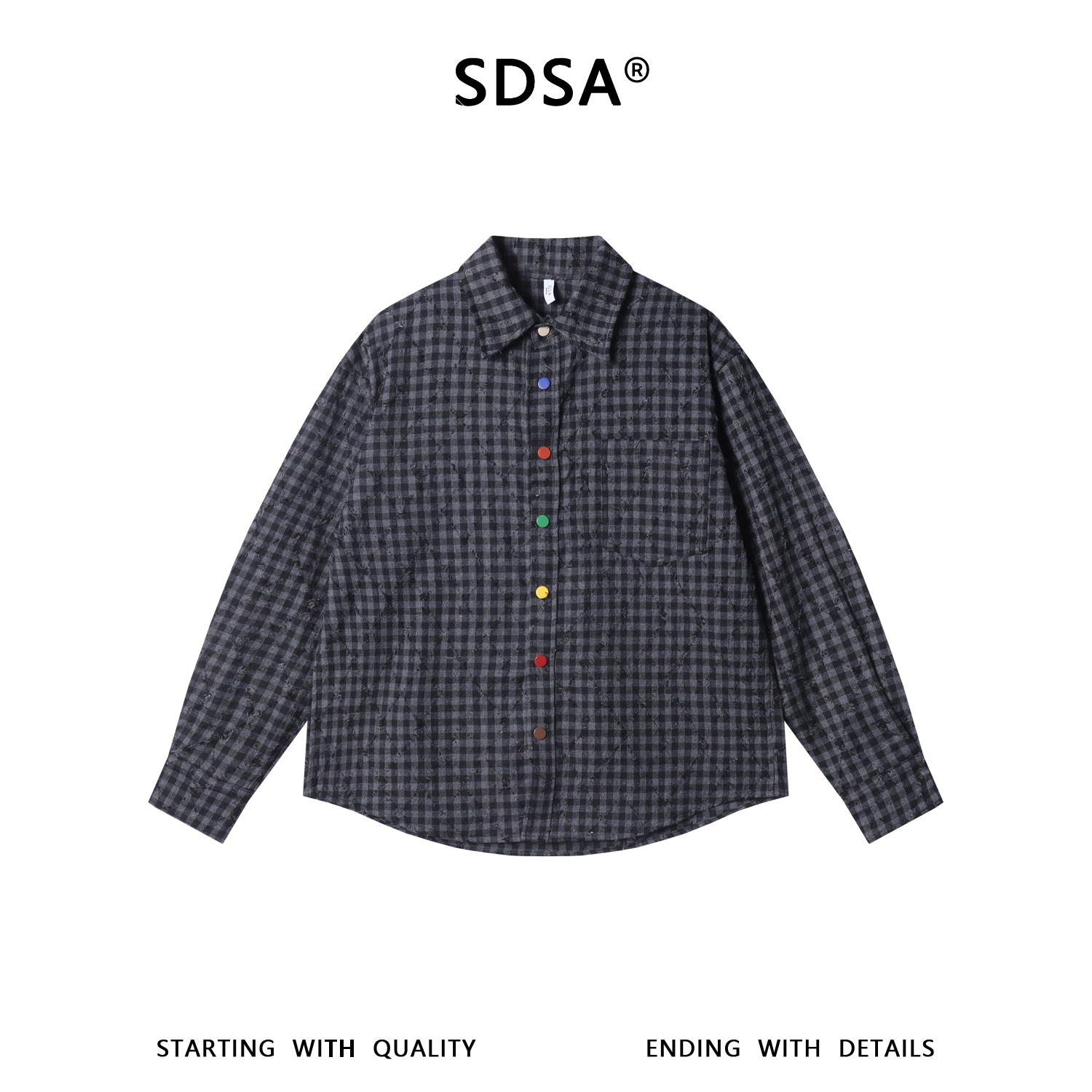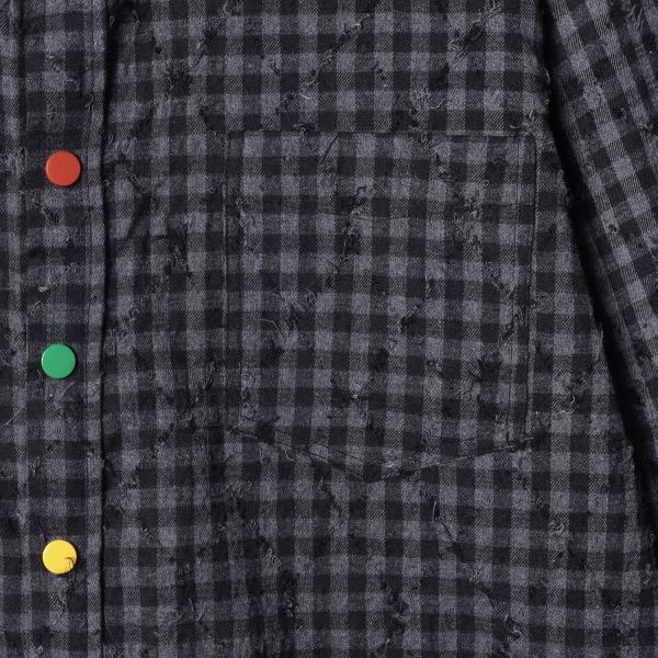 26CS18SDSA男士秋冬新款痞帅男装潮牌小格子磨破菱形格长袖衬衫百搭休闲