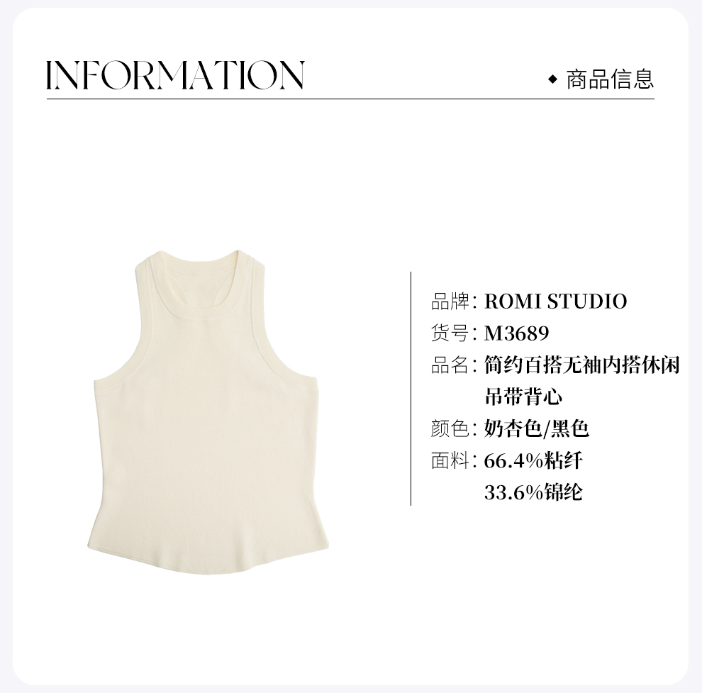 ROMI STUDIO【高品质】法式纯色简约百搭无袖内搭休闲吊带背心M3689