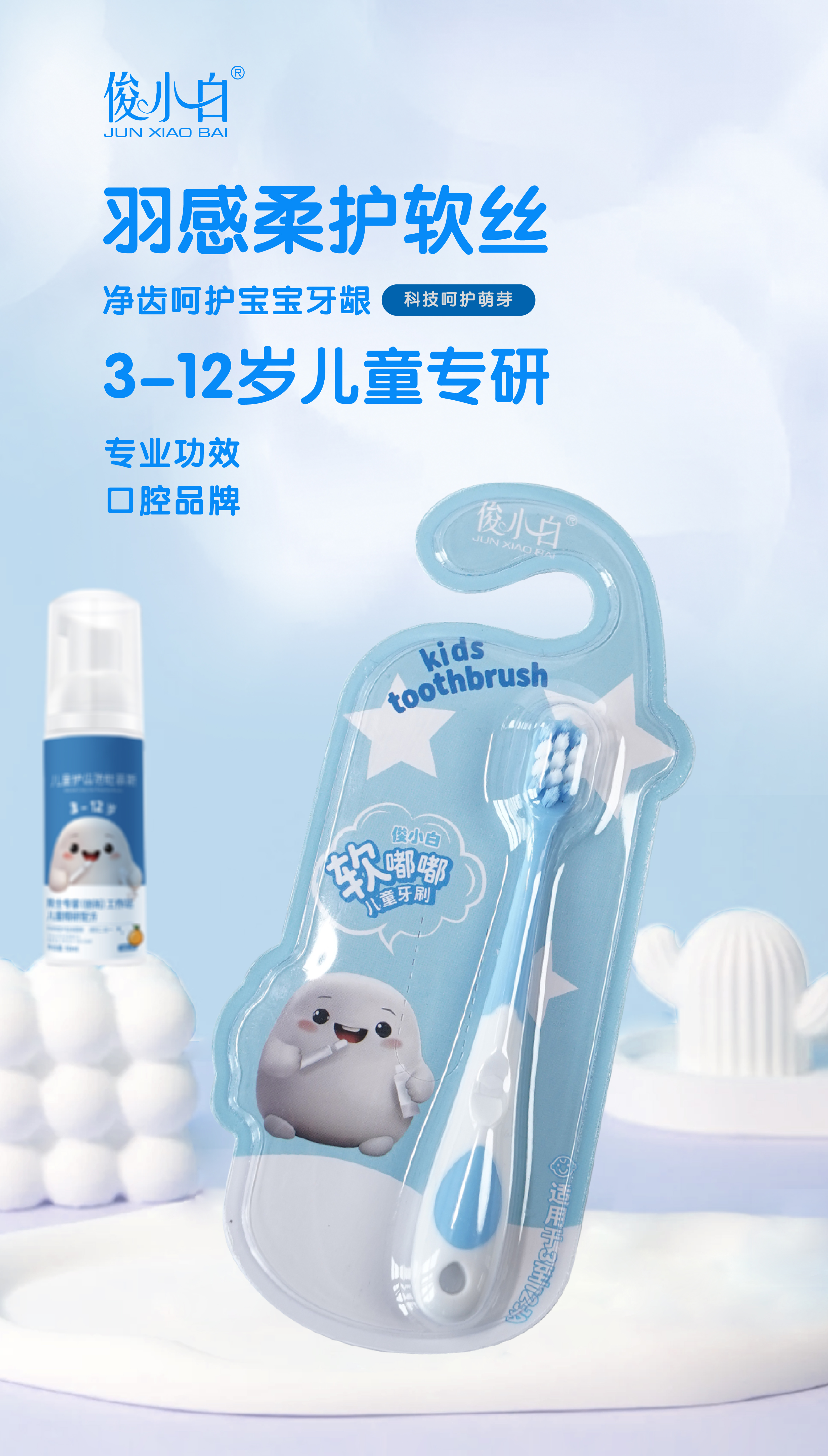 俊小白3-12岁儿童软毛牙刷