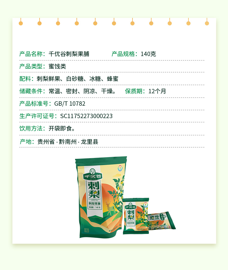 贵州黔南龙里县千优谷刺梨果脯140g/包