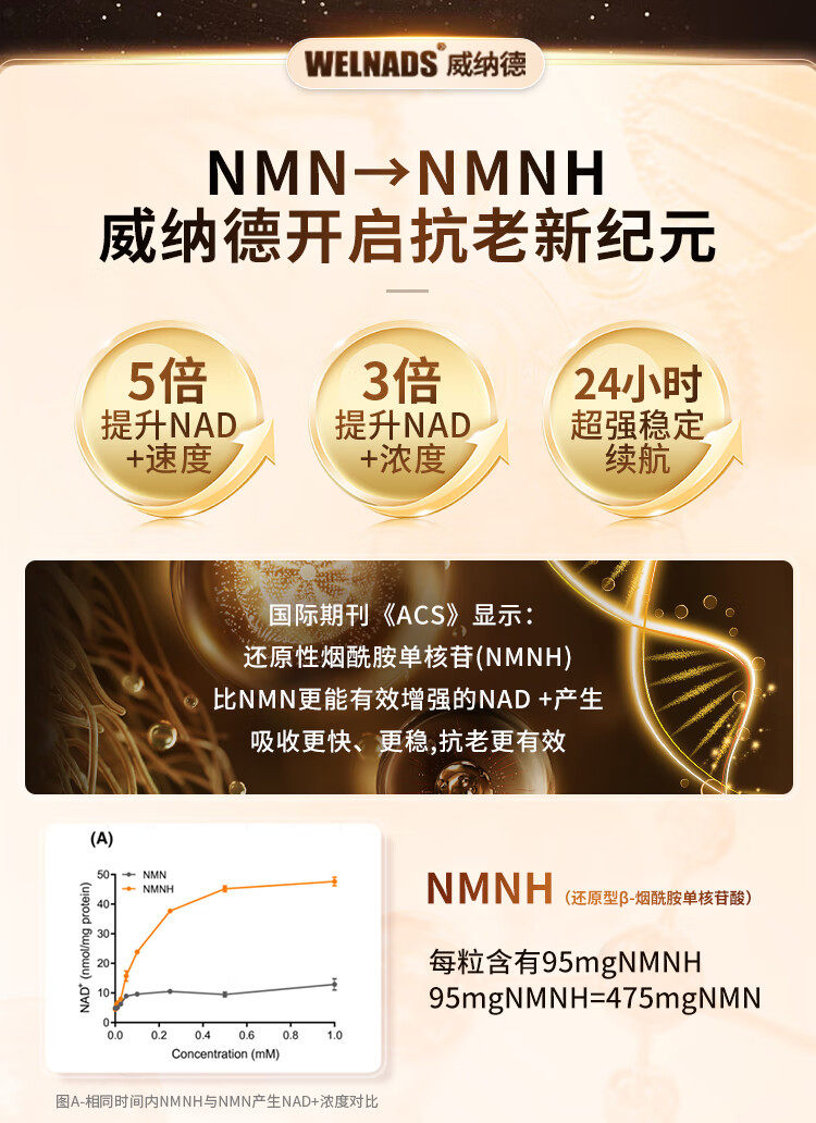 威纳德nmn42000金钻版烟酰胺NAD+补充剂中老年人美国原装进口90粒