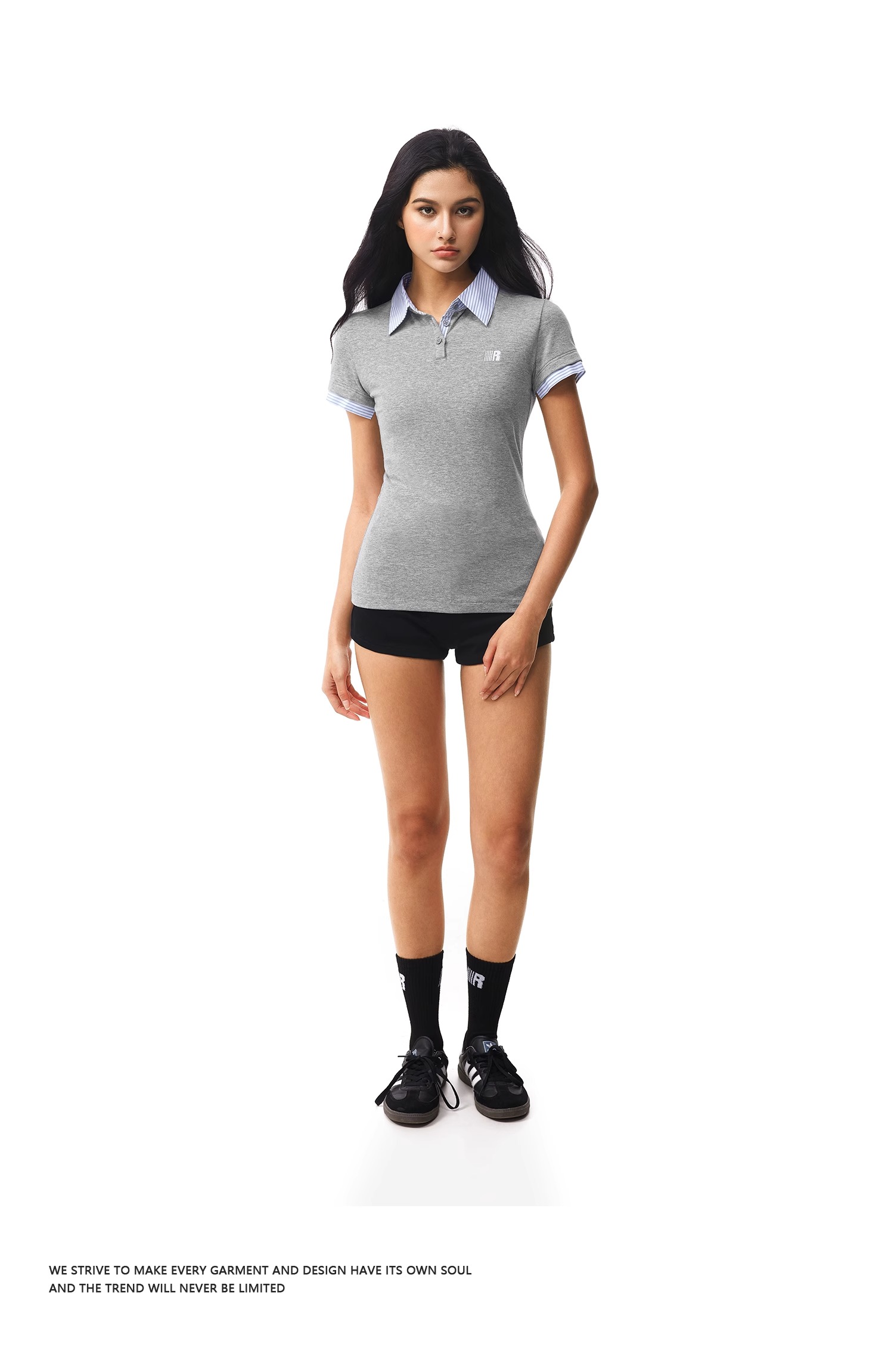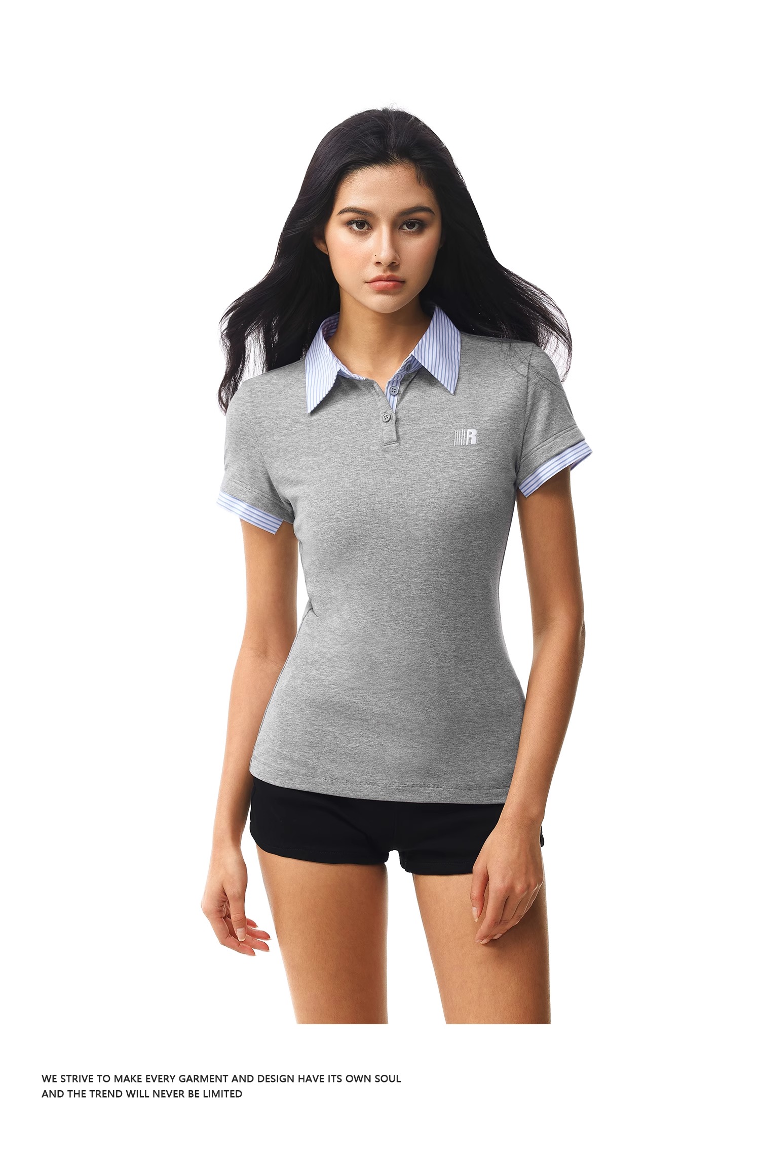 FDR官方店 polo衬衫领假两件短袖t恤女夏季老钱辣妹修身显瘦上衣