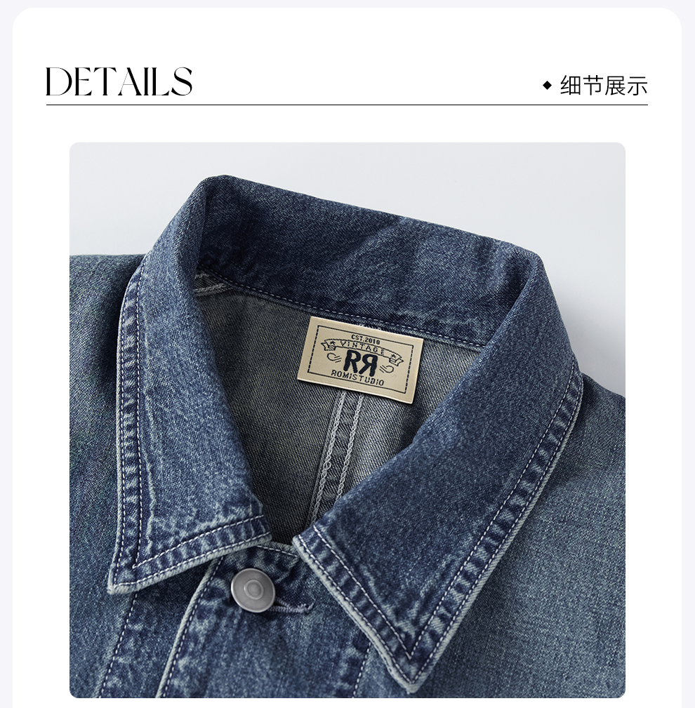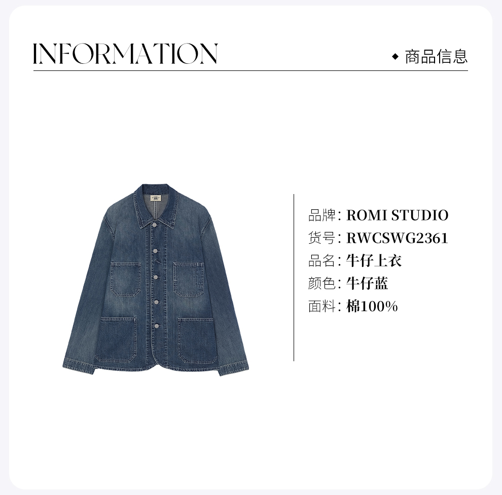 ROMI STUDIO土耳其进口全棉复古做旧水洗蓝牛仔外套 RWCSWG2361