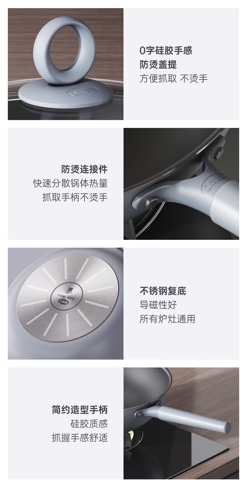 三禾微纳无涂层不粘炒锅不锈钢炒菜锅无油烟含钛锅具 LC30S1/LC32S1