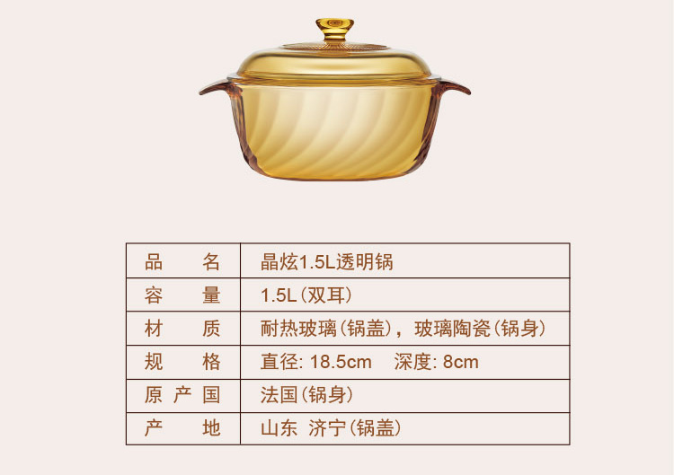 康宁(VISIONS) 晶炫玻璃锅汤锅炖锅煮锅 1.5L单柄晶炫锅VSP-15-TR-E/KZ)