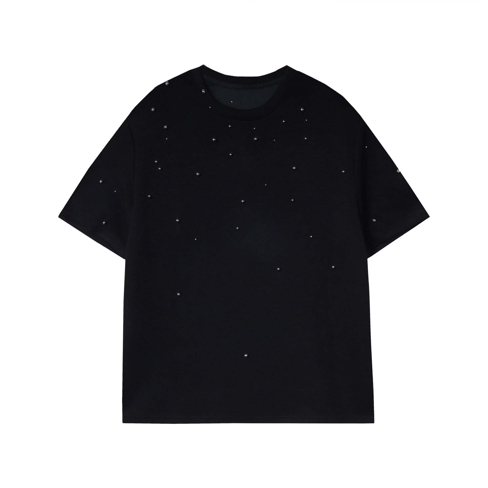 T580夏季新款重工满天星铆钉短袖t恤男女宽松半袖百搭体恤