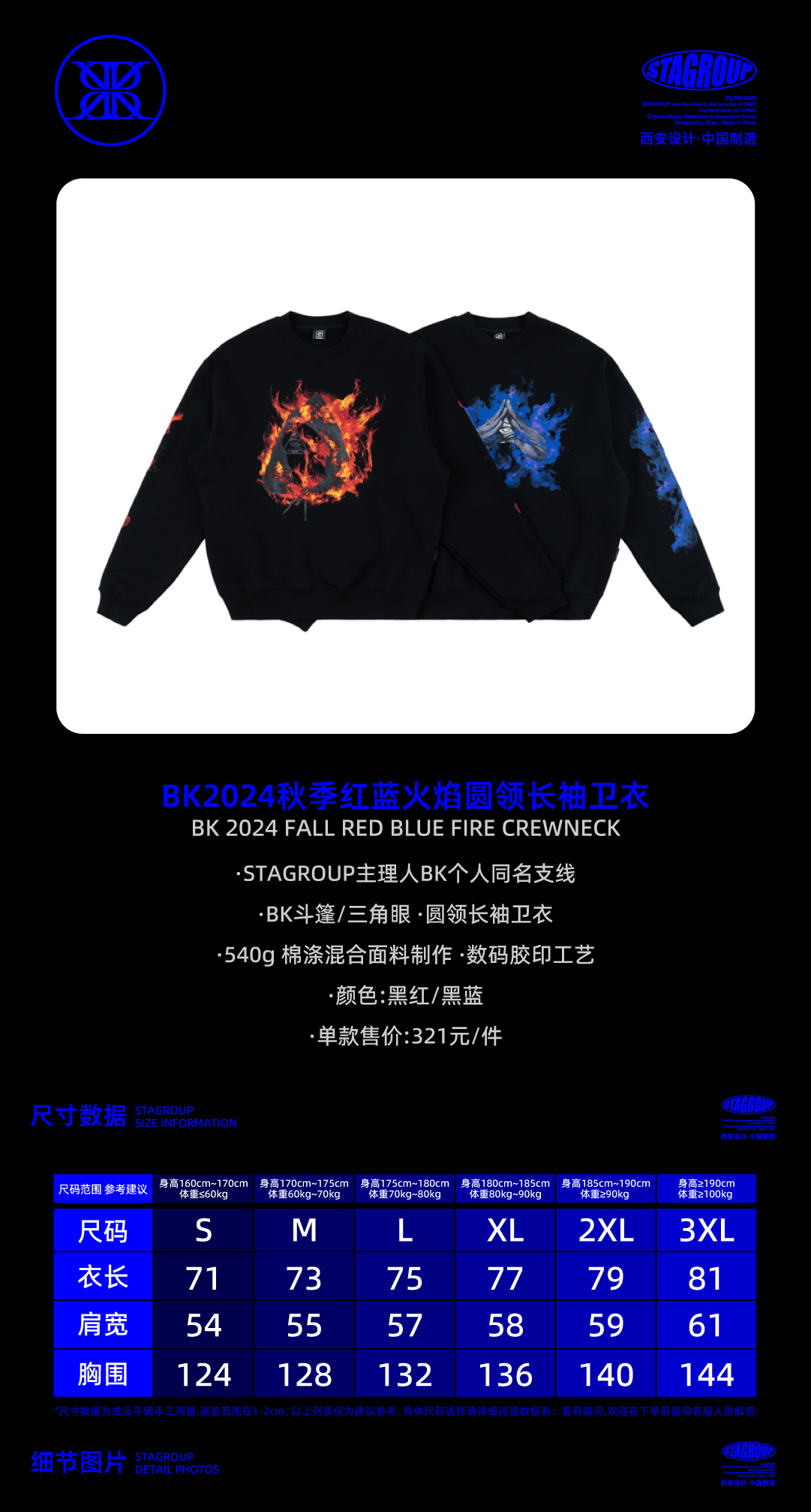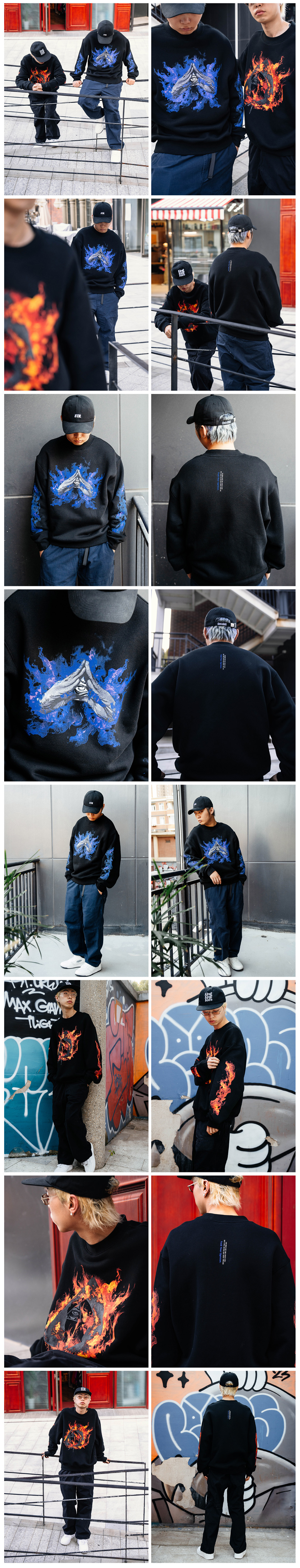 BK2024秋季红蓝火焰套头圆领长袖卫衣