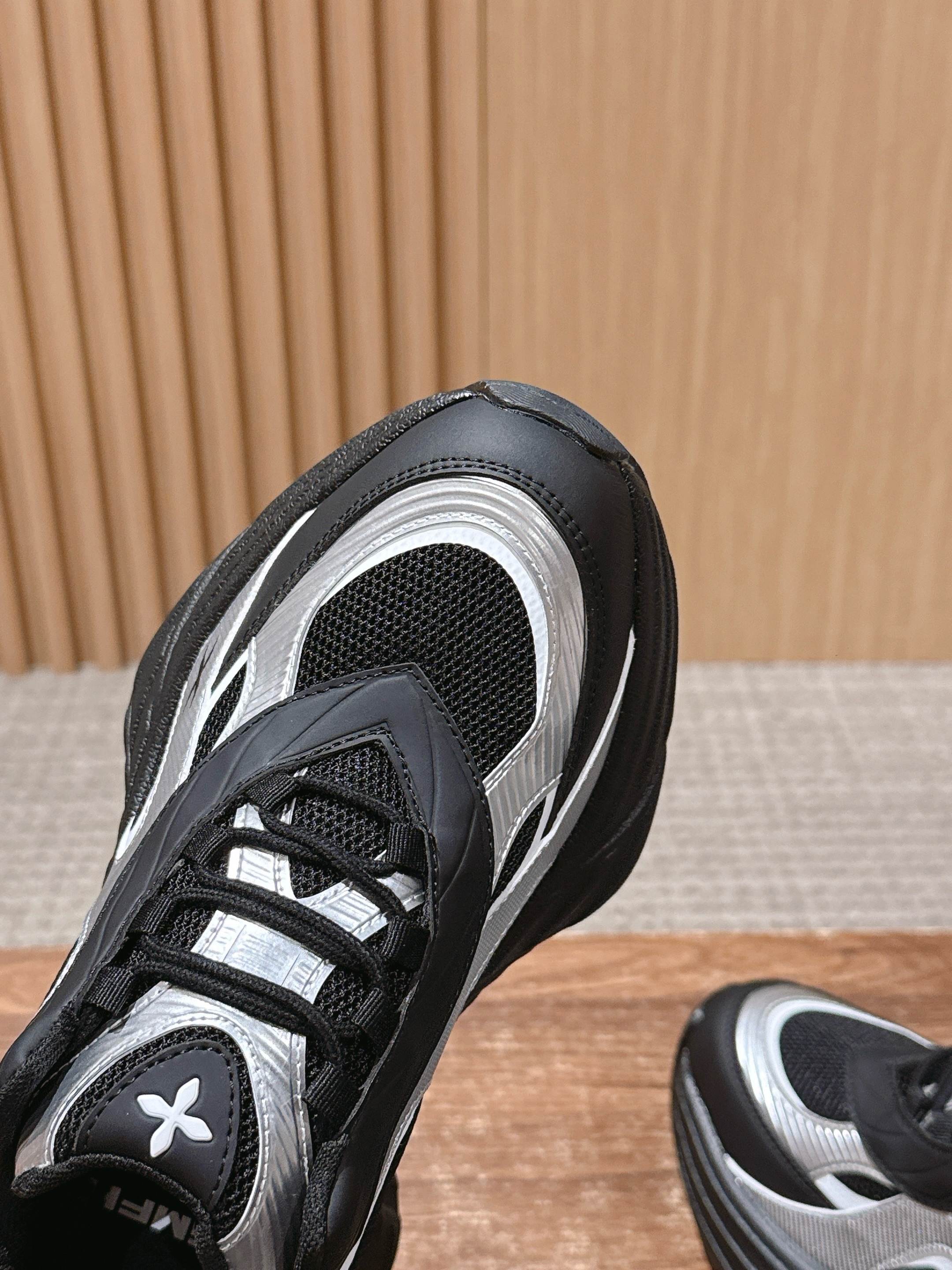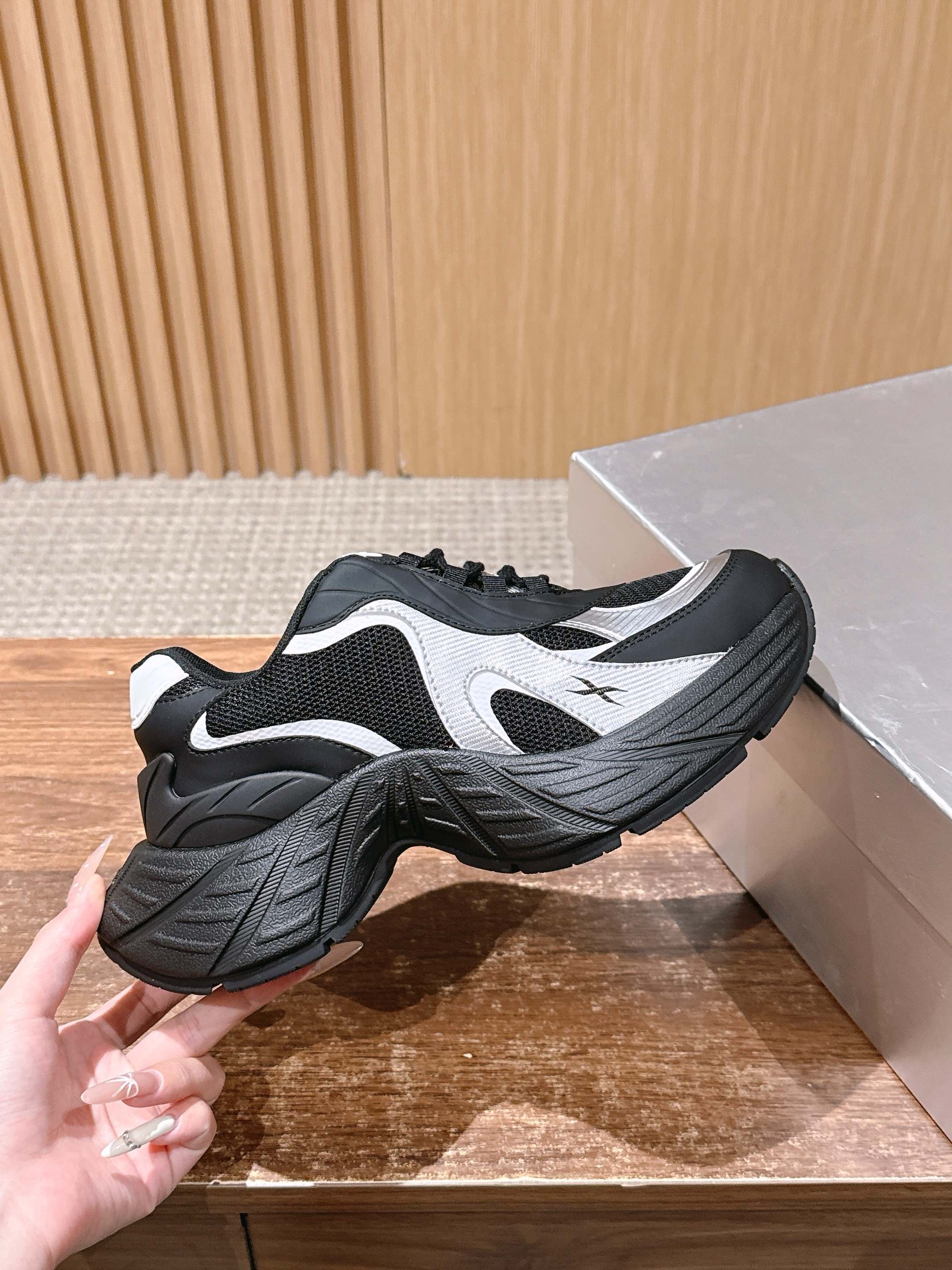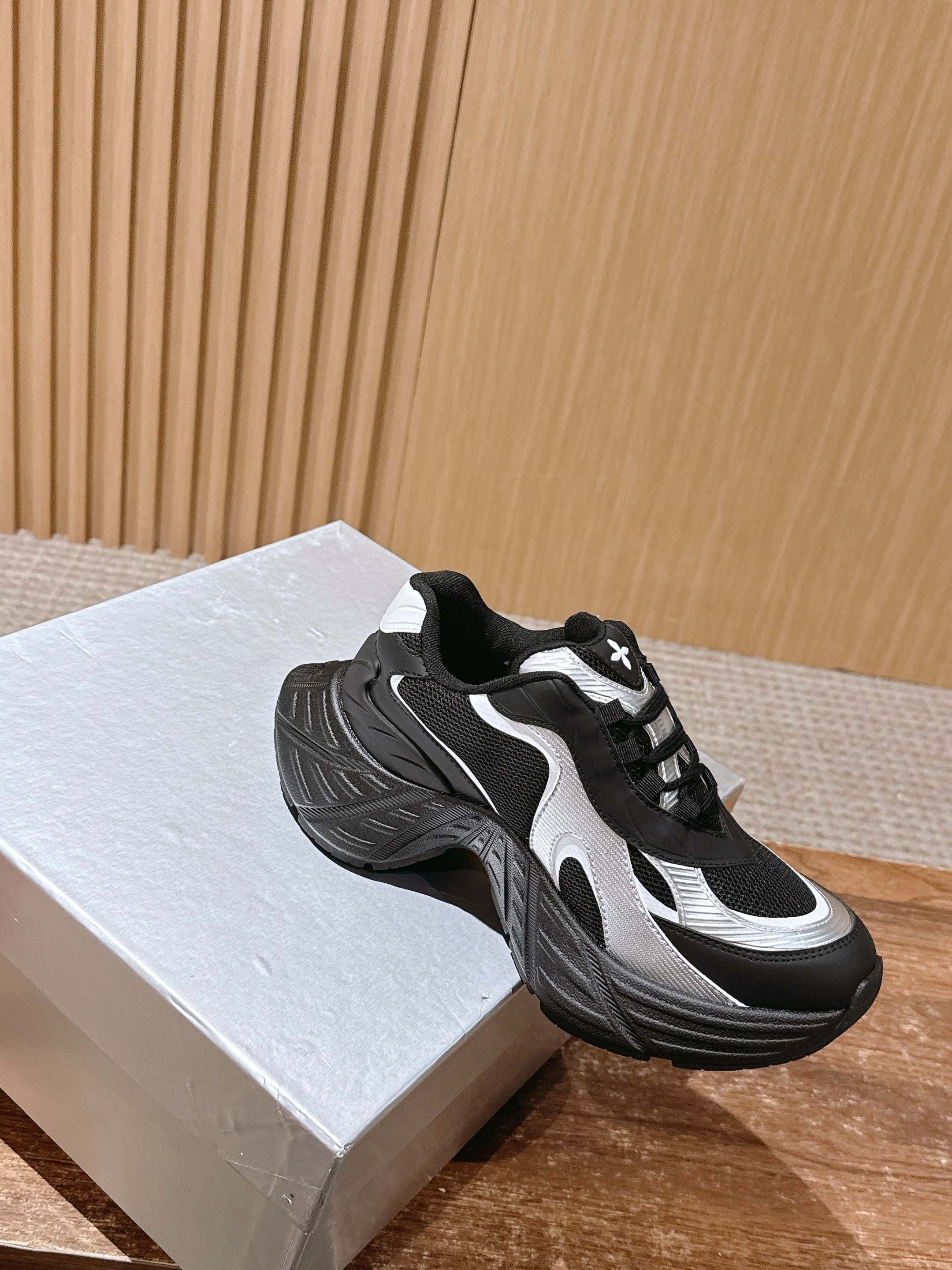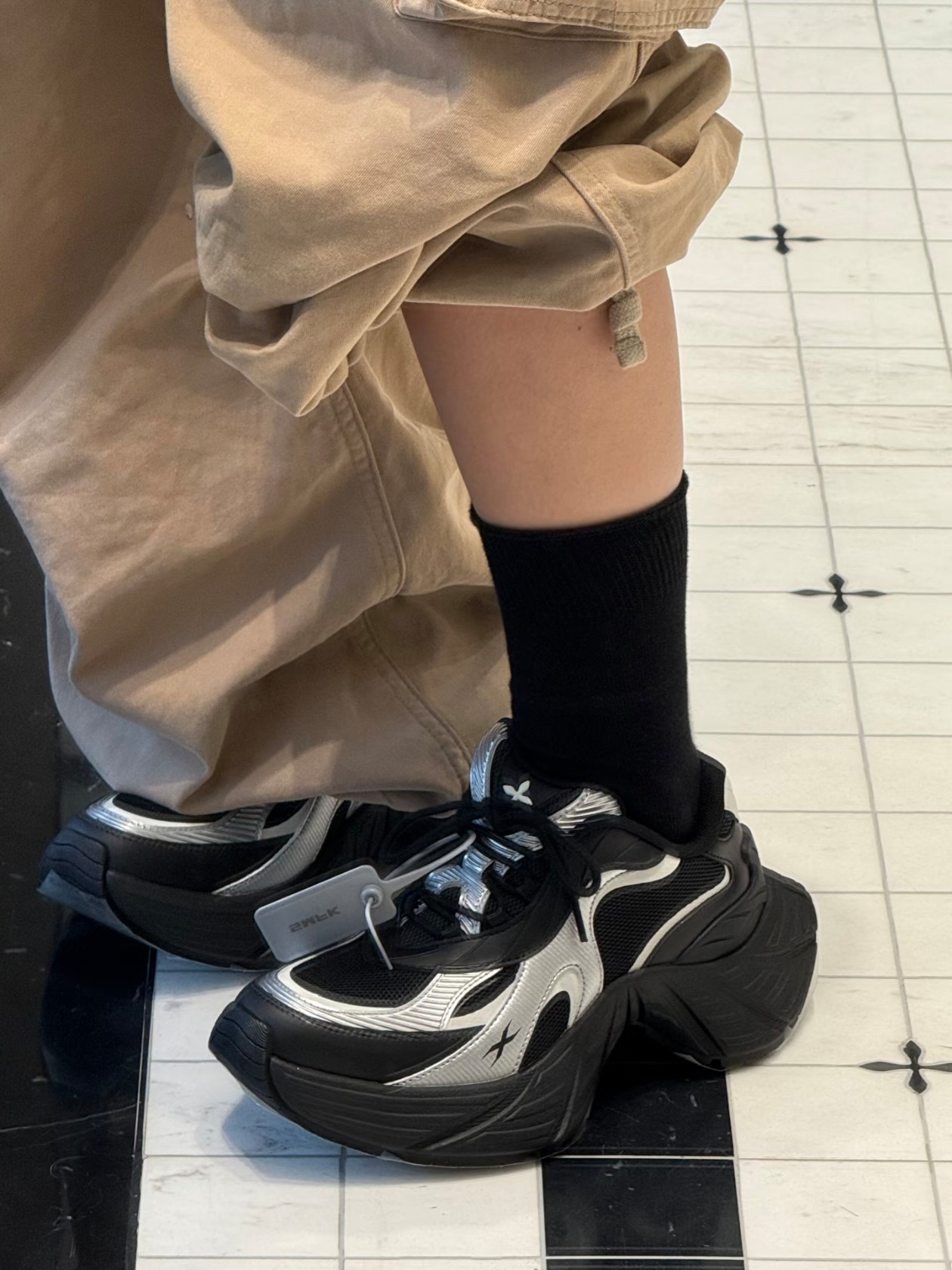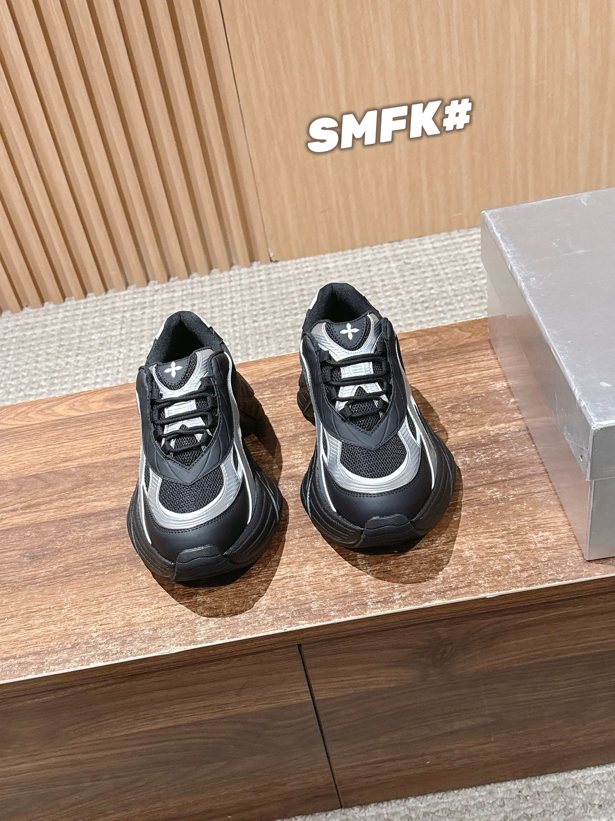 SMFK 25SS新款黑色厚底老爹鞋 采用网面与皮革拼接的材质,兼具透气性与质感。鞋身带有品牌标志性的十字花装饰,辨识度高,黑银配色酷感十足,充满未来科技感。 厚底老爹鞋款式,在提升时尚感的同时,还能起到显著的增高效果;系带设计贴合脚型,穿着舒适且便于调节松紧。融合了运动风与潮流感,既适合日常休闲,又能为造型增添个性与前卫感。 鞋面:网面/特殊工艺 内里:弹力网 大底:橡胶组合 Size:35-39(40定制不退换)