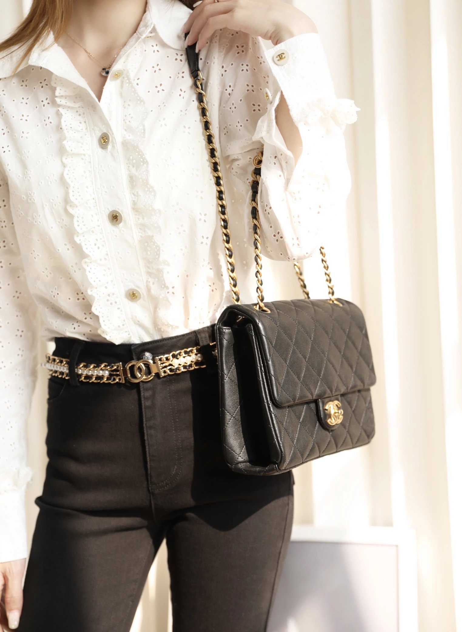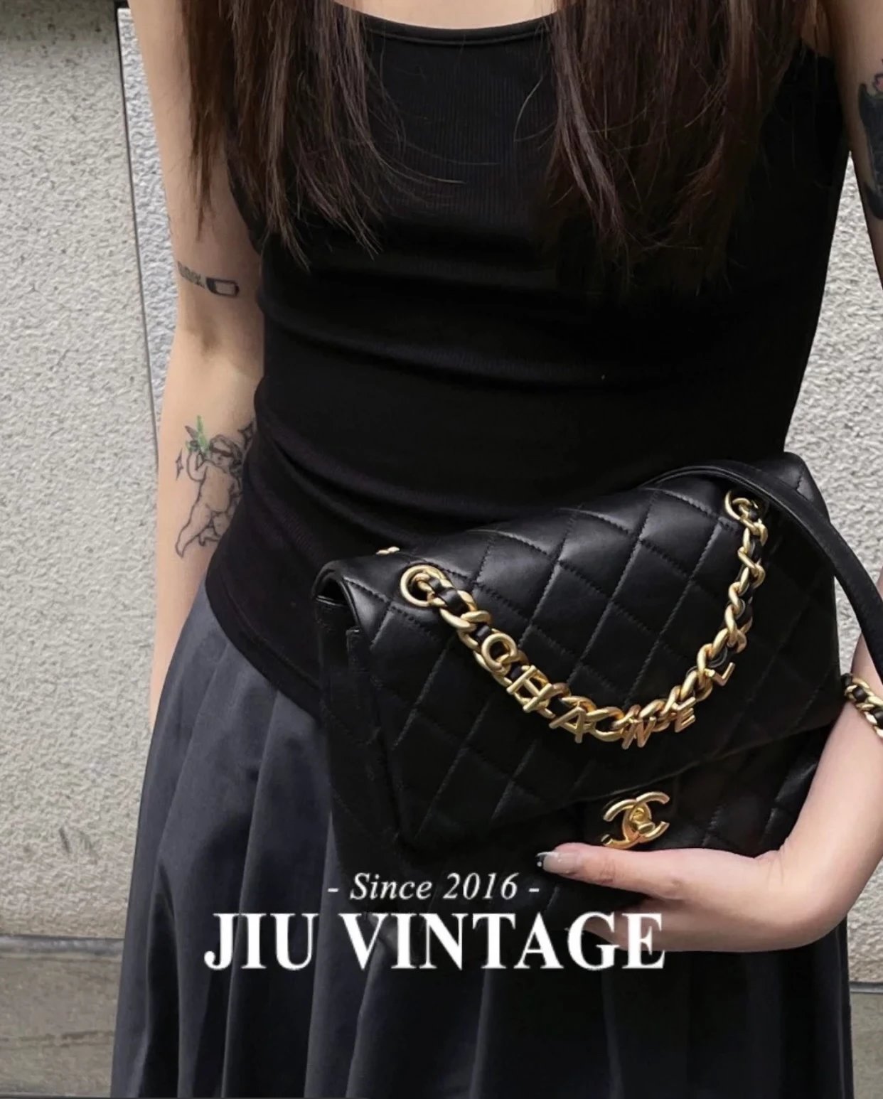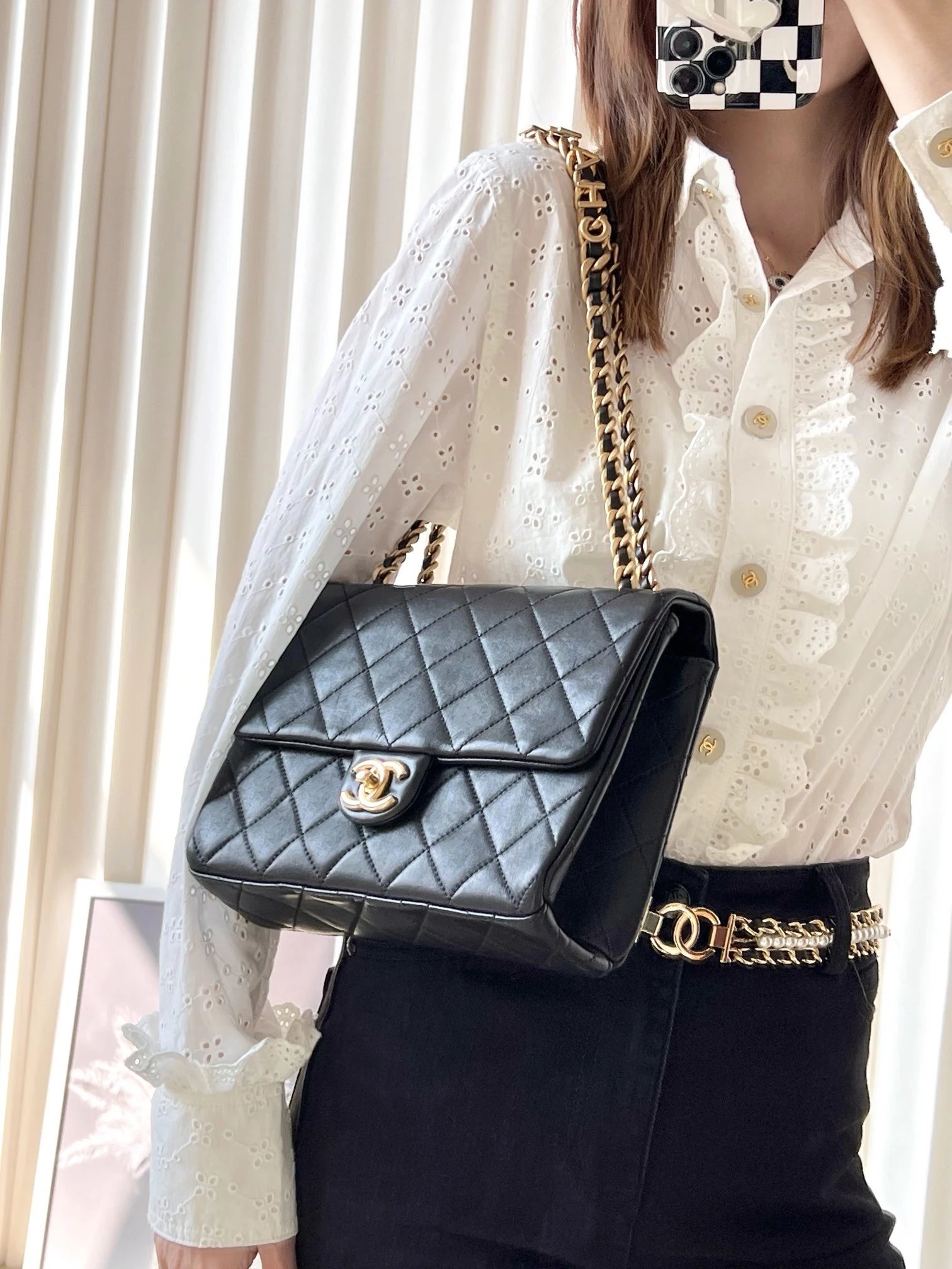字母链条口盖包 黑色小号