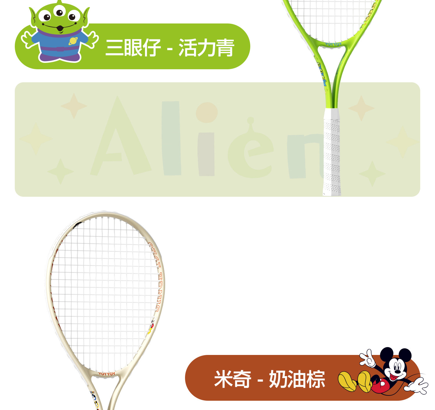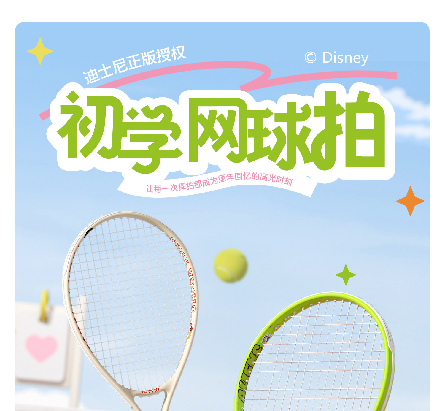 迪士尼网球拍YOTTOY单人打 回弹网球拍 带线 回弹 成人羽毛球训练