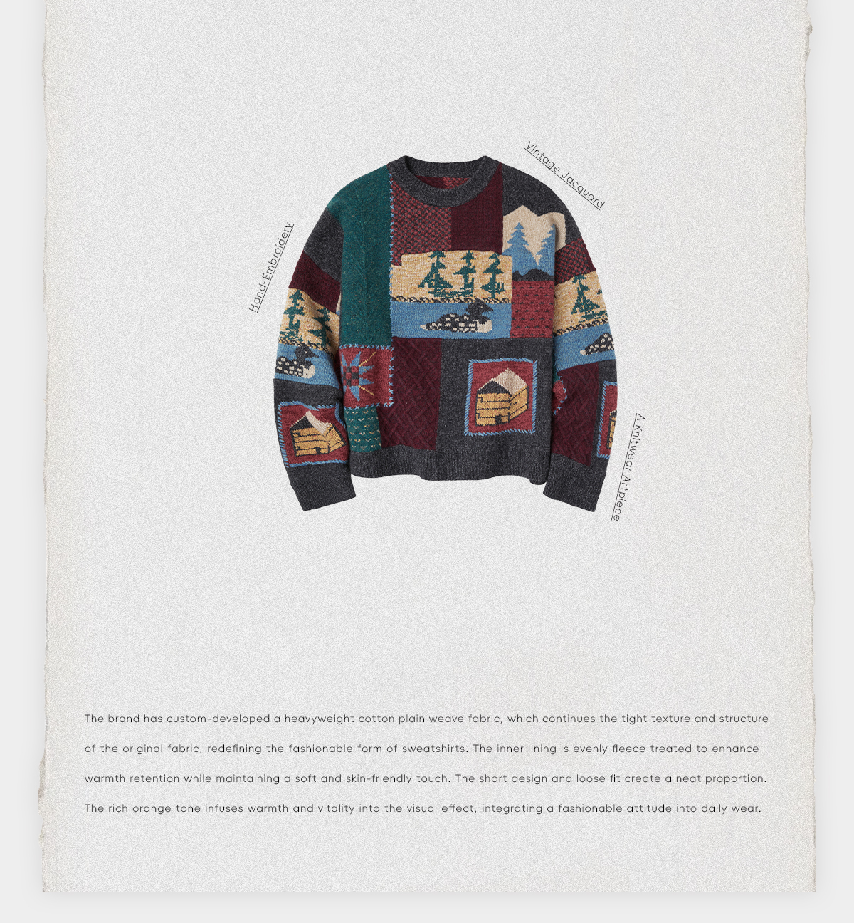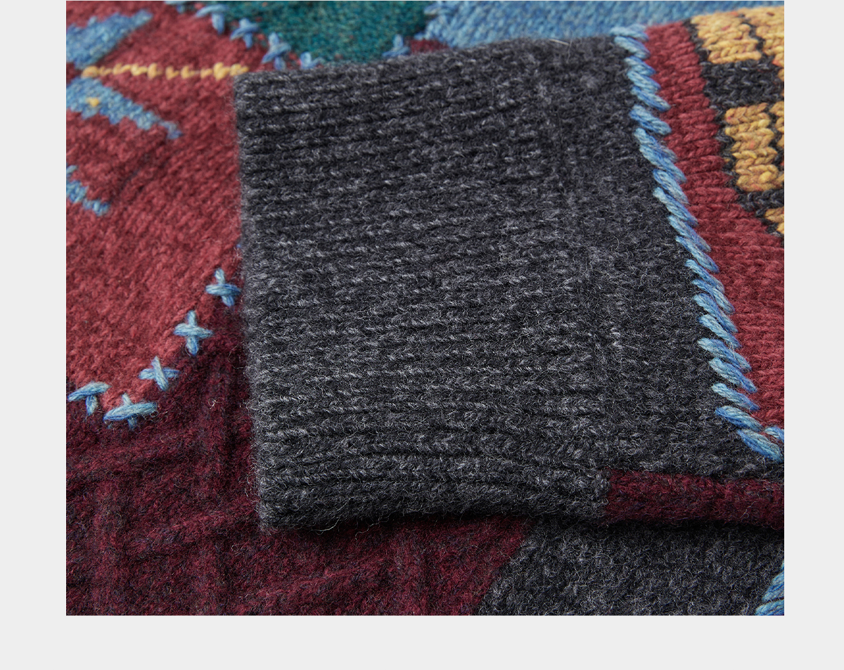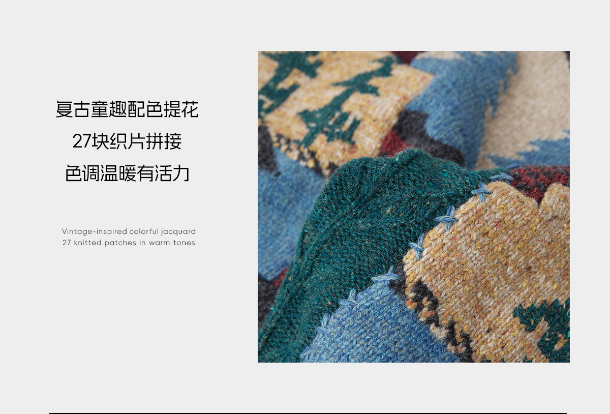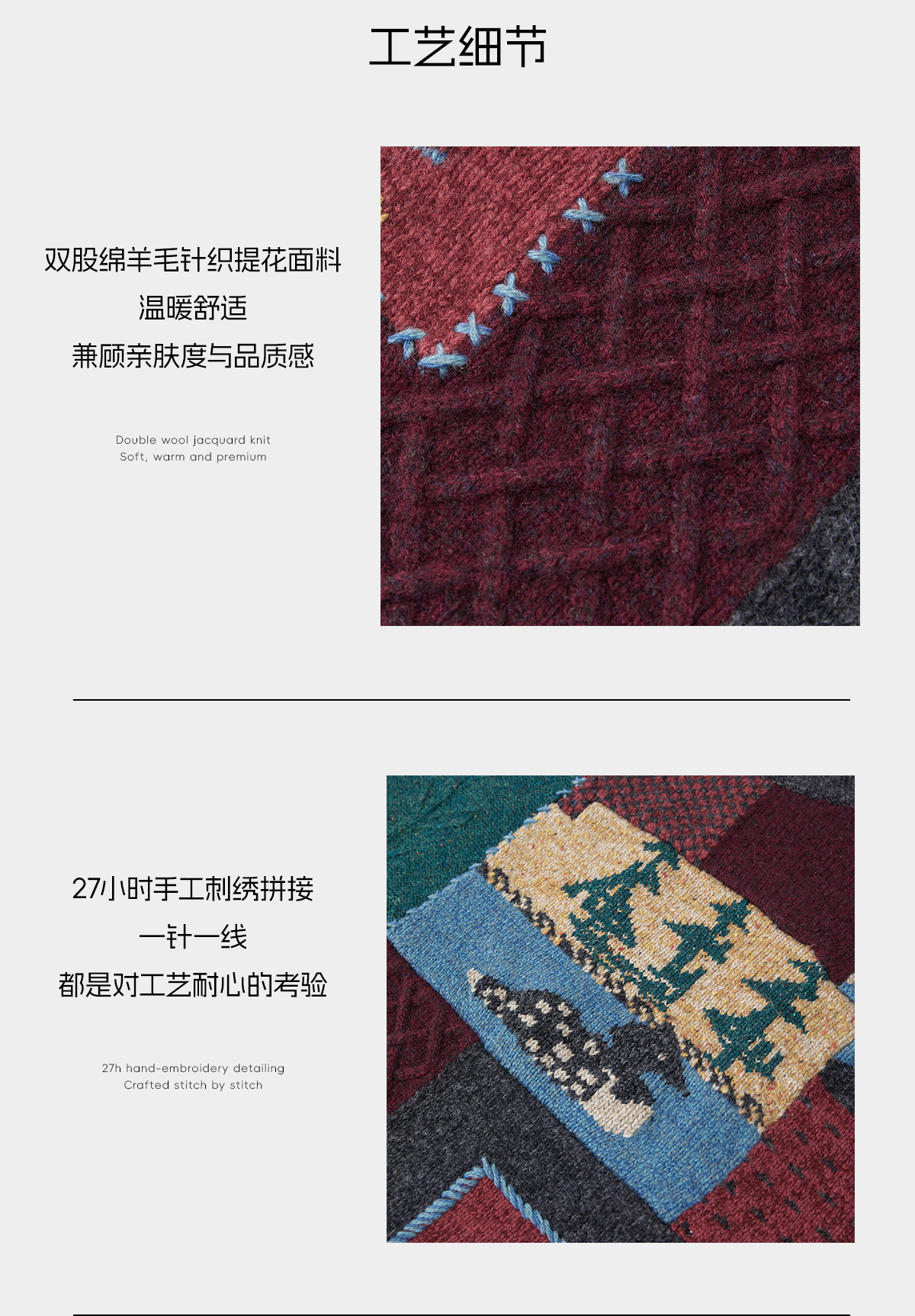 ROMI STUDIO”匠心针黹“绵羊毛复古提花手绣图案针织衫 RWCWST6243