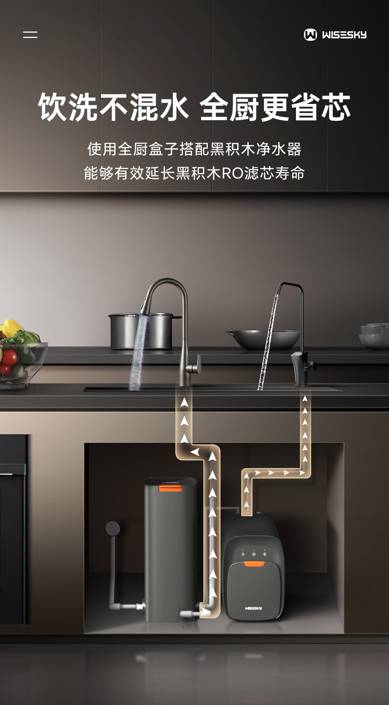 WISESKY黑积木C2全厨盒子原装活性炭净水机一体式炭纤维复合滤芯WSKP-100-C