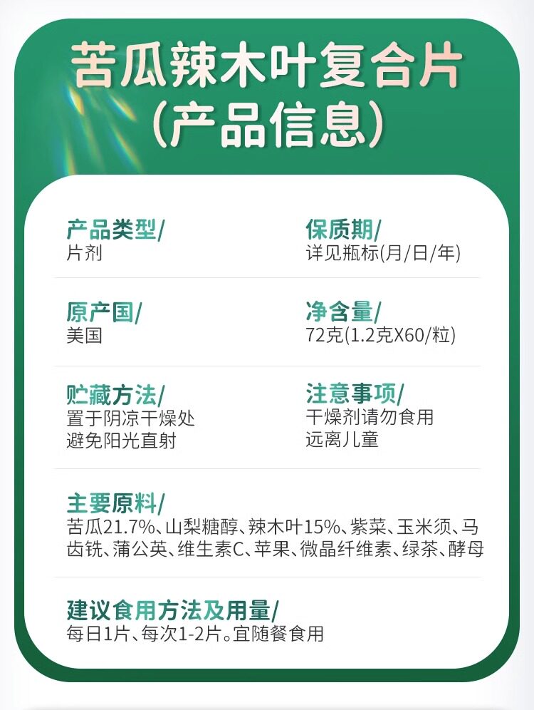 平衡5.0血糖健康美国进口天然口服胰素苦瓜素铬元素中老年