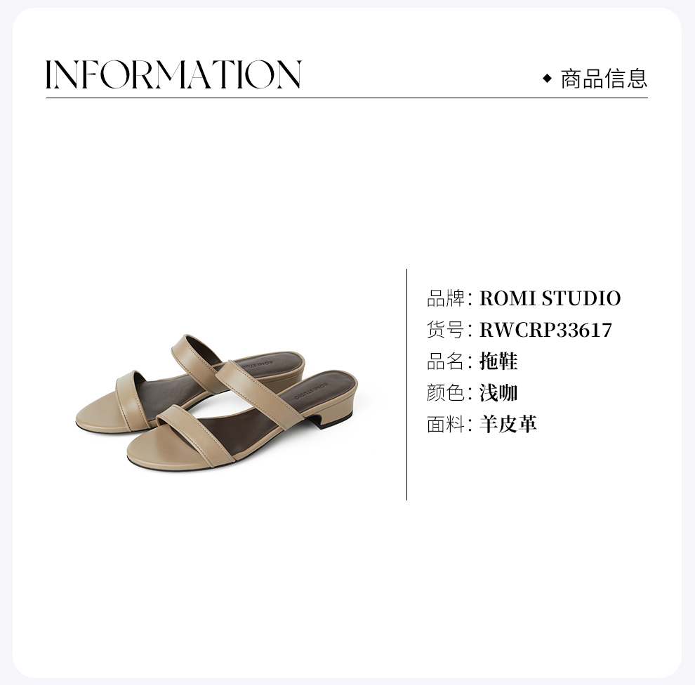 ROMI STUDIO“简约优雅”超软羊皮革粗跟一字带低跟凉鞋 RWCRP33617