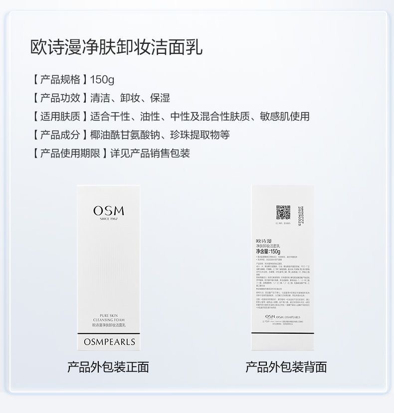 【卸妆洁面】欧诗漫150g净肤卸妆洁面乳*2支+赠:珍珠净透润白淡斑面膜1片