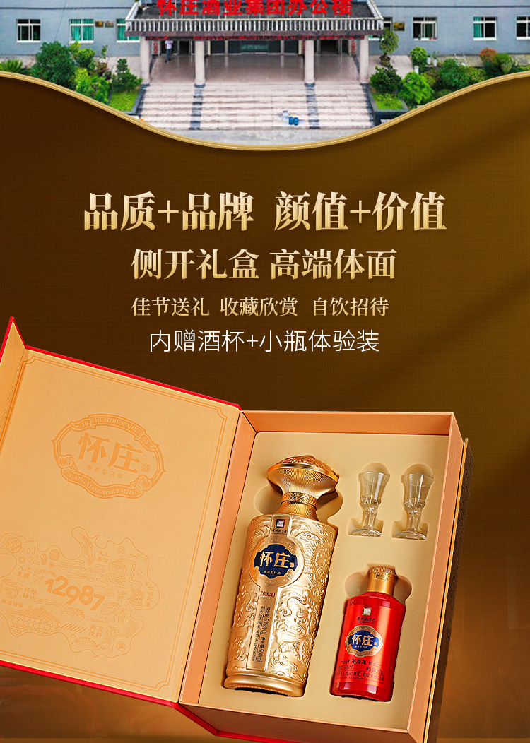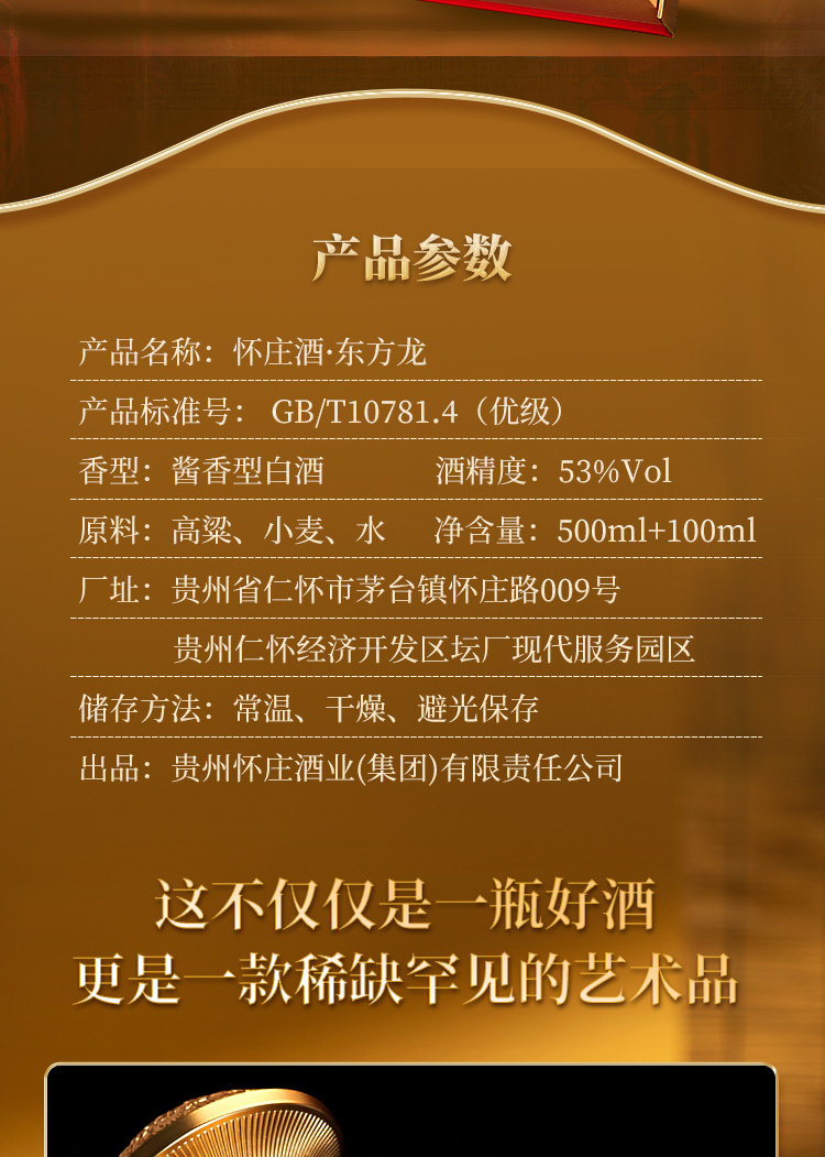 【500ml/盒,加赠酒杯100ml体验装】怀庄酒·东方龙 | 53°酱香型白酒 礼盒包装 酒体醇厚 酒花绵密 酱香四溢