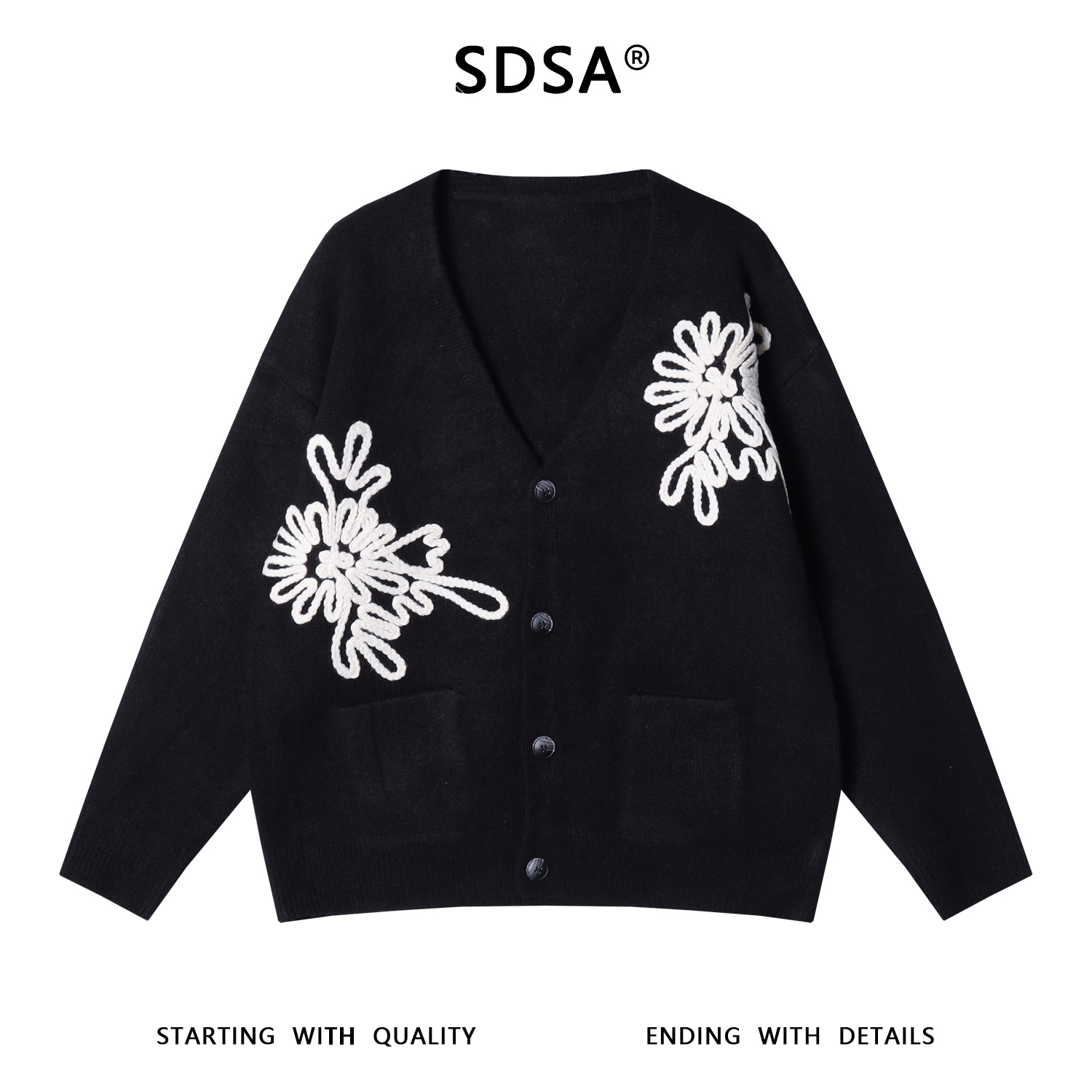 2718SDSA男士秋冬新款痞帅男装韩版V领极简风毛衣立体针织花朵针织衫
