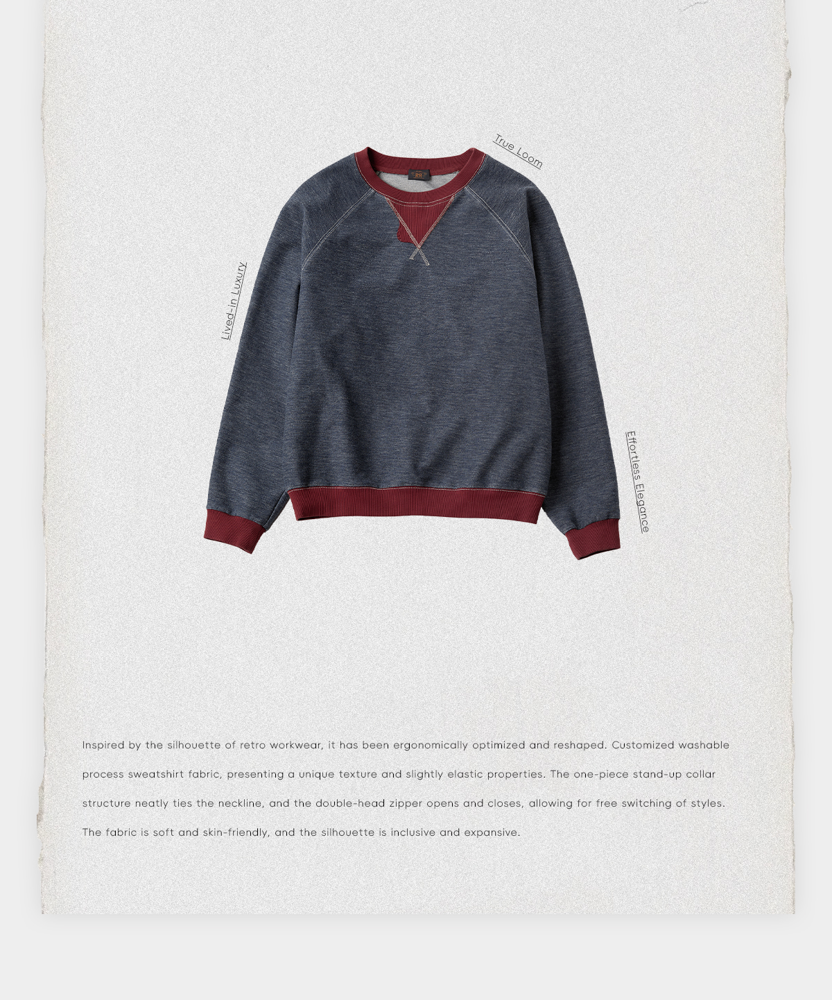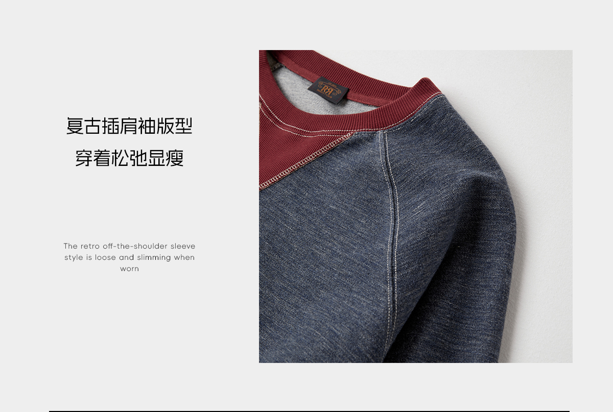 ROMI STUDIO”美式复古”棉质不规则撞色做旧套头卫衣 RWCASY5911【现货】