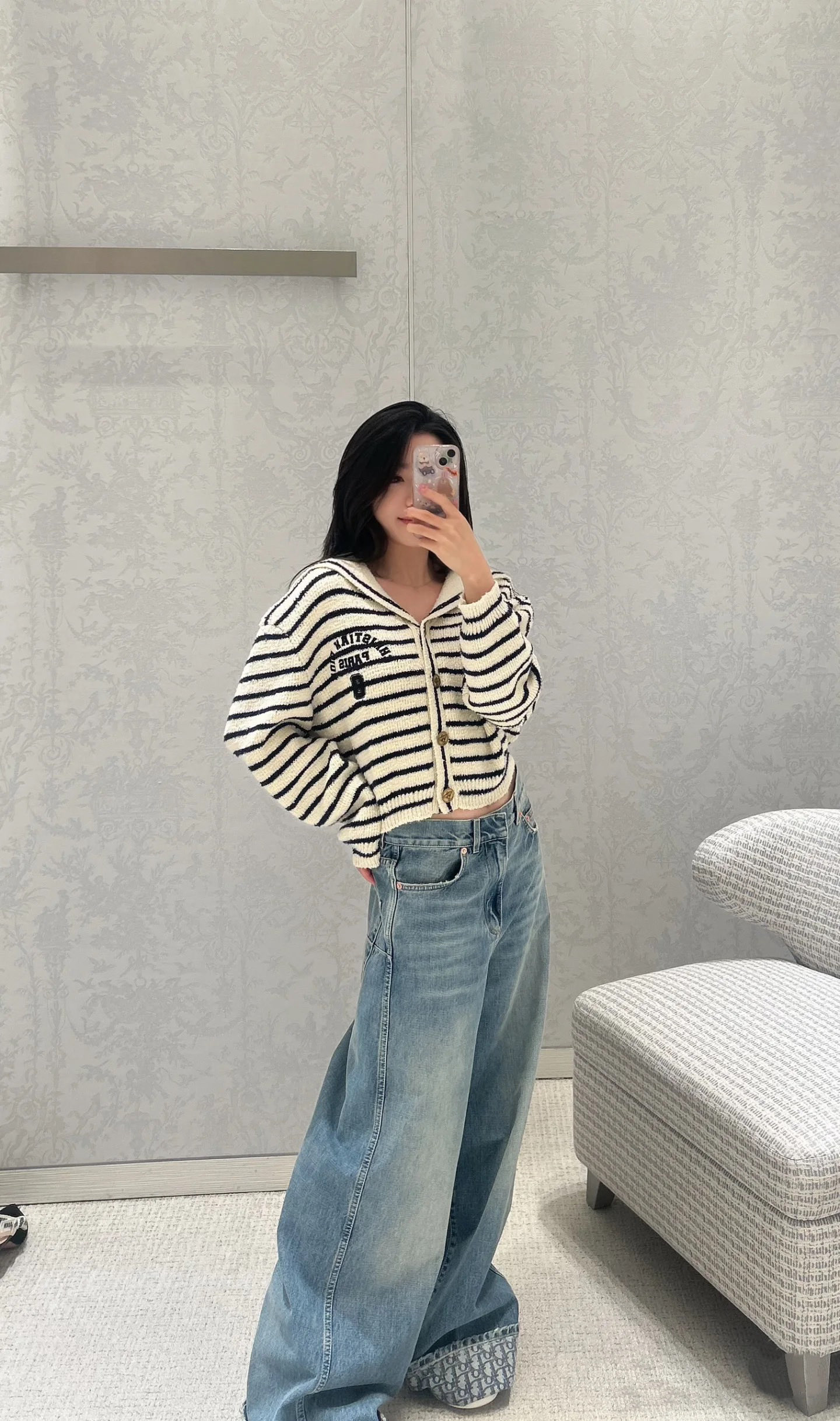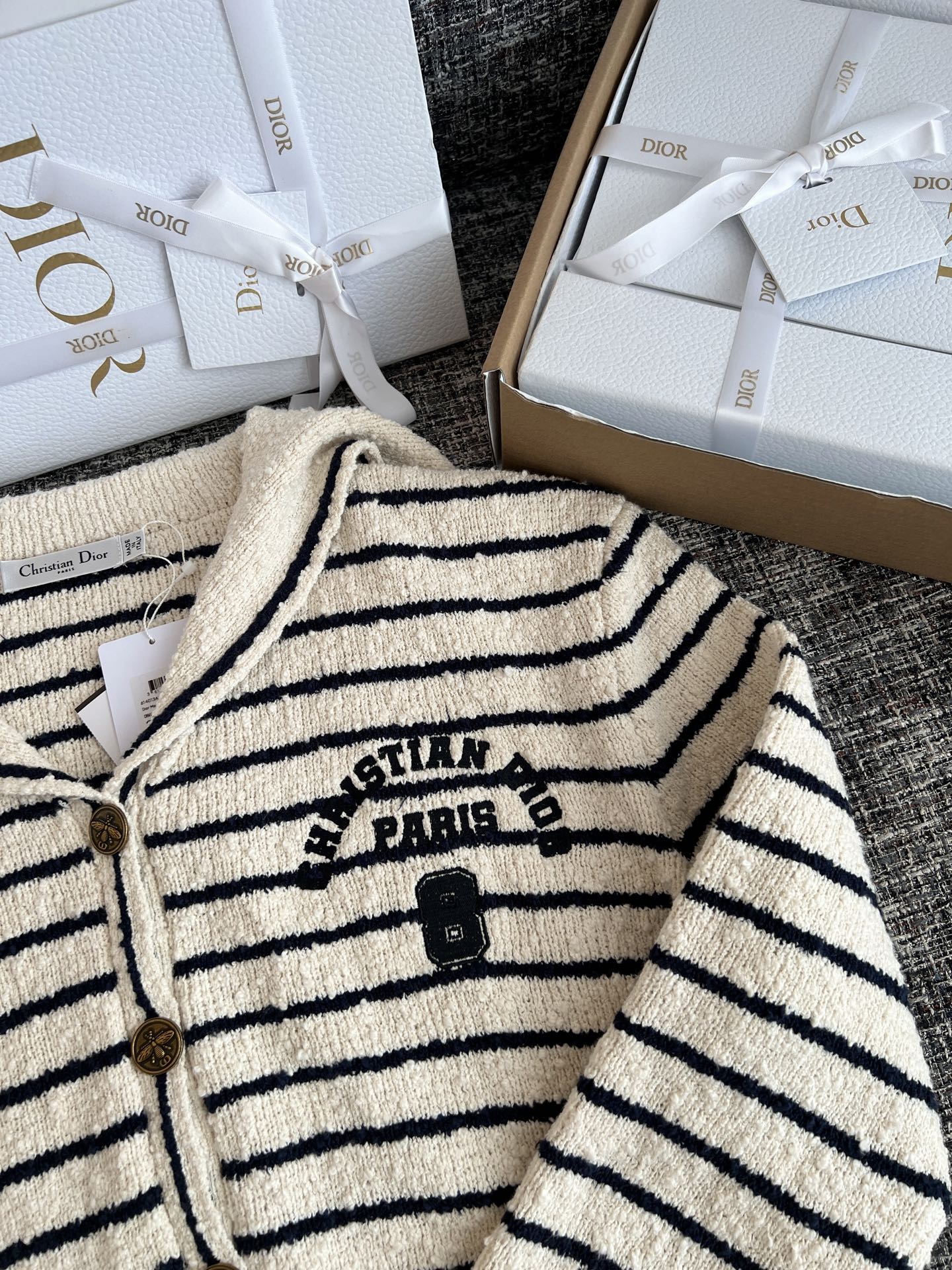 DIOR 迪奥25秋冬新款条纹开衫🐮18500购买Zp拆解打造,订织订染美利奴进口面料🐮 真正用到100%跟原版材料对版出货💪工艺放大看细节除还原度接近98以上 做工也无敌了🔥真正做到1:1还原 直接闭着眼购买👀码数:S M L