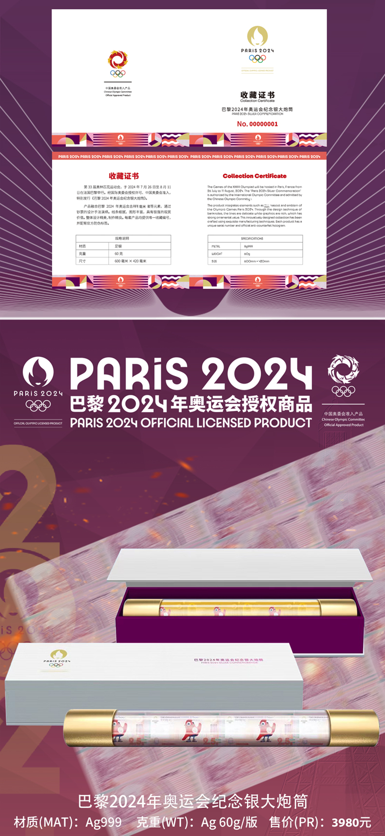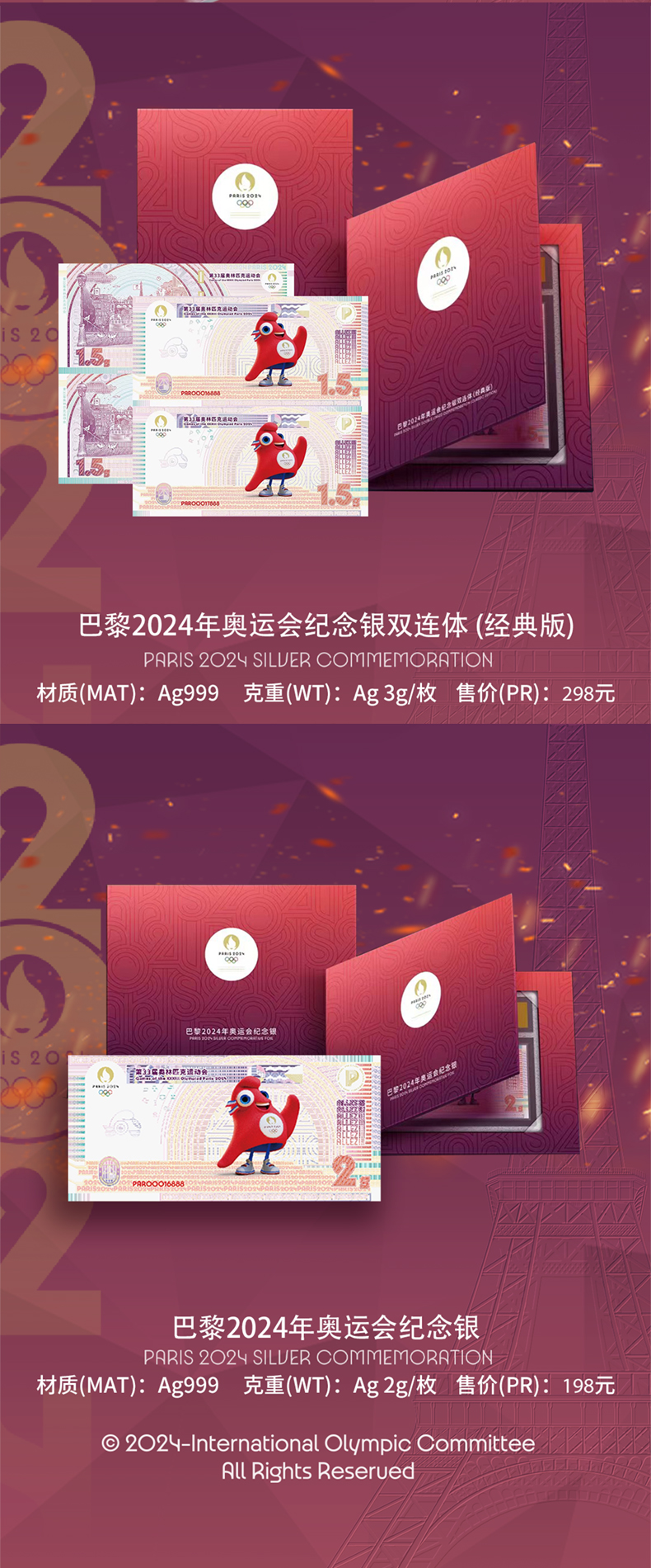 2024巴黎奥运会纪念银券 奥组委官方授权发行 封装版 原装礼册带证书
