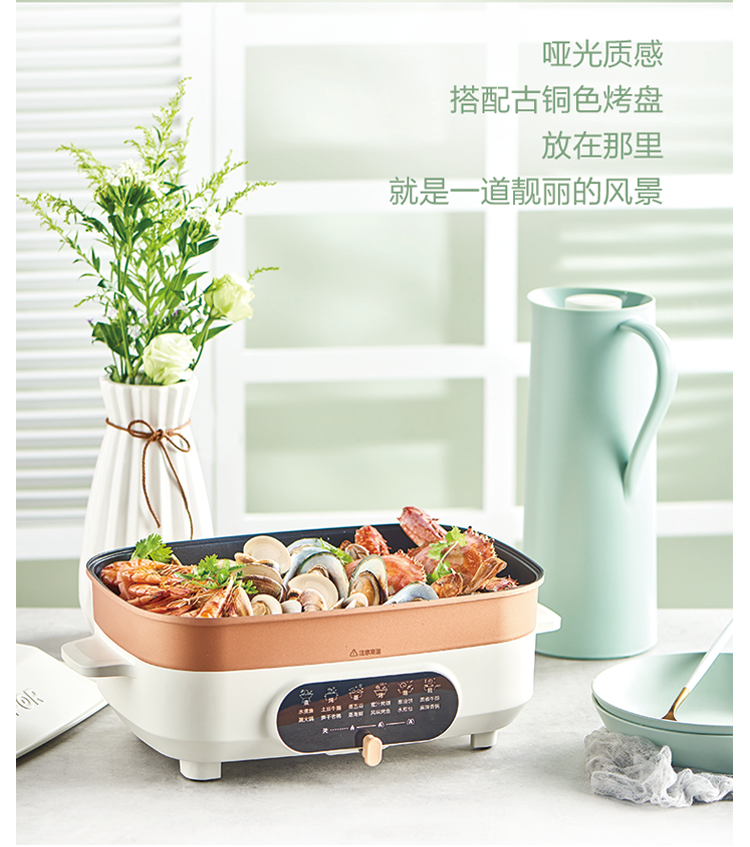 苏泊尔(SUPOR) 34×24cm ZMD安心系列 煎烤机 电脑型 美食家系列 米白色+香槟金 JD3424D08
