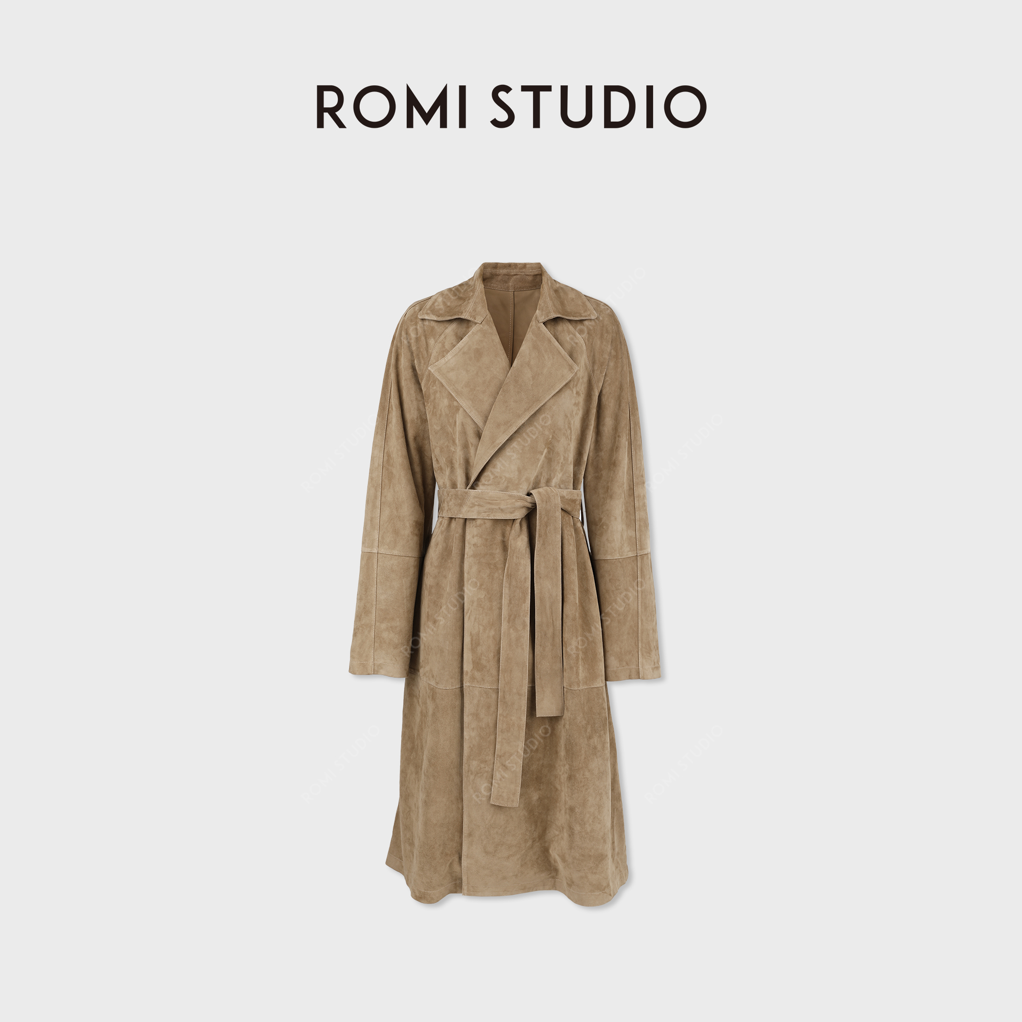 ROMI STUDIO非洲进口混种小羊皮挺阔收腰翻领皮风衣 RWCWWG6994
