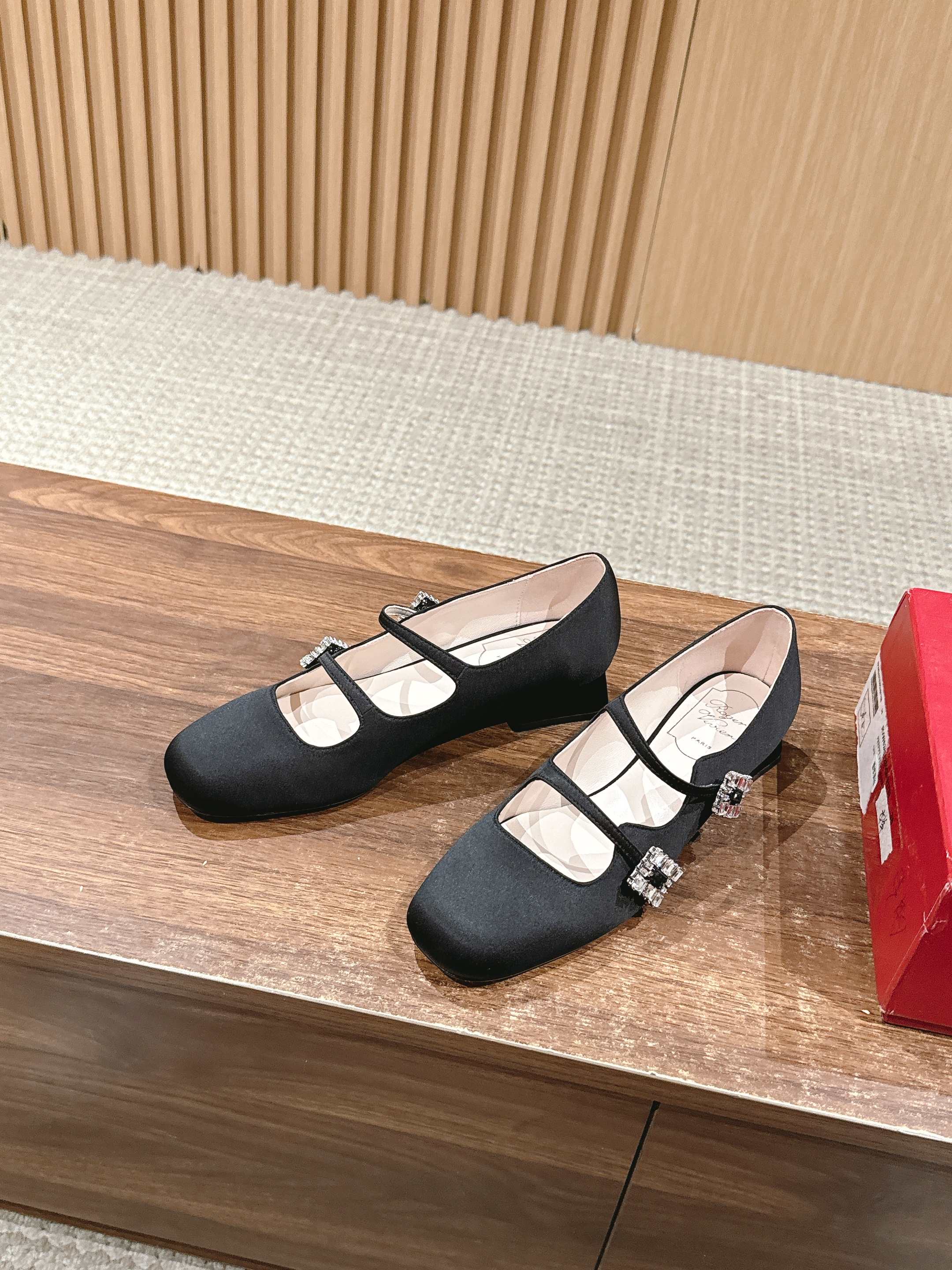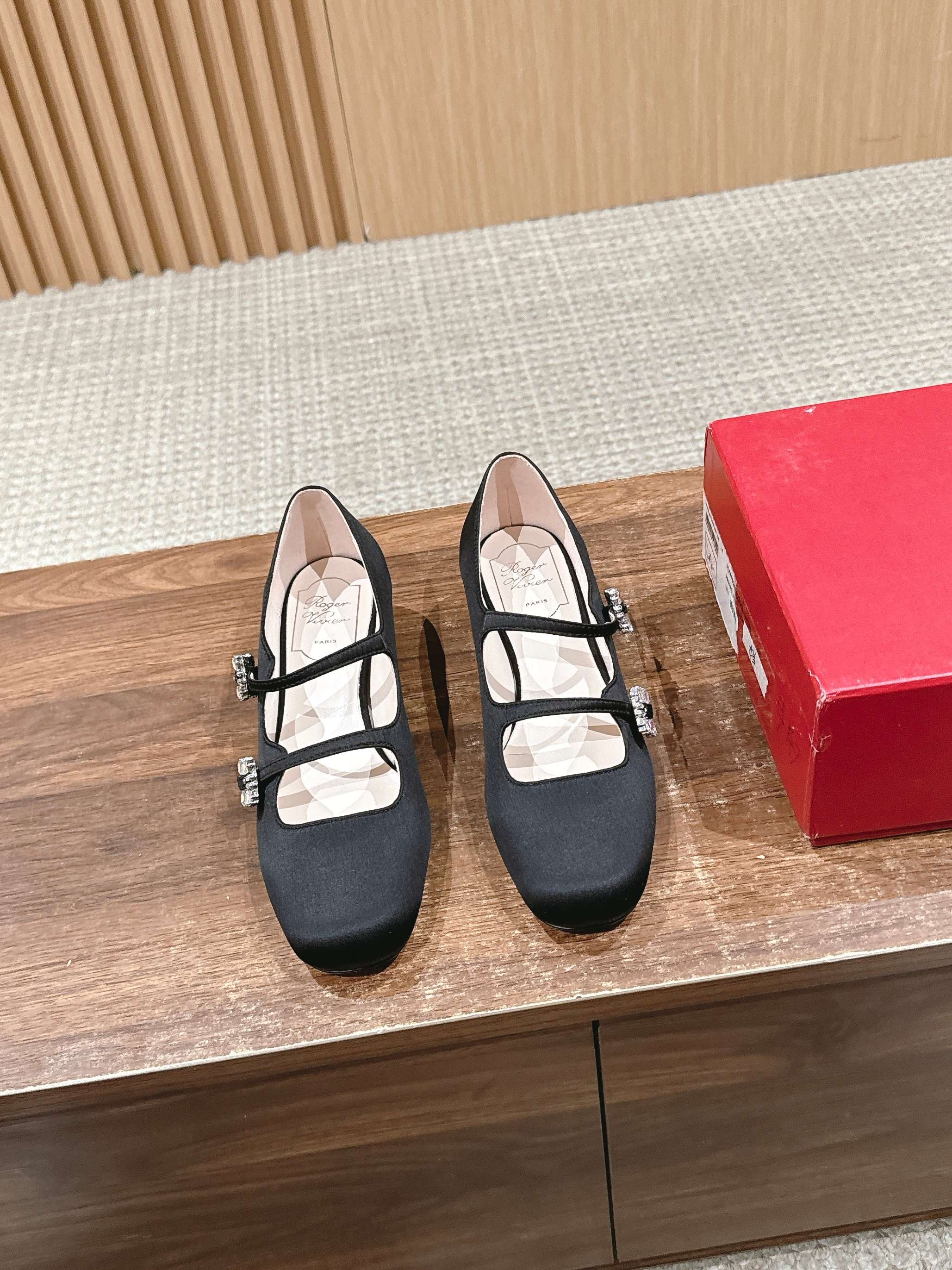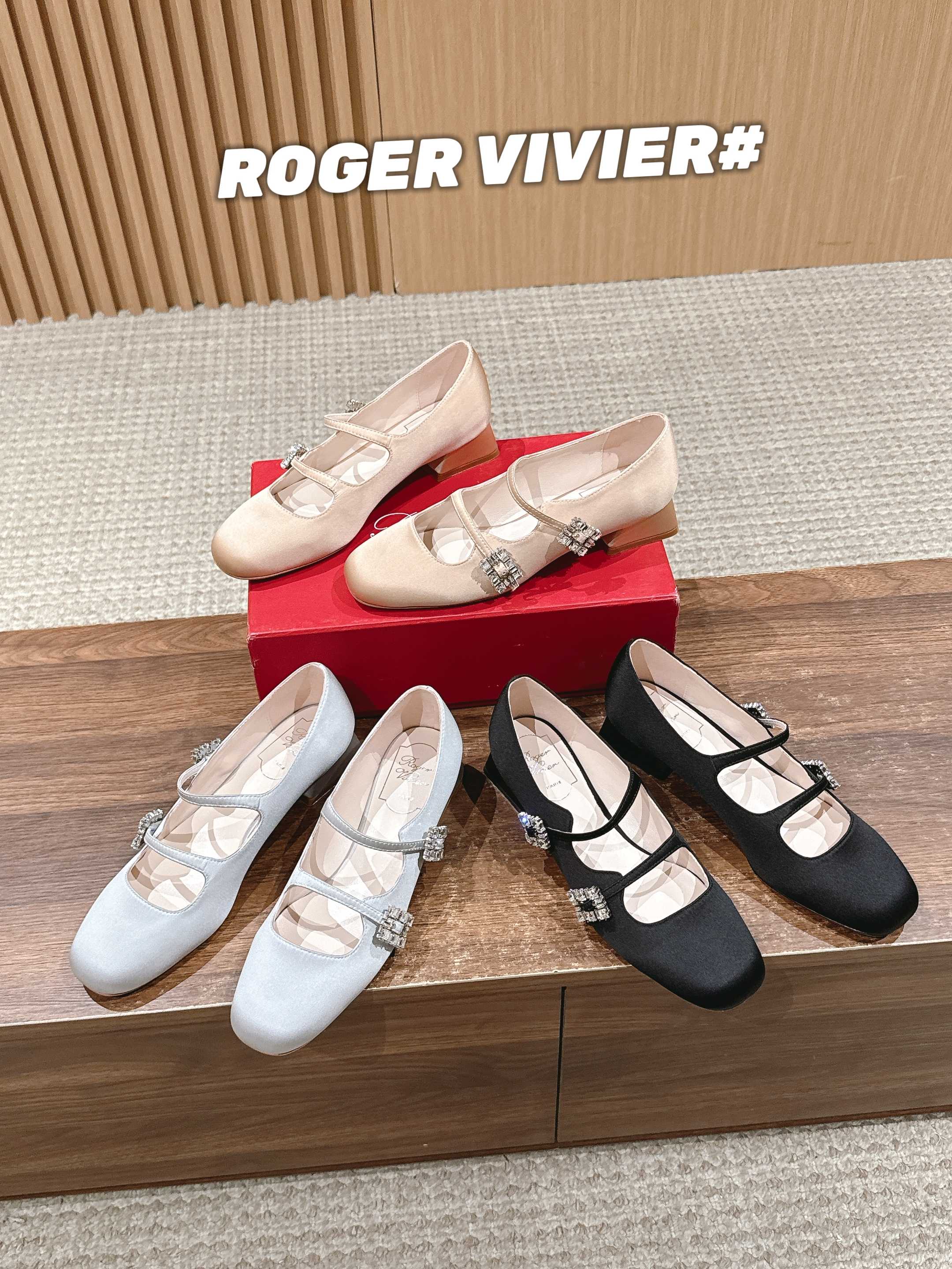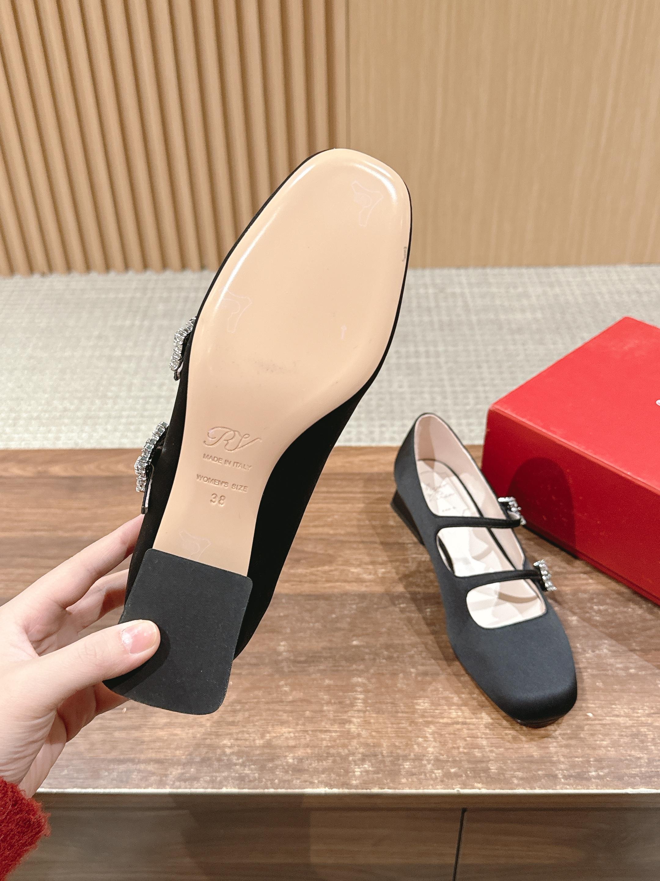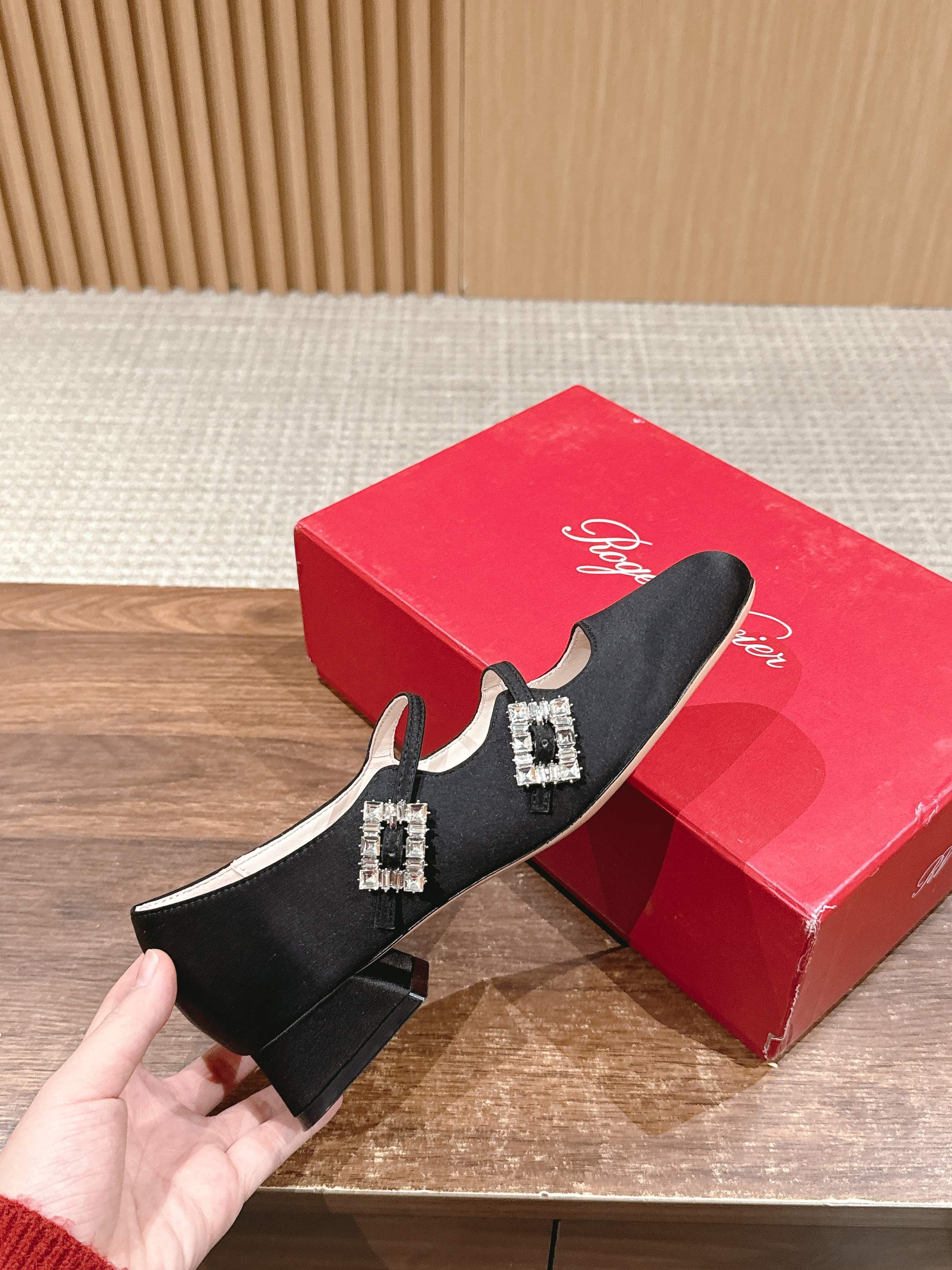 RV罗杰维维亚新款钻扣玛丽珍粗跟单鞋