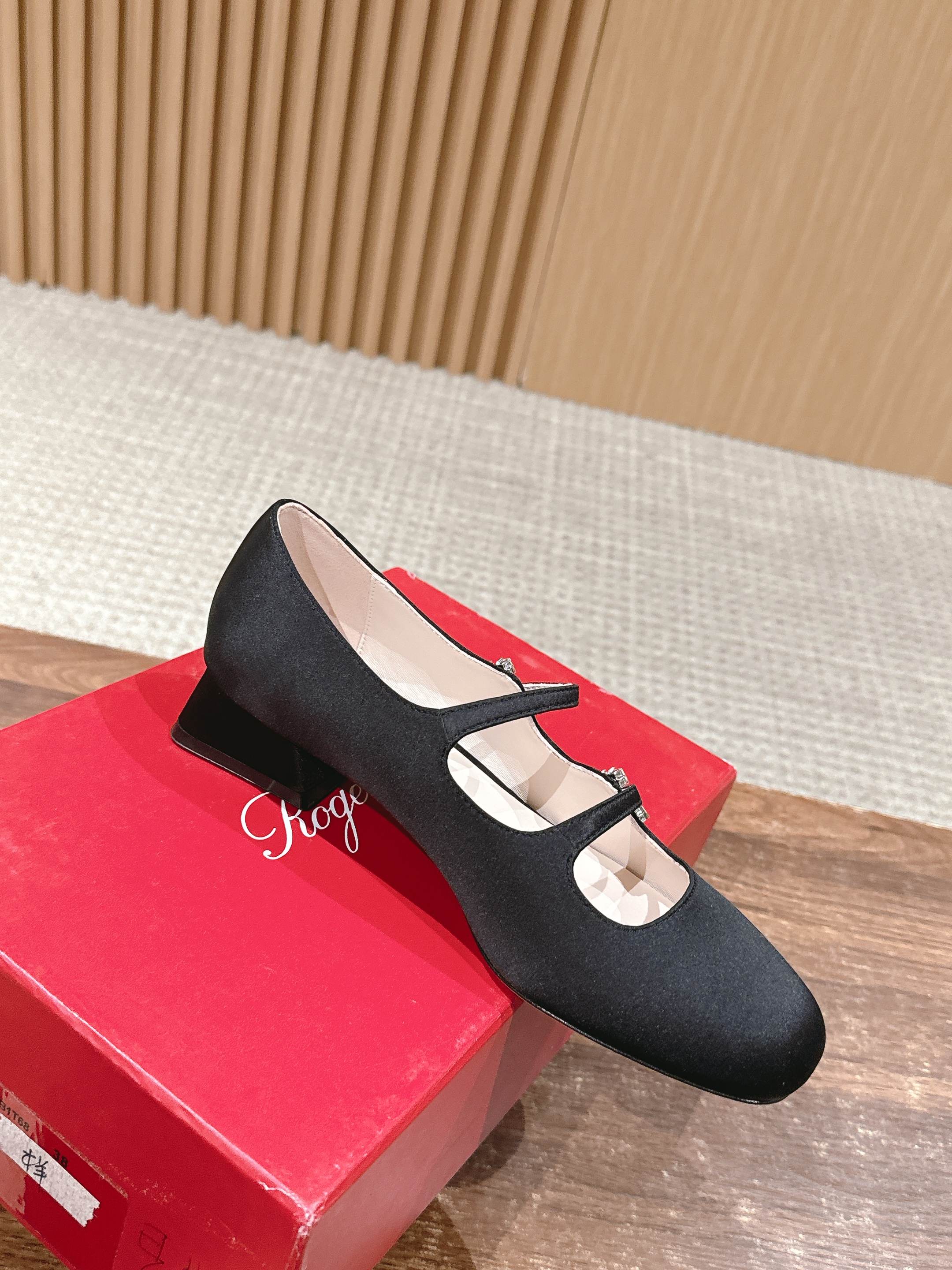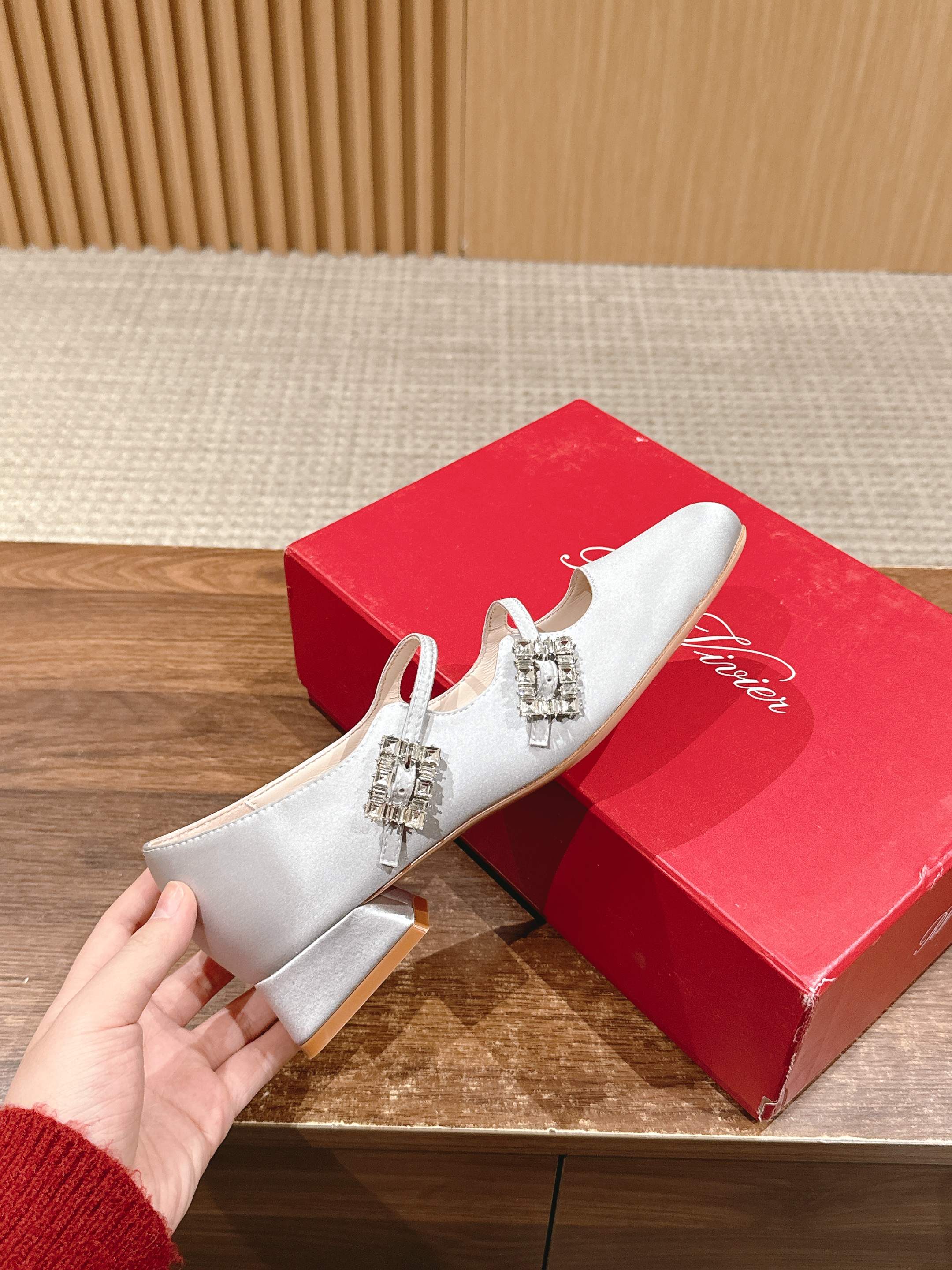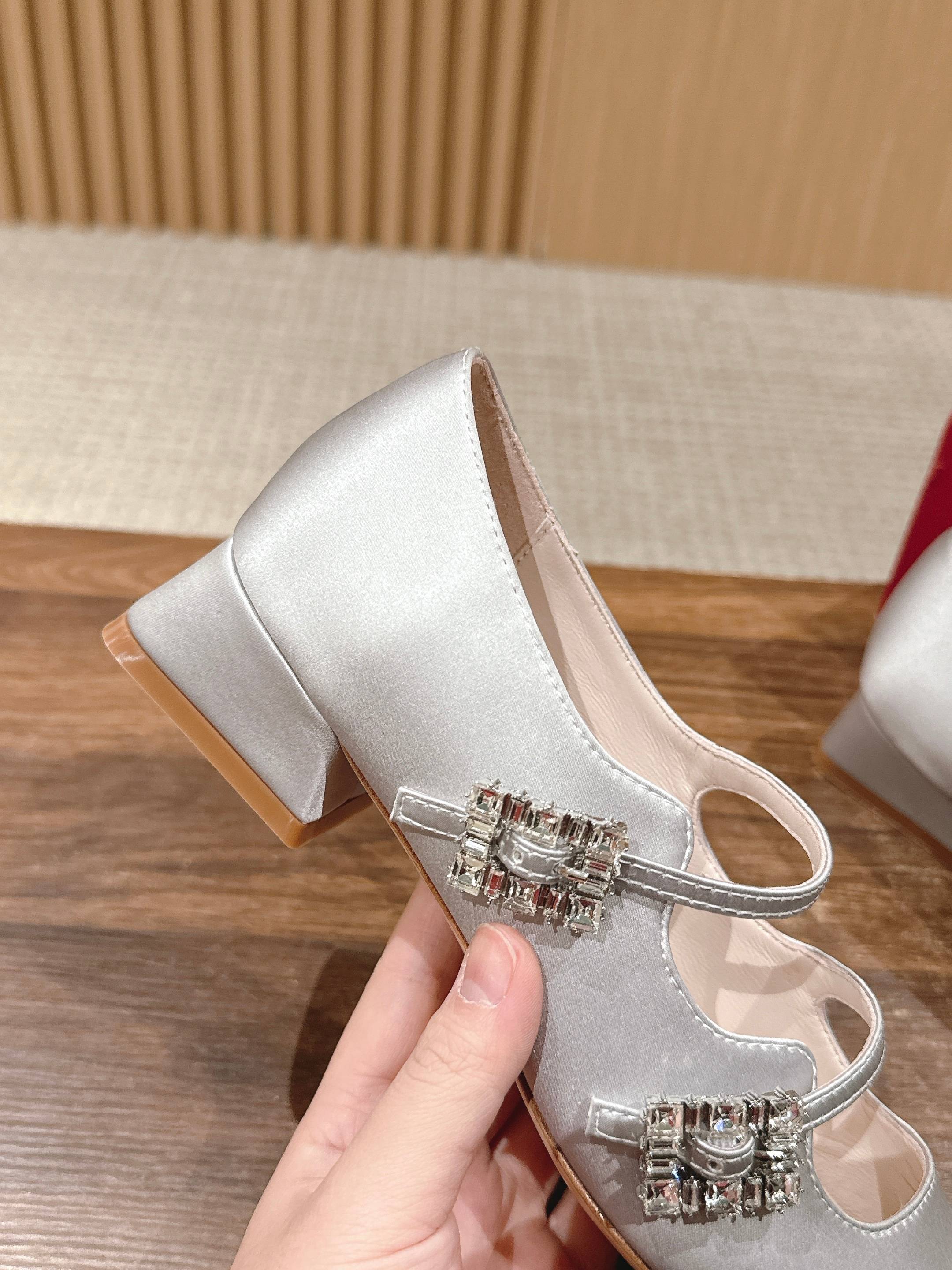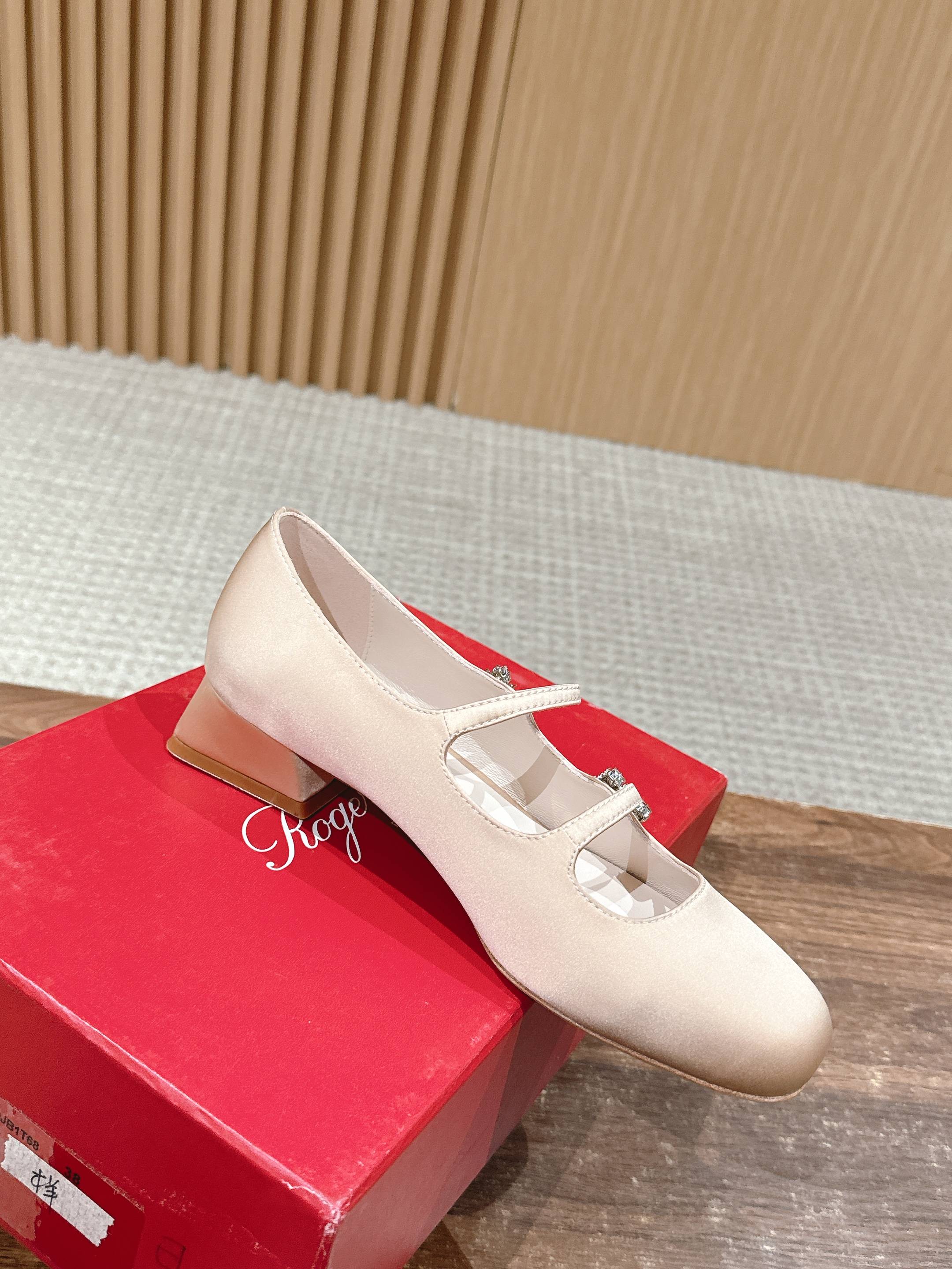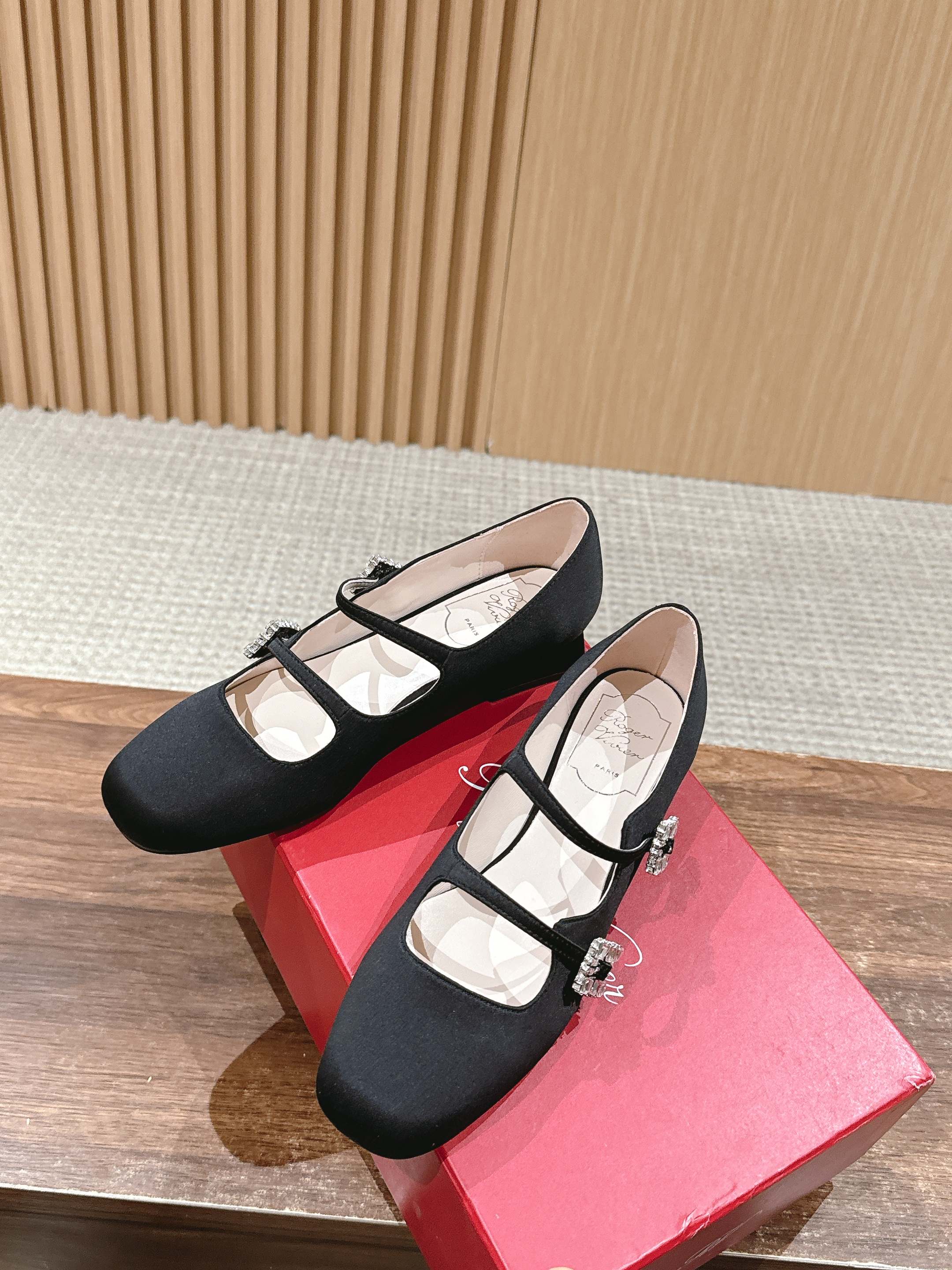 RV罗杰维维亚新款钻扣玛丽珍粗跟单鞋