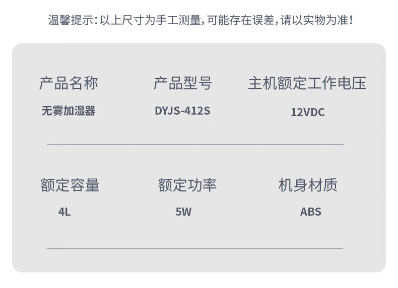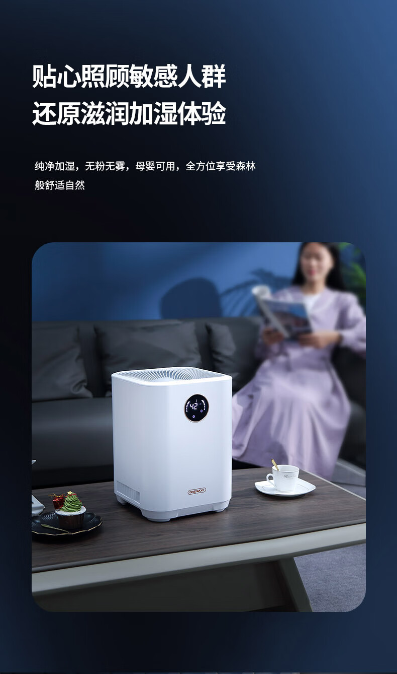 大宇(DAEWOO)加湿器家用卧室大容量桌面恒湿无雾加湿器DYJS-412S