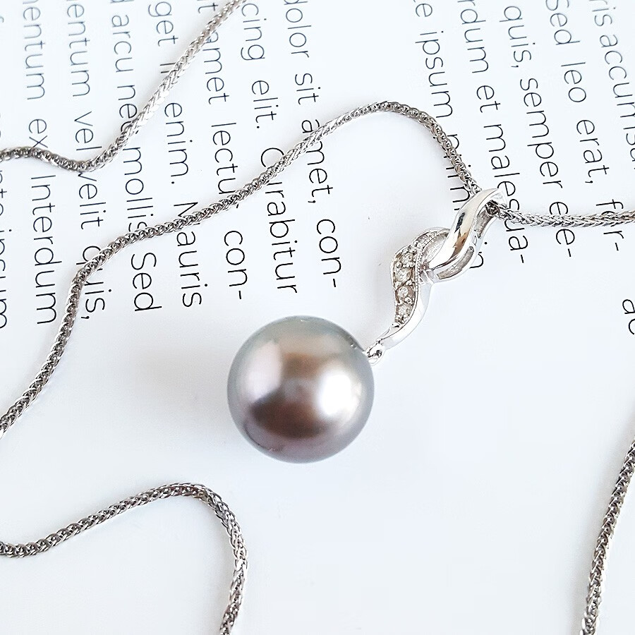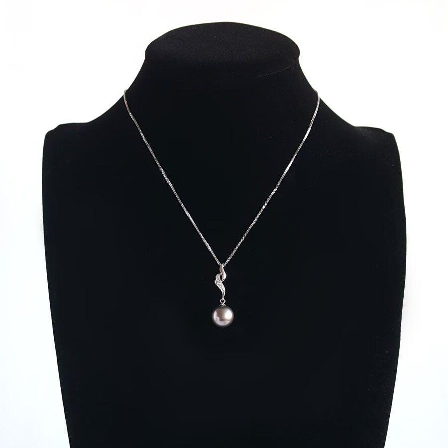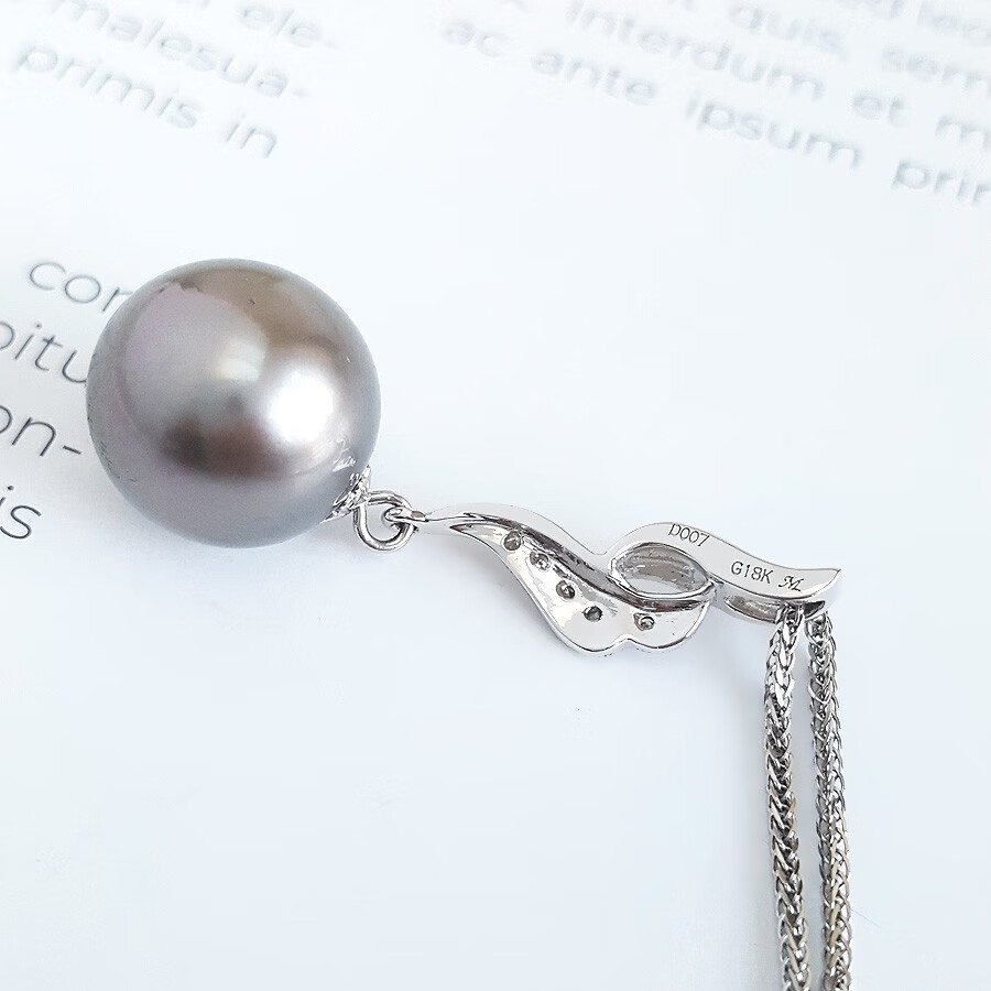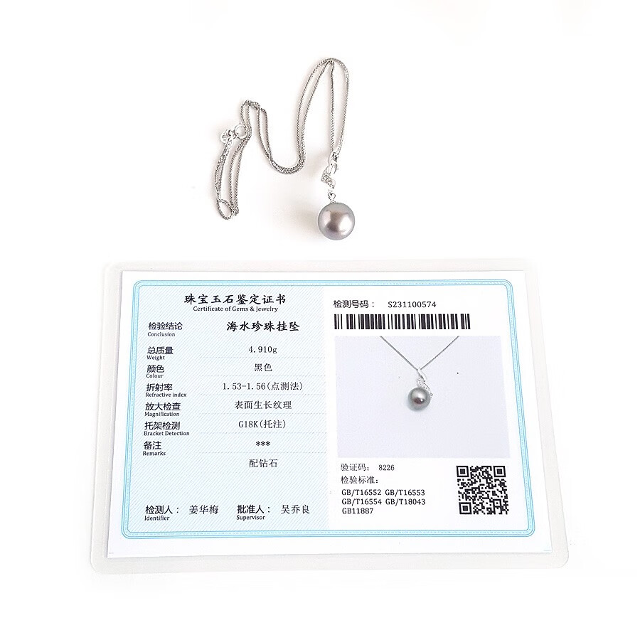 【天然正品】11.6MM大溪地海水珍珠AU750精品白金镶钻吊坠项链吊坠:33.5*11.6*11.6MM 项链:38CM !131123NJ17
