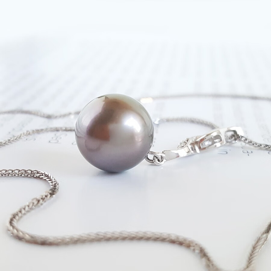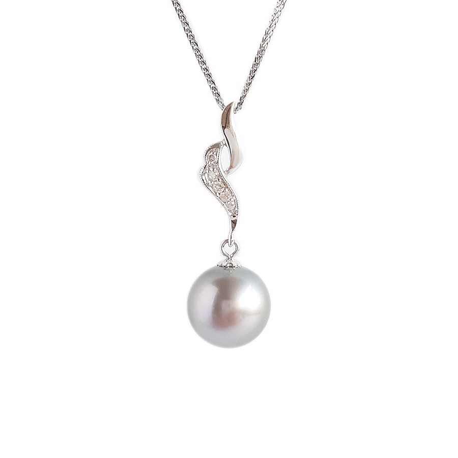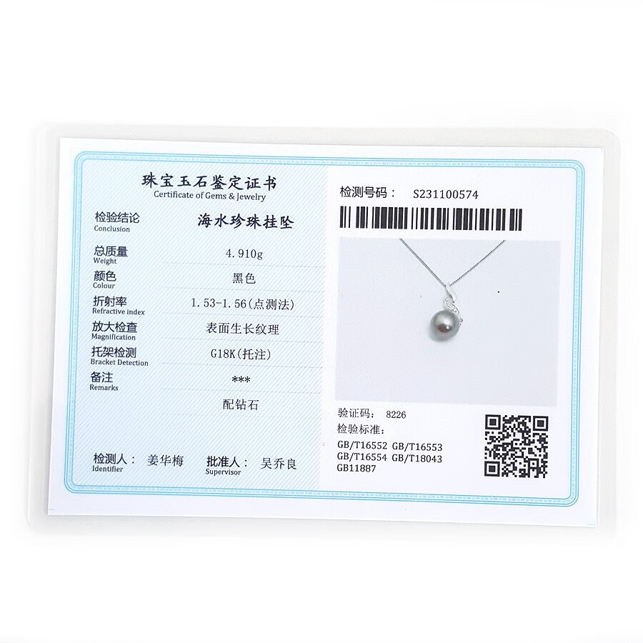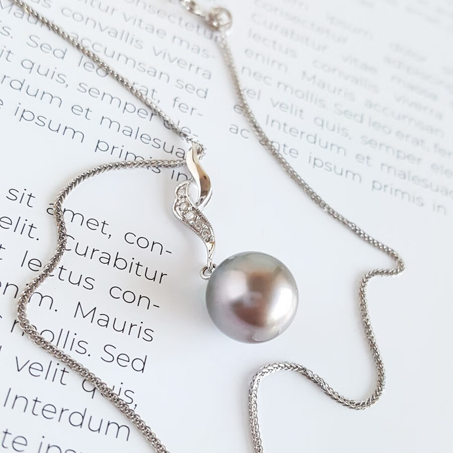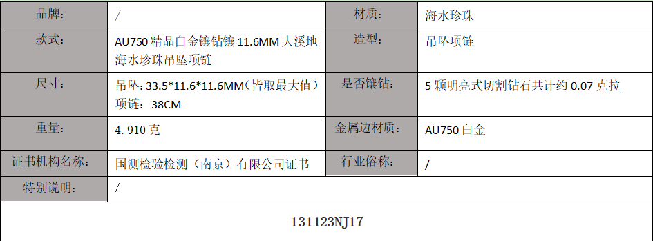 【天然正品】11.6MM大溪地海水珍珠AU750精品白金镶钻吊坠项链吊坠:33.5*11.6*11.6MM 项链:38CM !131123NJ17