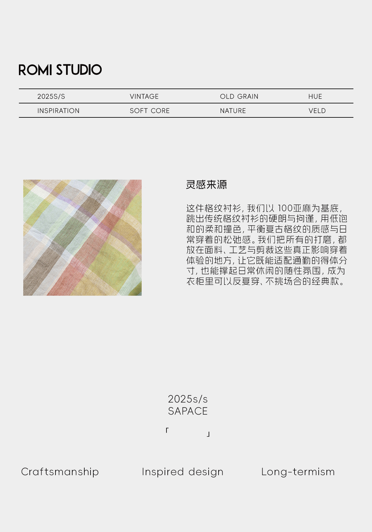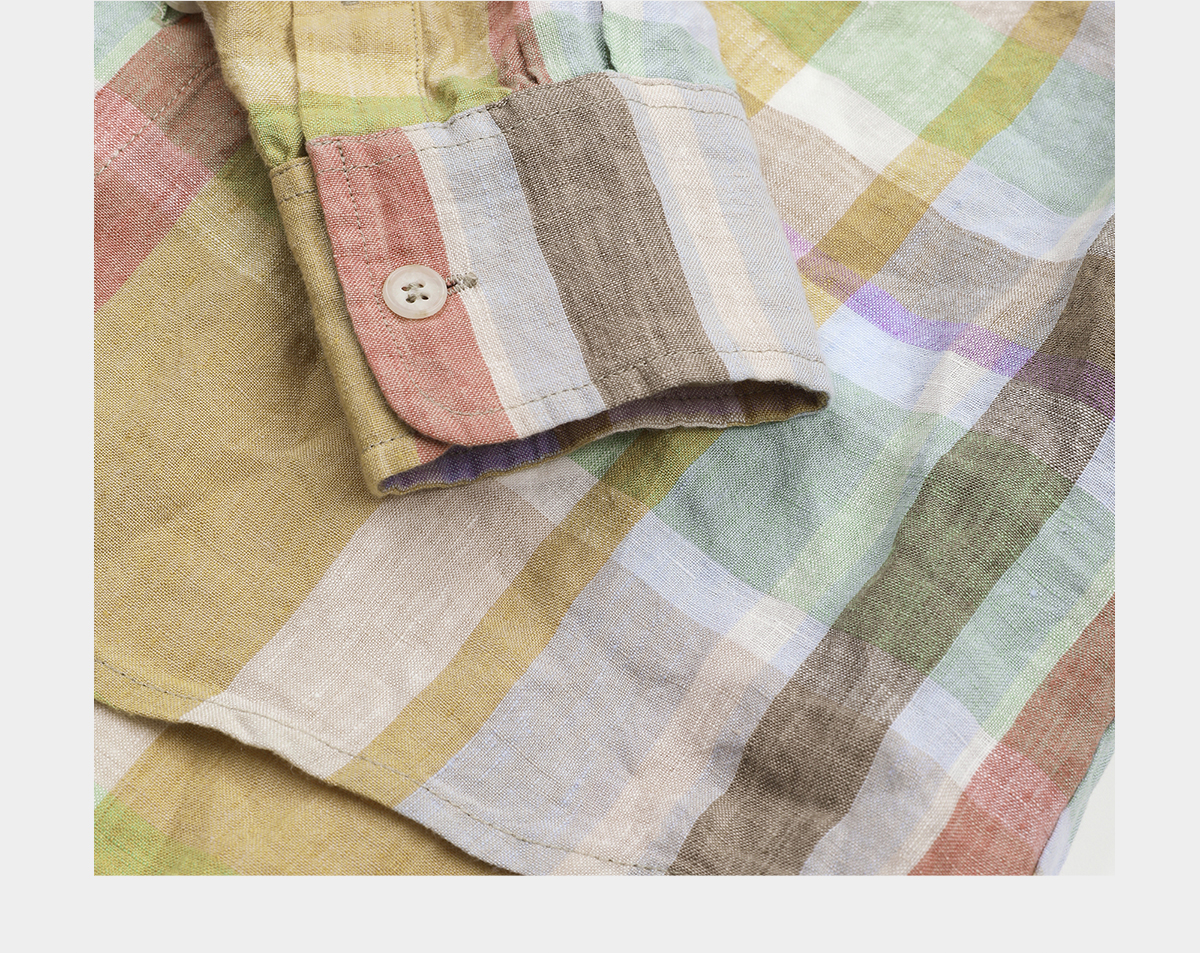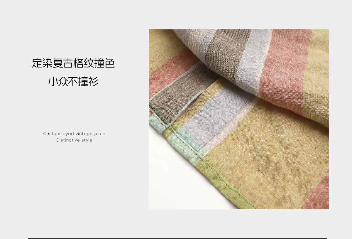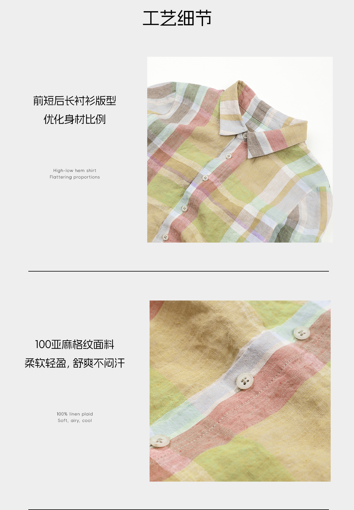 ROMI STUDIO“复古色彩”100%亚麻格纹撞色翻领开襟衬衫 RWDSS62306