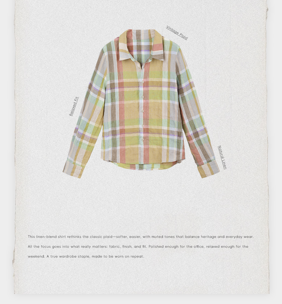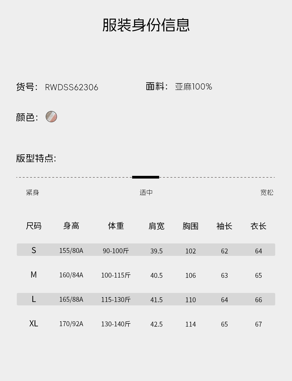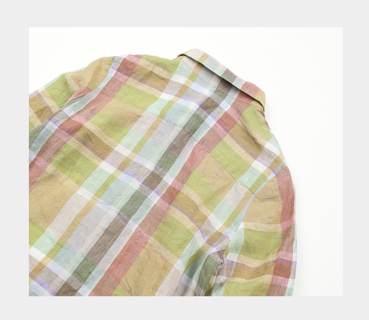 ROMI STUDIO“复古色彩”100%亚麻格纹撞色翻领开襟衬衫 RWDSS62306