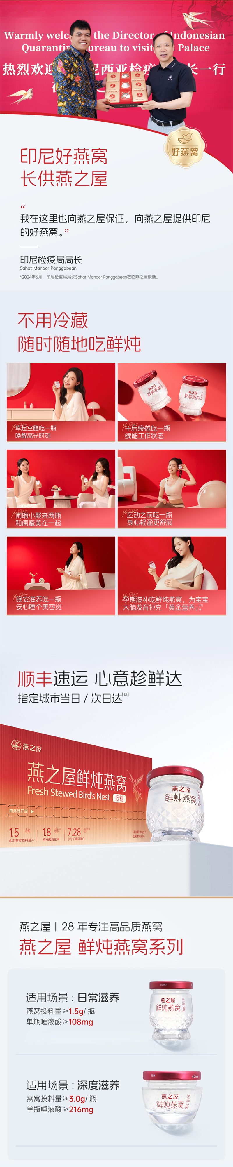 1、因鲜炖燕窝产品的特殊性质,如无质量问题,已发货产品恕不支持退货。